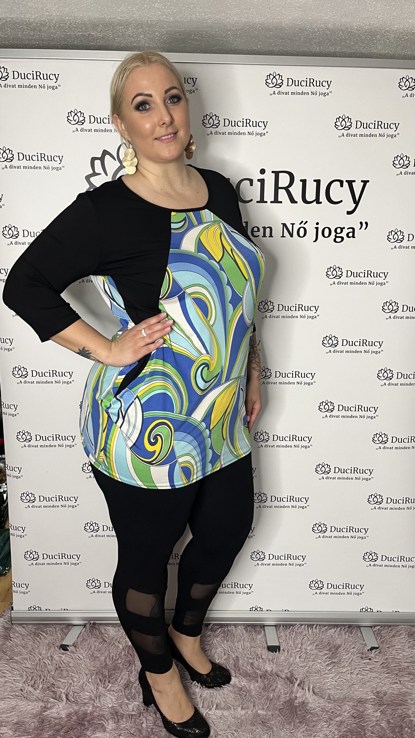 Magyar készítői, kerek nyakú, hosszított fazonú, pamut anyagból készült, zsebes tunika. Nagyon mutatós darab, bármilyen alkalomra tökéletes választás.
