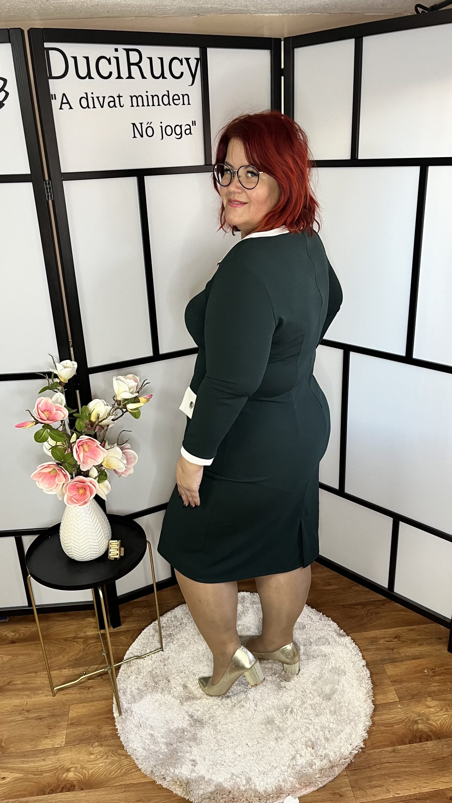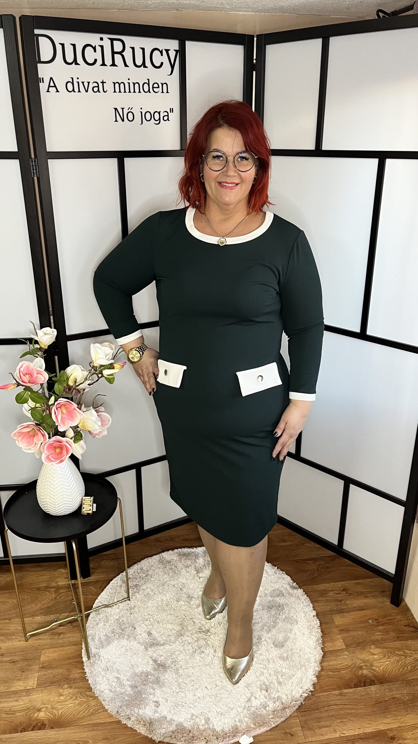 Magyar készítői zöld ceruzaruha fehér zsebekkel díszítve. Gyönyörű és különleges ruha, bármilyen alkalomra felvehető, de hétköznapokon is tökéletes választás.