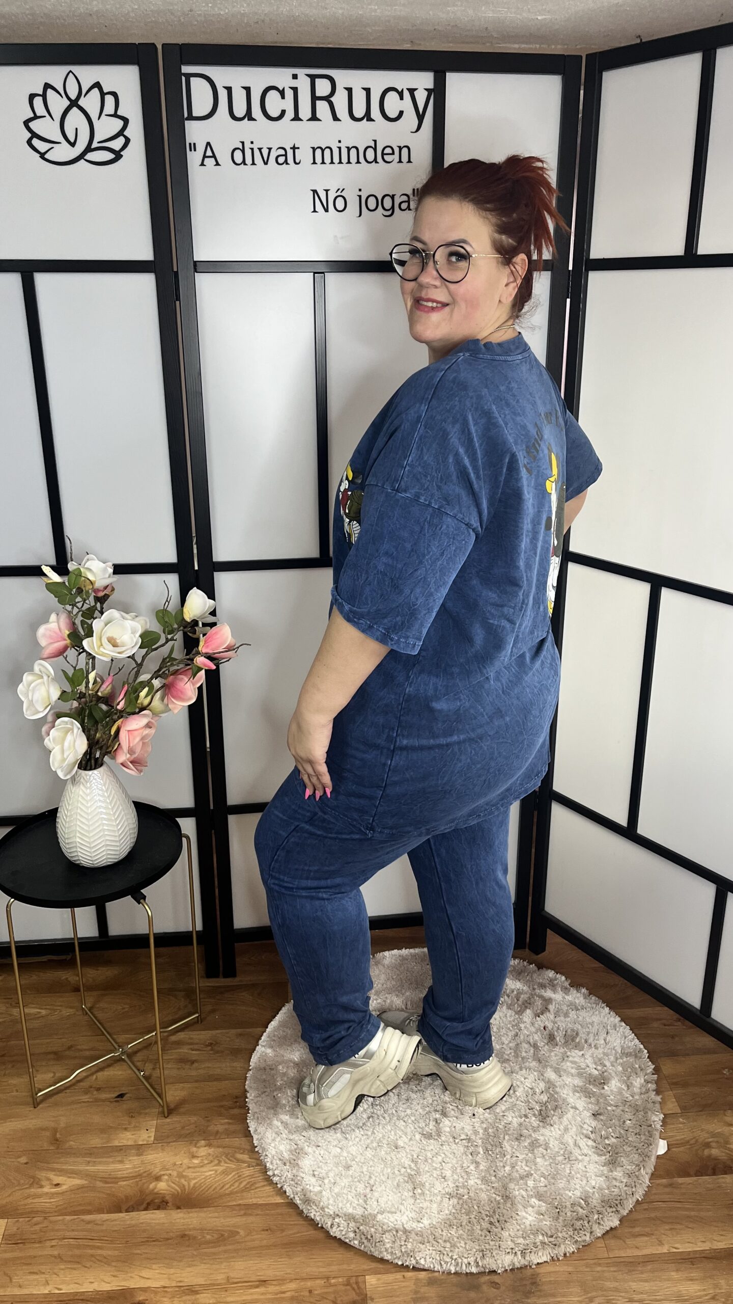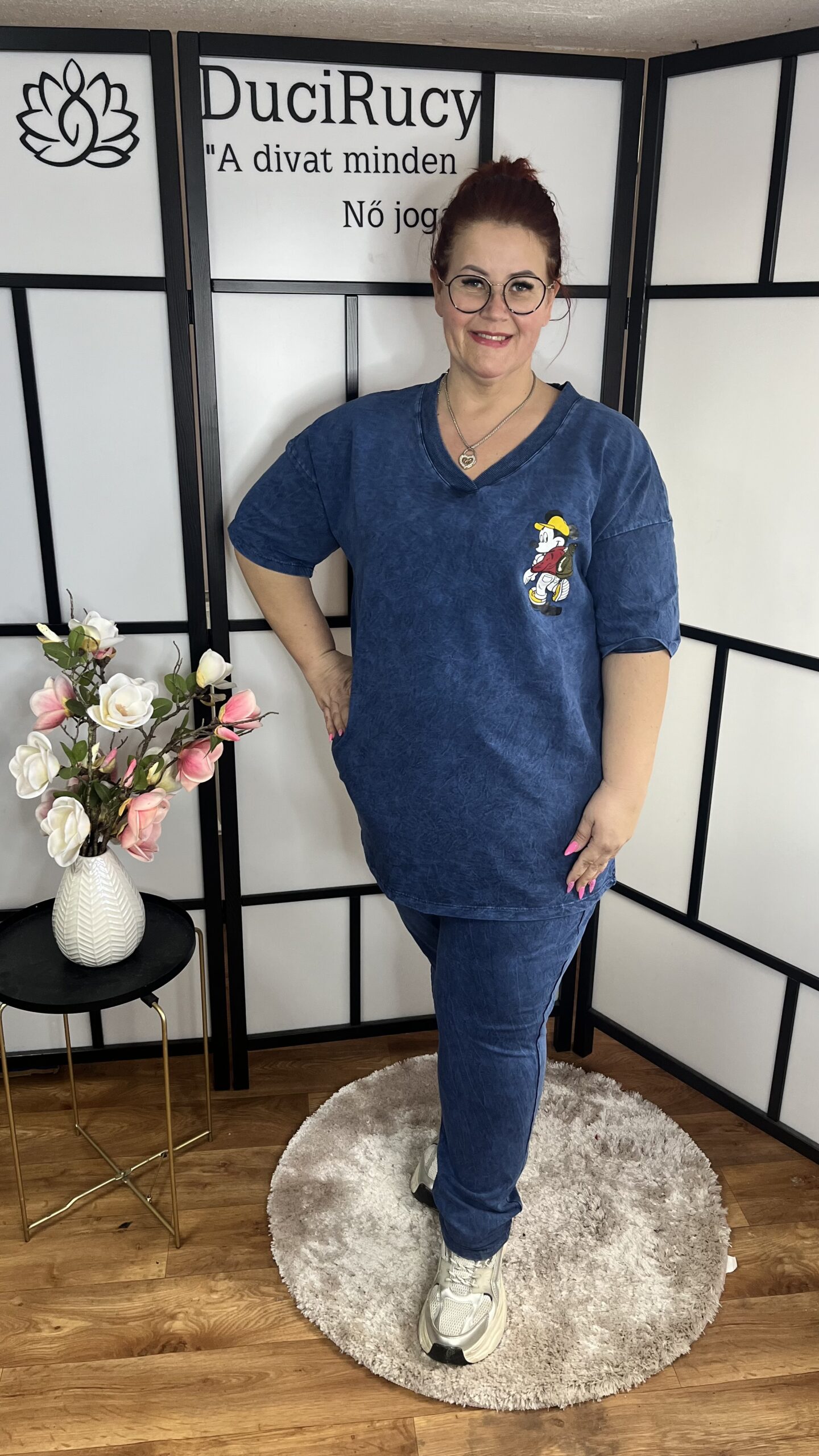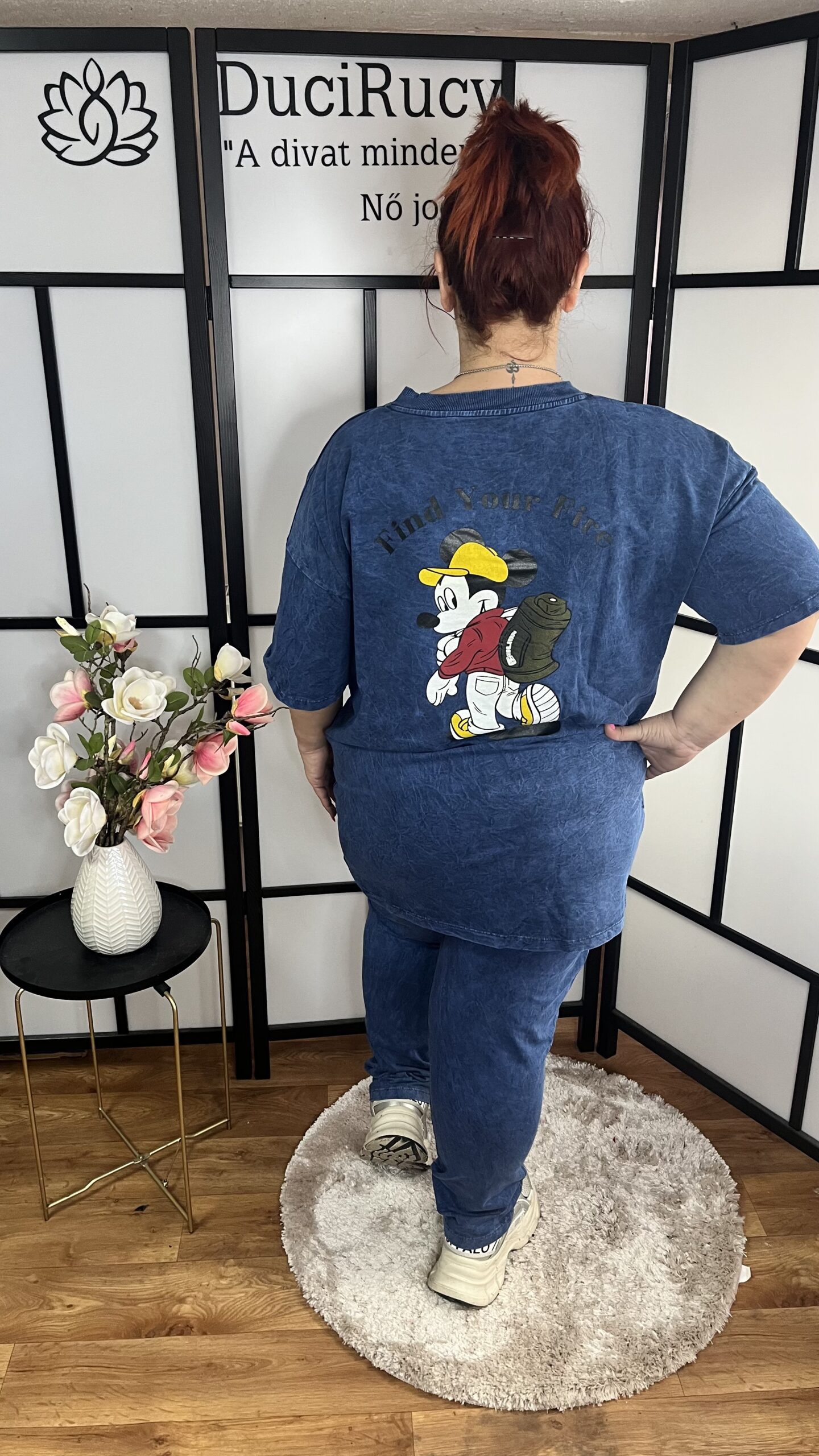 MICKEY EGÉR mintás kétrészes pamut szabadidő szett farmerhatású/farmerkék színben