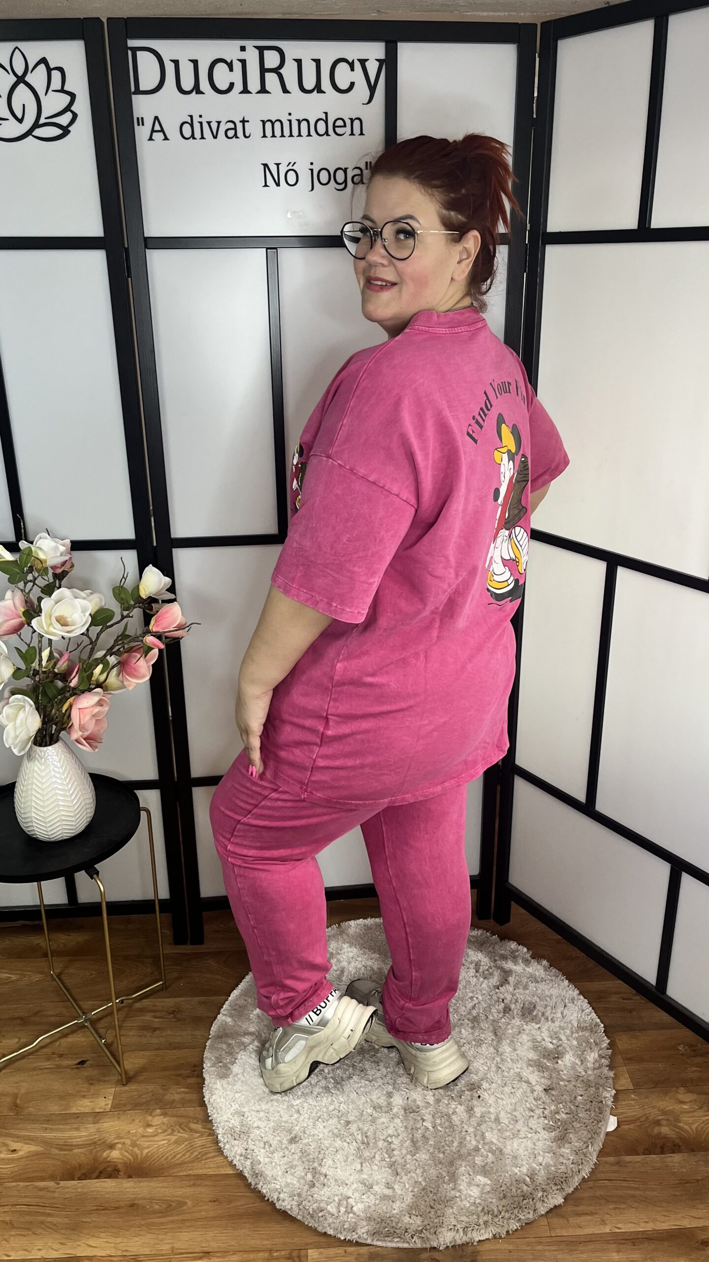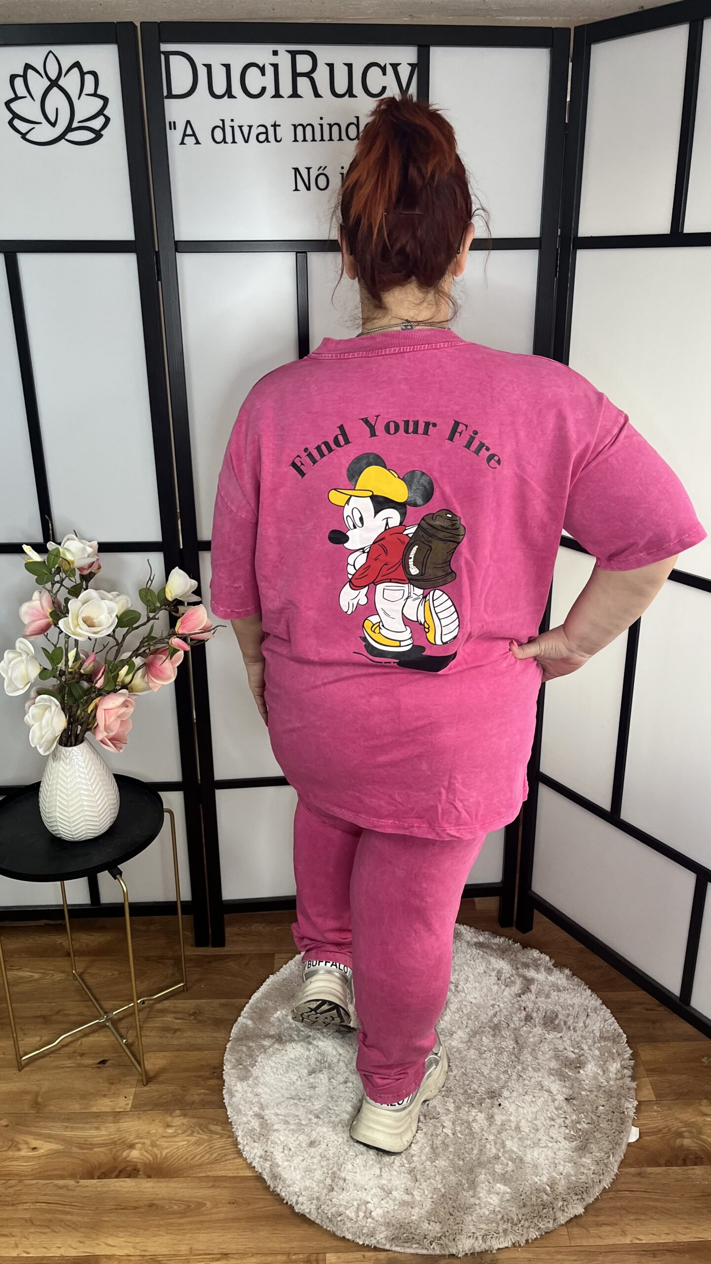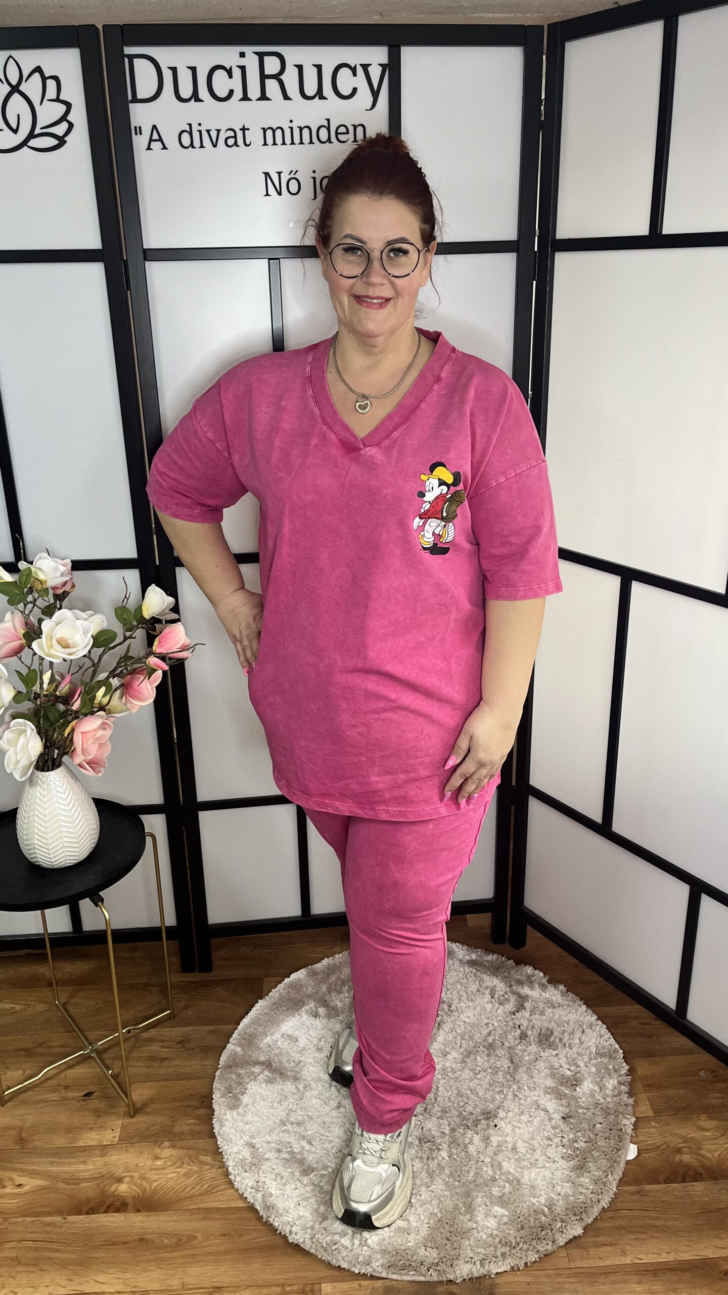 MICKEY EGÉR mintás kétrészes pamut szabadidő szett magenta színben