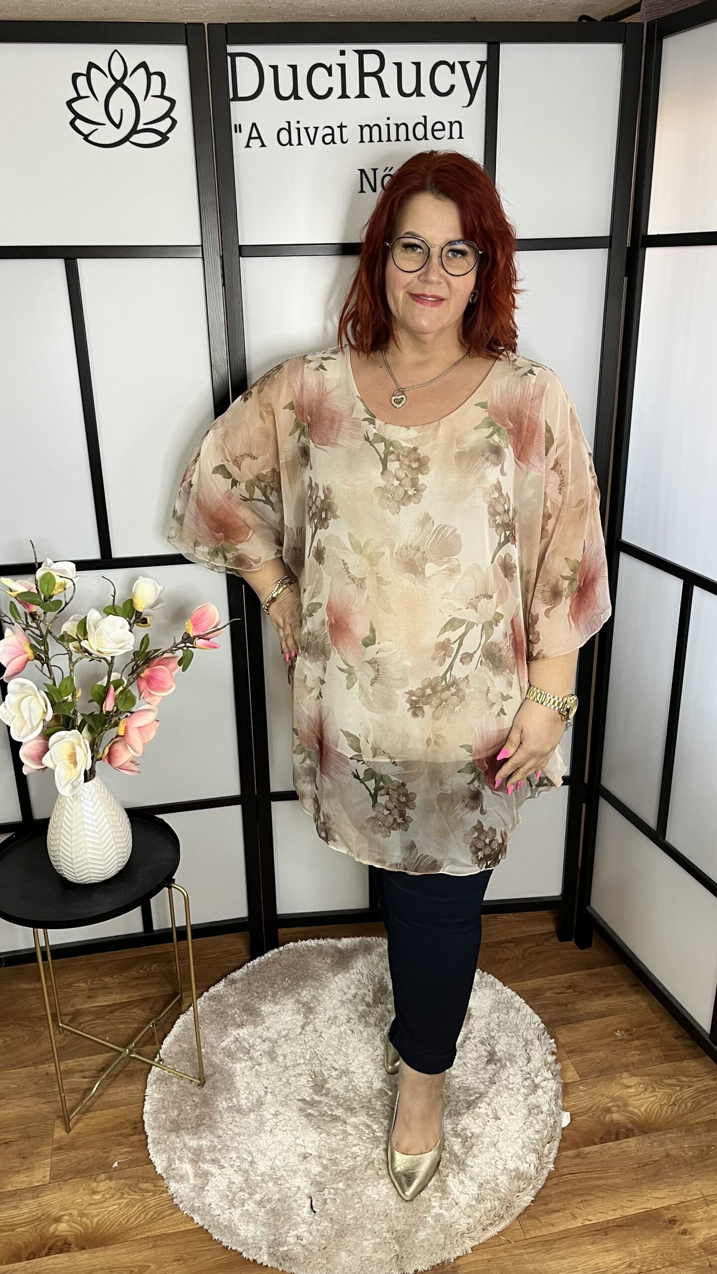 Mintás kétrétegű, kerek nyakú, ék alakú, alkalmi tunika bézs színben