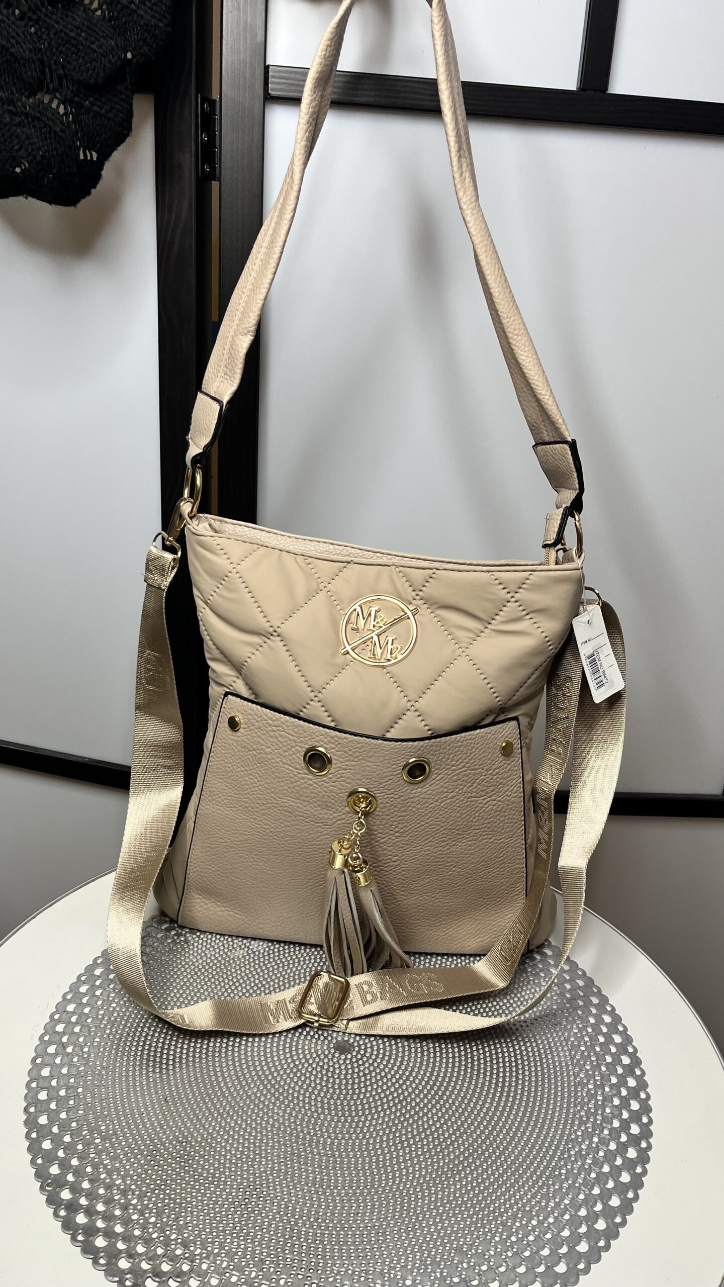 Műbőr nagyobb méretű oldaltáska arany dísszel rojttal. Pihe-puha anyagból készült, nagyon kényelmes viselet. Jól pakolható táska.