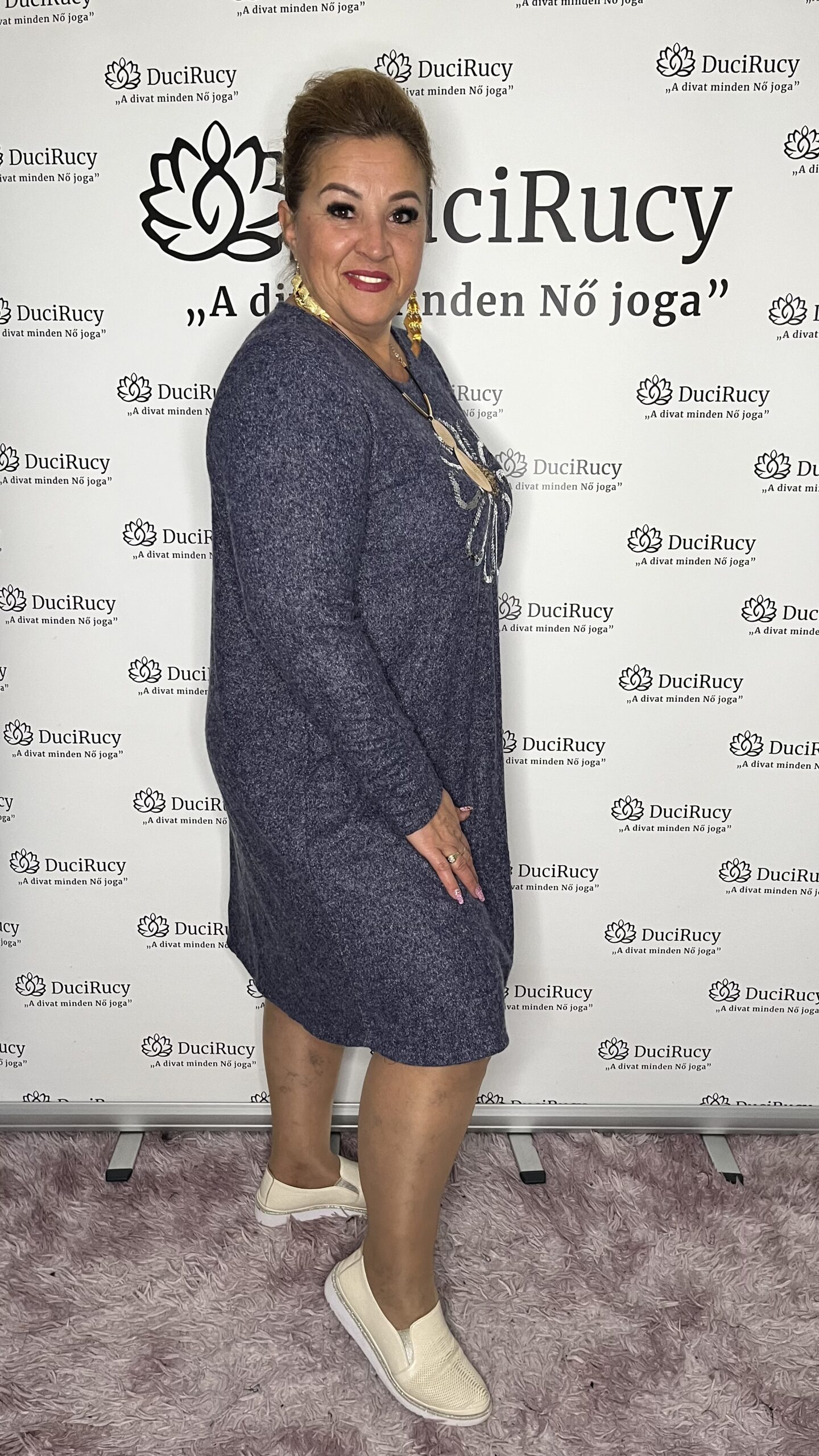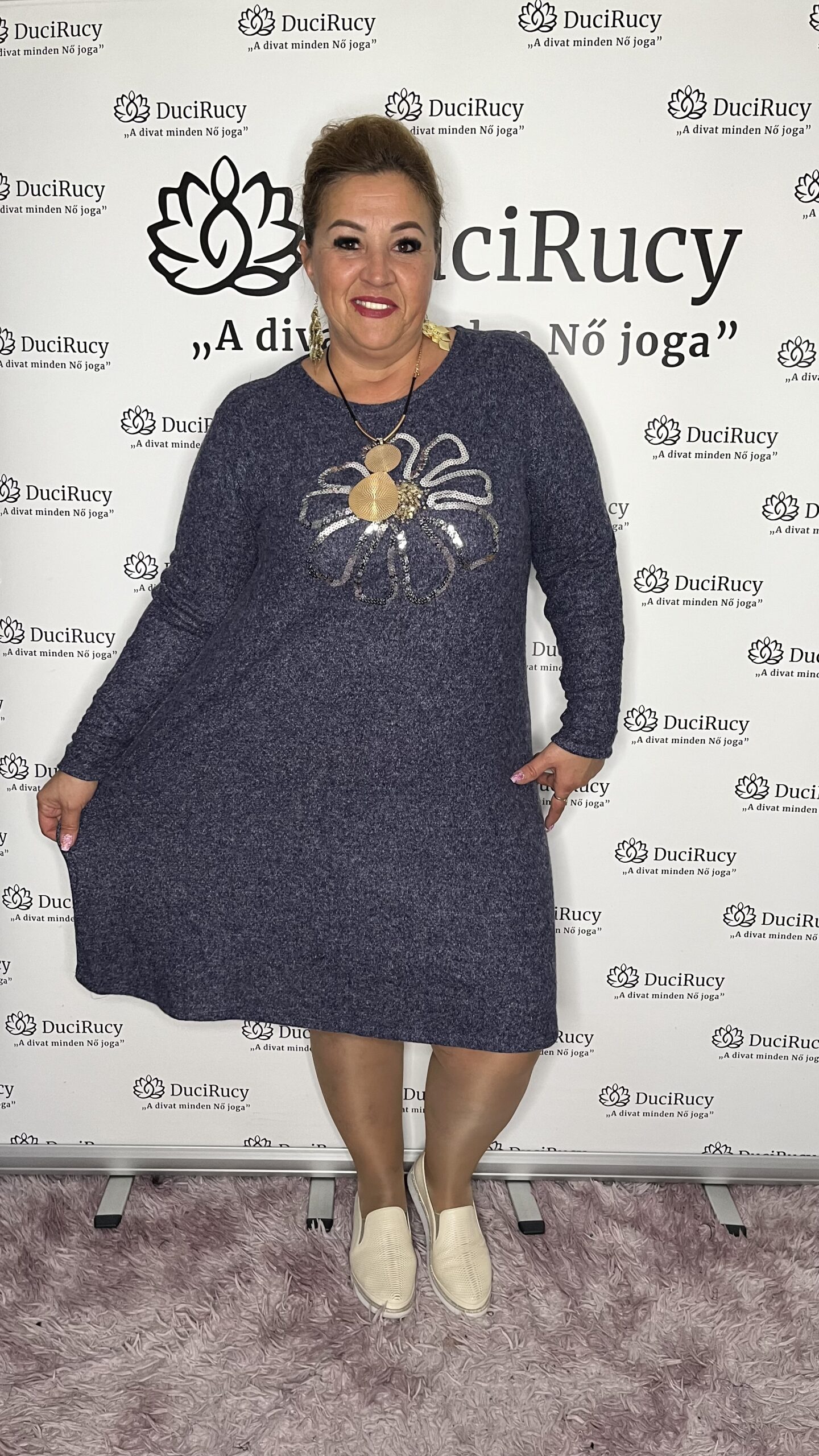 Olasz A vonalú pihe-puha kötött anyagból készül őszi/téli ruha.