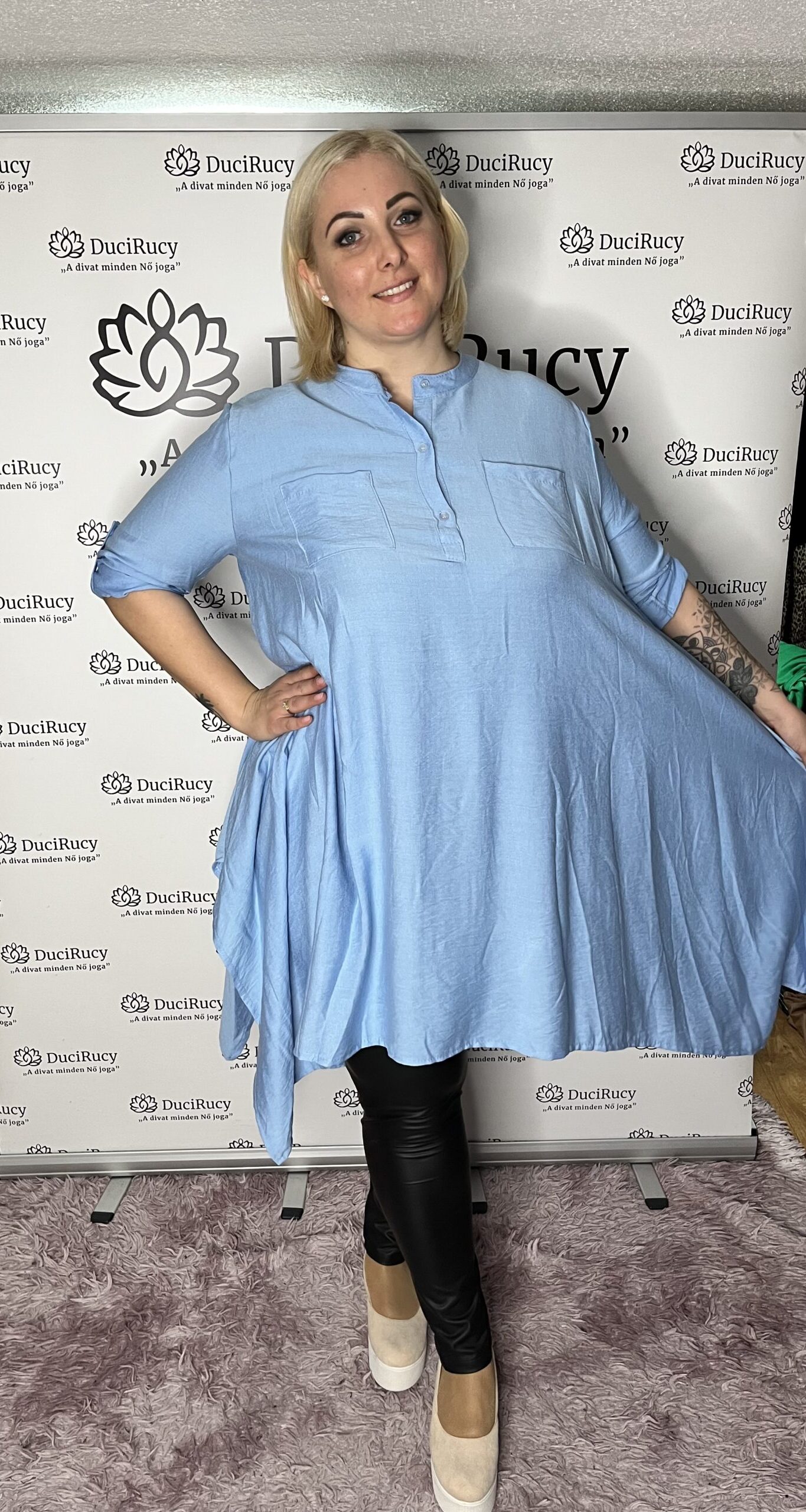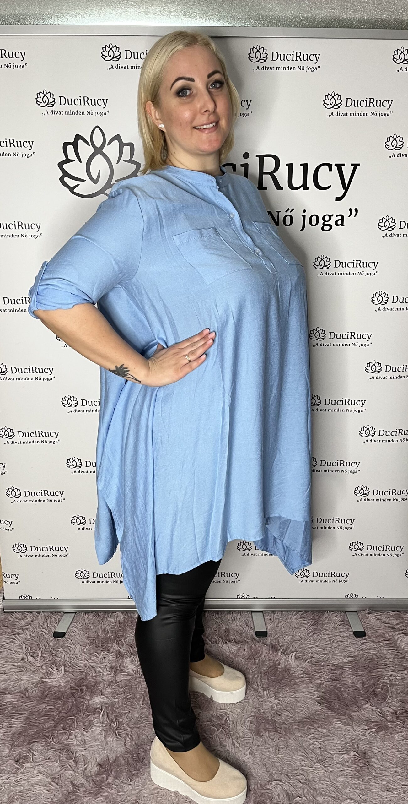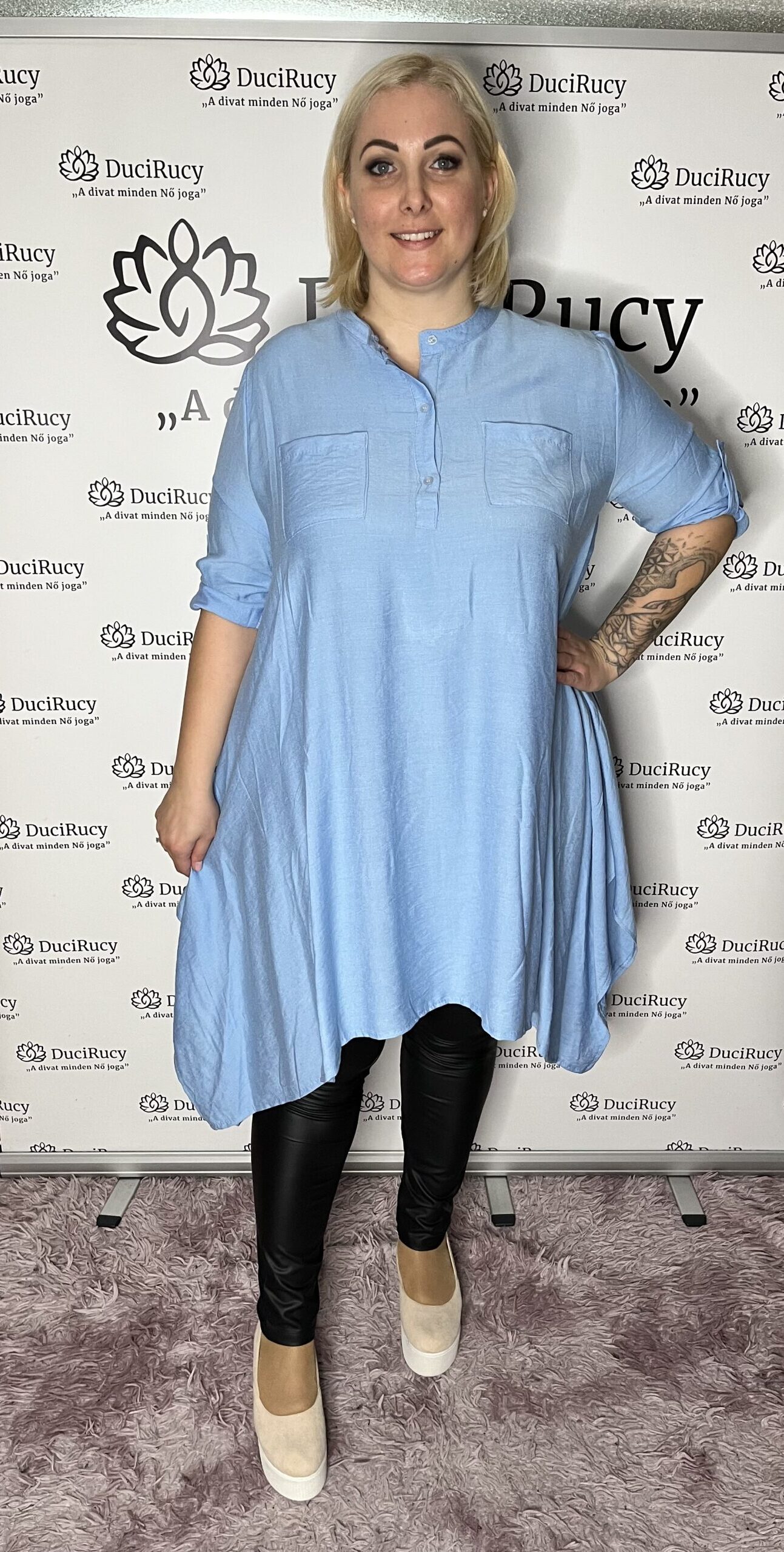 Olasz tavaszi lenge anyagból készült A vonalú, két oldalt hosszított fazonú ingtunika. NAgyon mutatós darab akár egy műbőr leggingszel akár egy színes vászon nadrággal.
