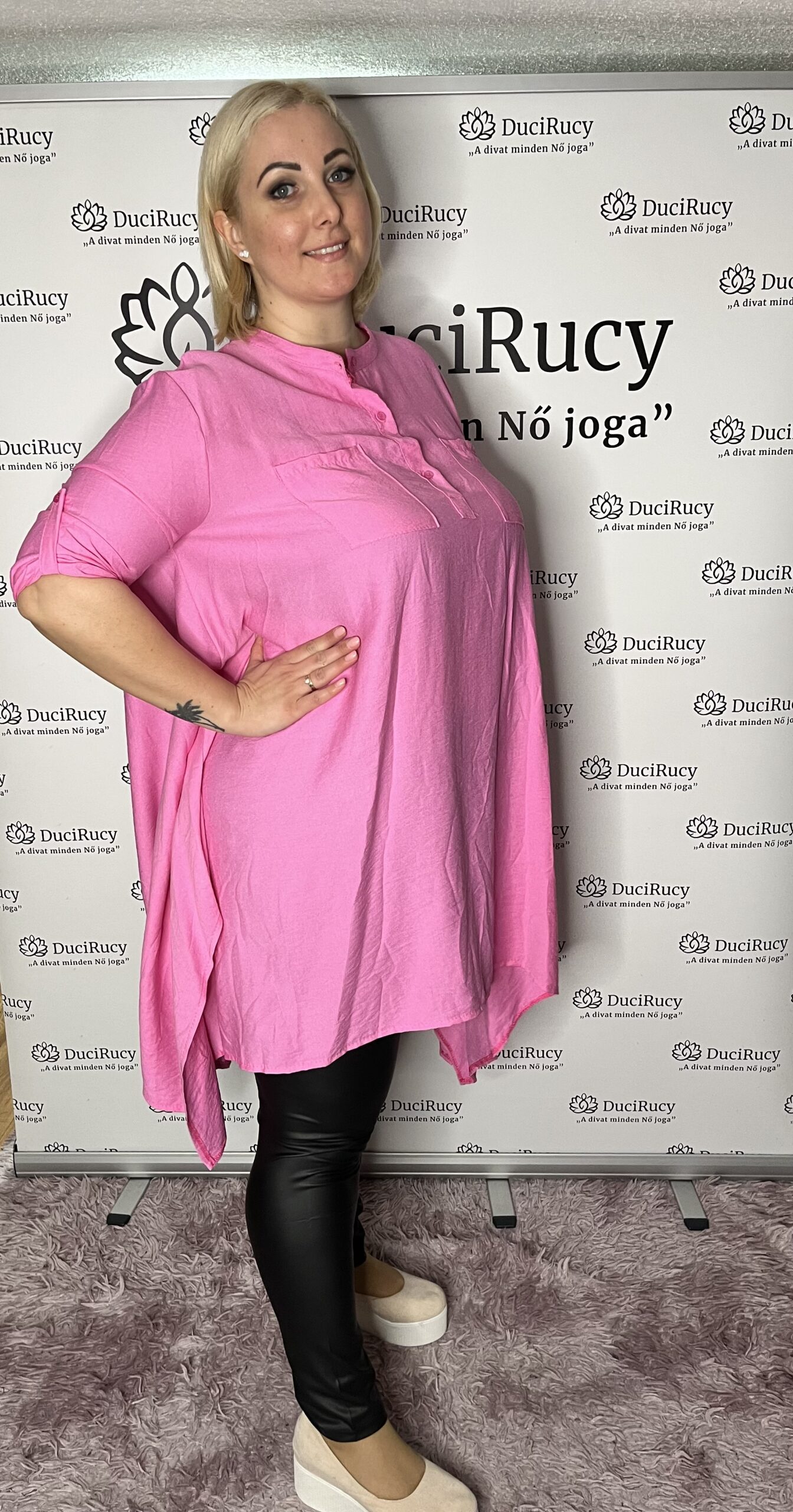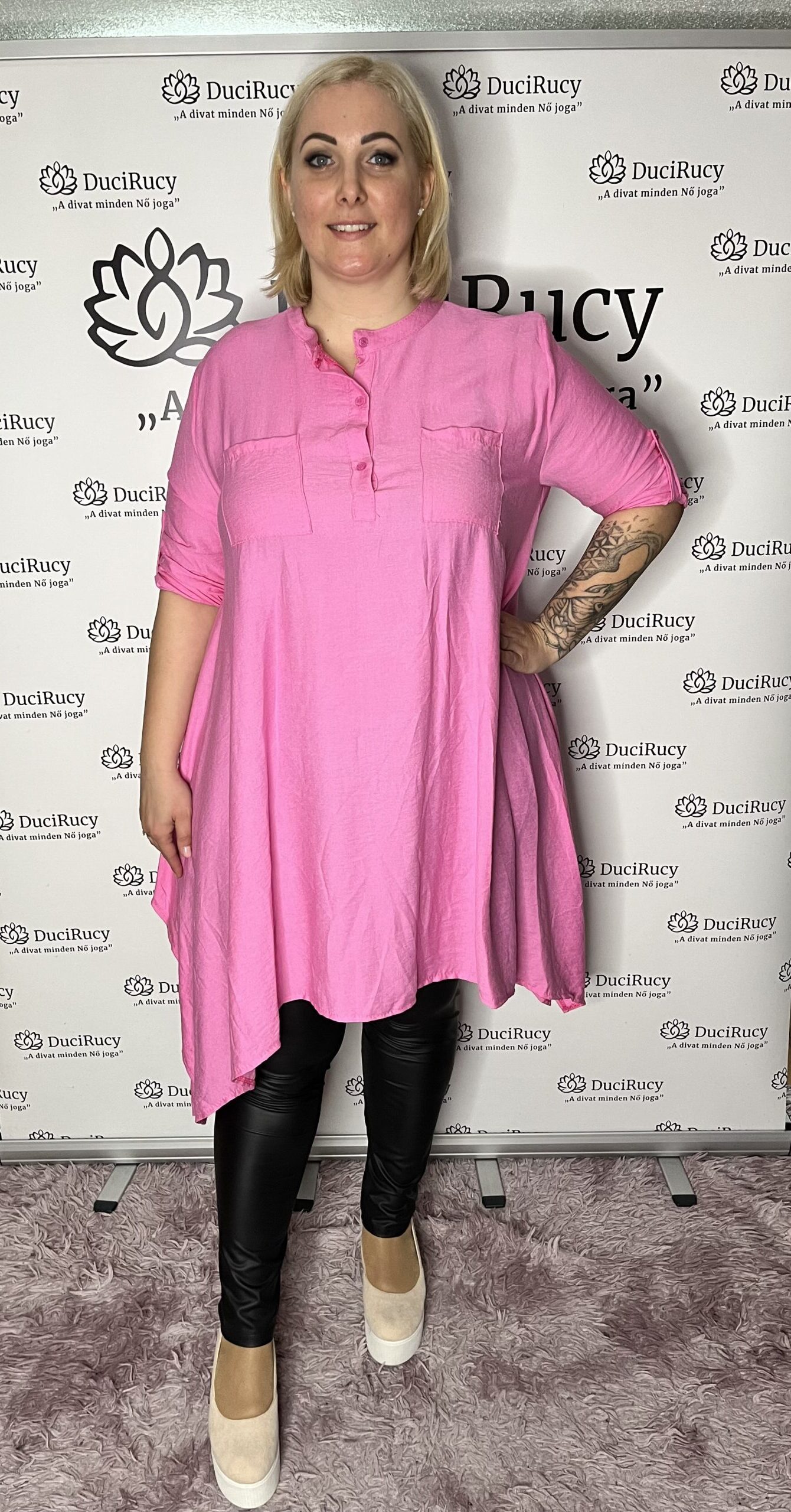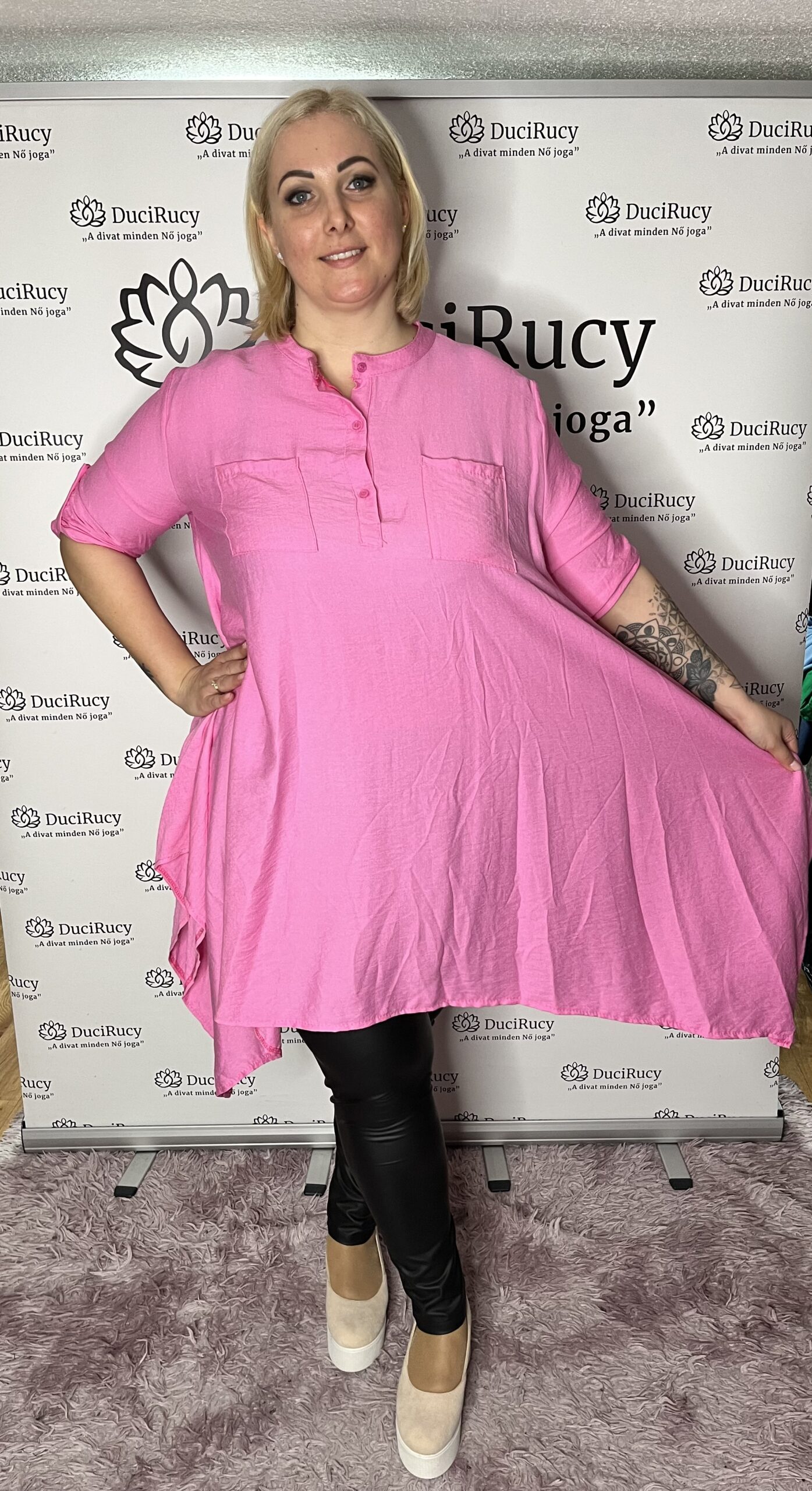 Olasz tavaszi lenge anyagból készült A vonalú, két oldalt hosszított fazonú ingtunika. NAgyon mutatós darab akár egy műbőr leggingszel akár egy színes vászon nadrággal.