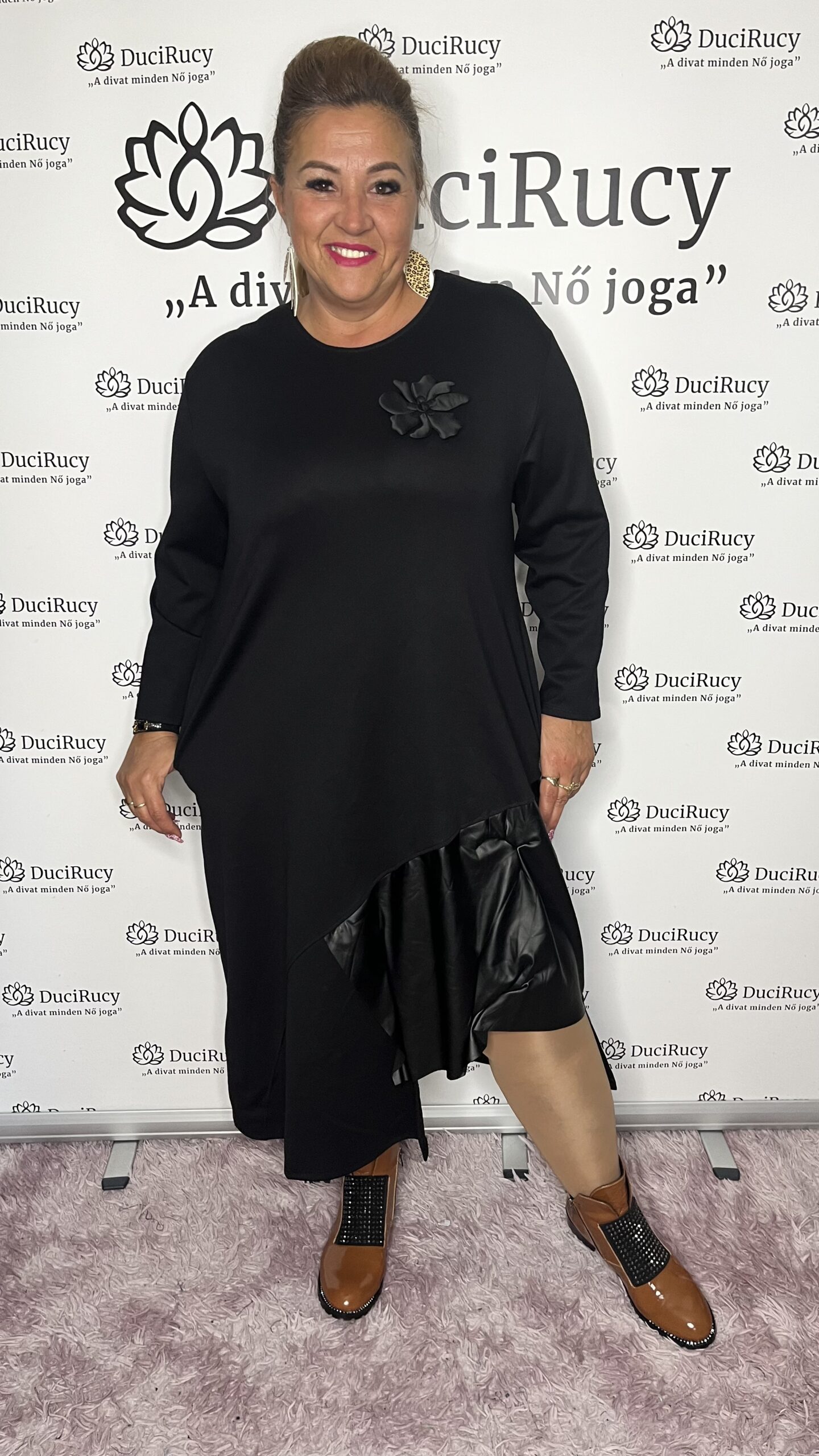 Olasz egyedi csodaszép vastagabb pamut anyagból készült zsebes ruha bőrrel és 3D virággal díszítve. Gyönyörű és egyedi darab, igazi olasz szépség.
