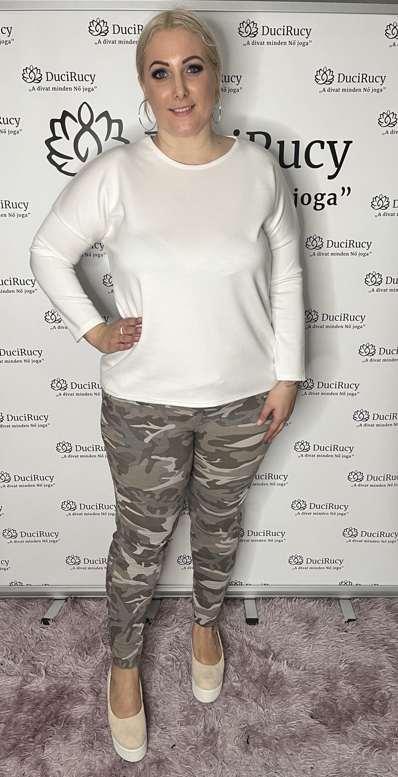Gyönyörű divatos terep mintás vászon nadrág gyűrt anyagból gumis derékkal. Nagyon kellemes és kényelmes viselet.