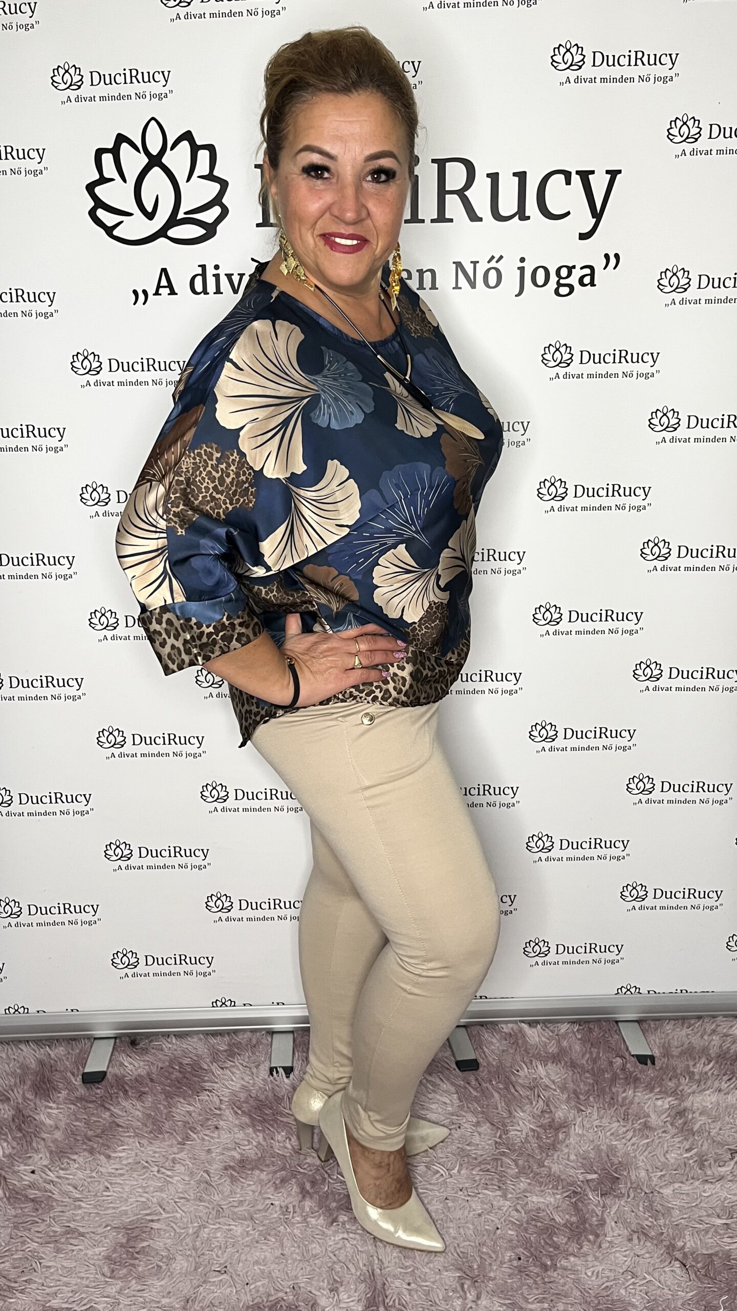 A képeken a modell is ezt a méretet viseli. A modell méretei: mell- és csípőbőség 120 cm, magassága 167 cm.