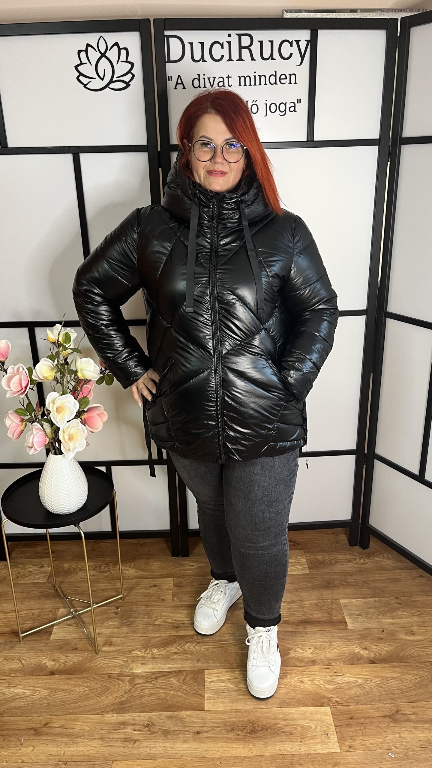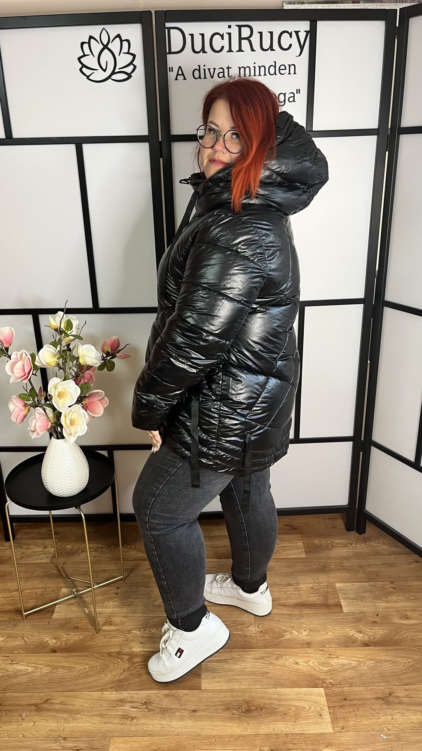 Csodaszép divatos fényes steppelt, rövidebb fazonú téli kabát. Gyönyörű, különleges darab.