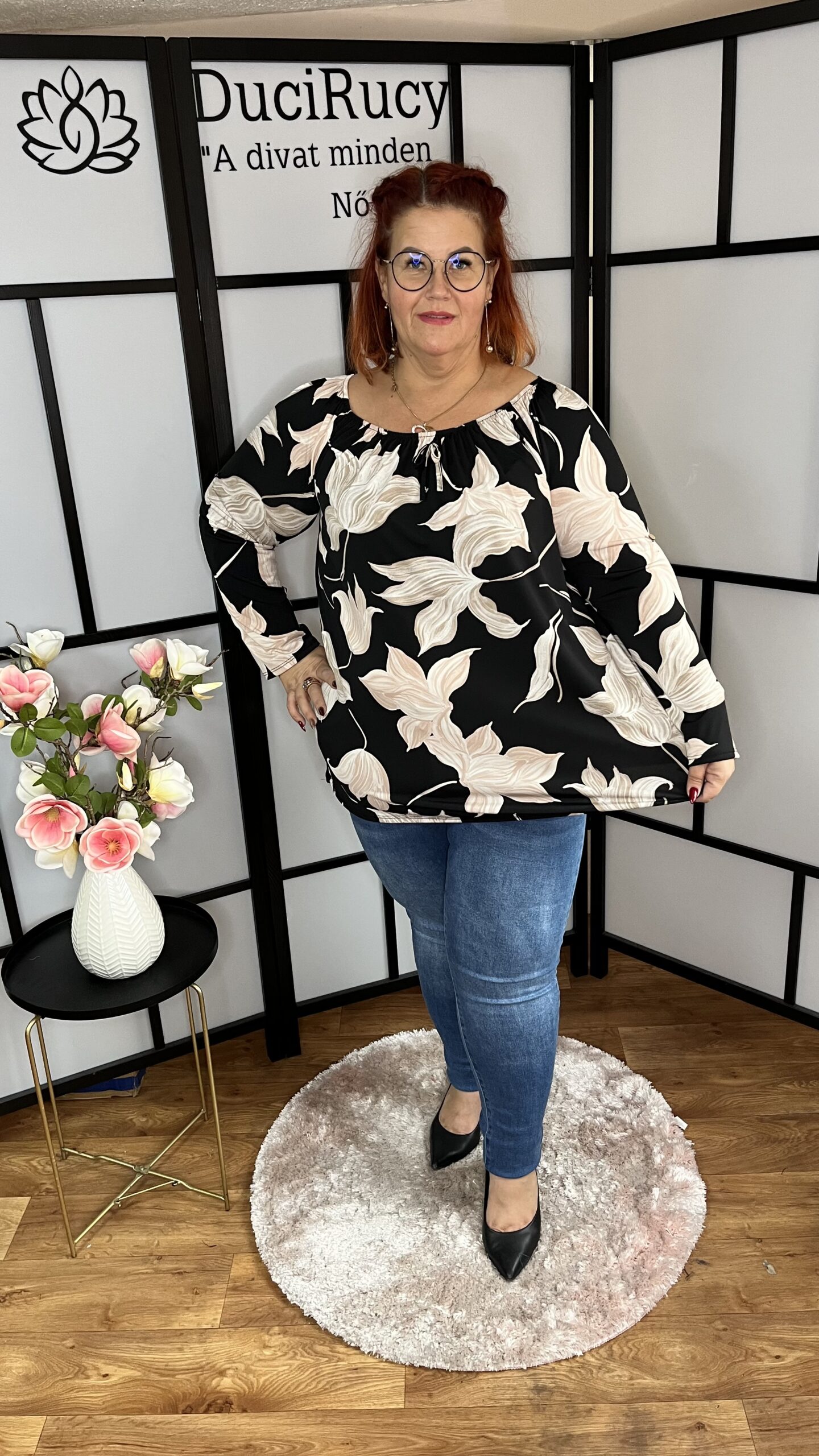 Őszi jégselyem anyagból készült gumis nyakú tunika. A tunika ujja felgombolható. A felső rugalmas anyagból készült. Szuper választás akár farmerhoz, viaszolt nadrághoz, bőrnadrághoz vagy akár punto nadrághoz is.