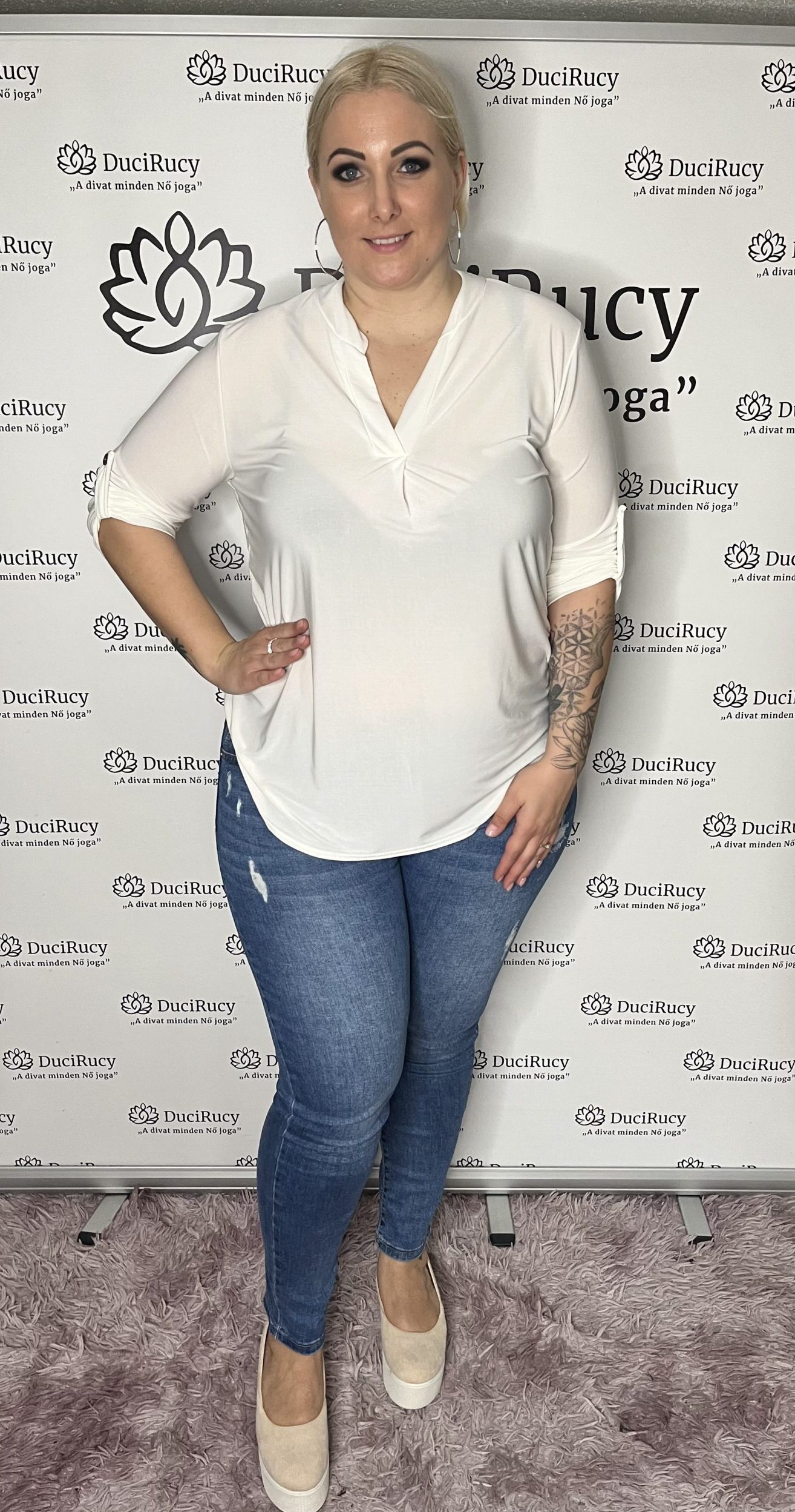 Olasz jégselyem anyagból készült rugalmas ingblúz kerekített fazonnal V kivágással. Ez a fazon nagyon jó választás molett hölgyeknek, hisz nagyon jól nyújtva az alakot. Évek óta áruljuk ezt a terméket, a vevőink nagy kedvence. Egy alkalmi nadrággal vagy akár farmerrel is nagyon csinos megjelenést biztosít.