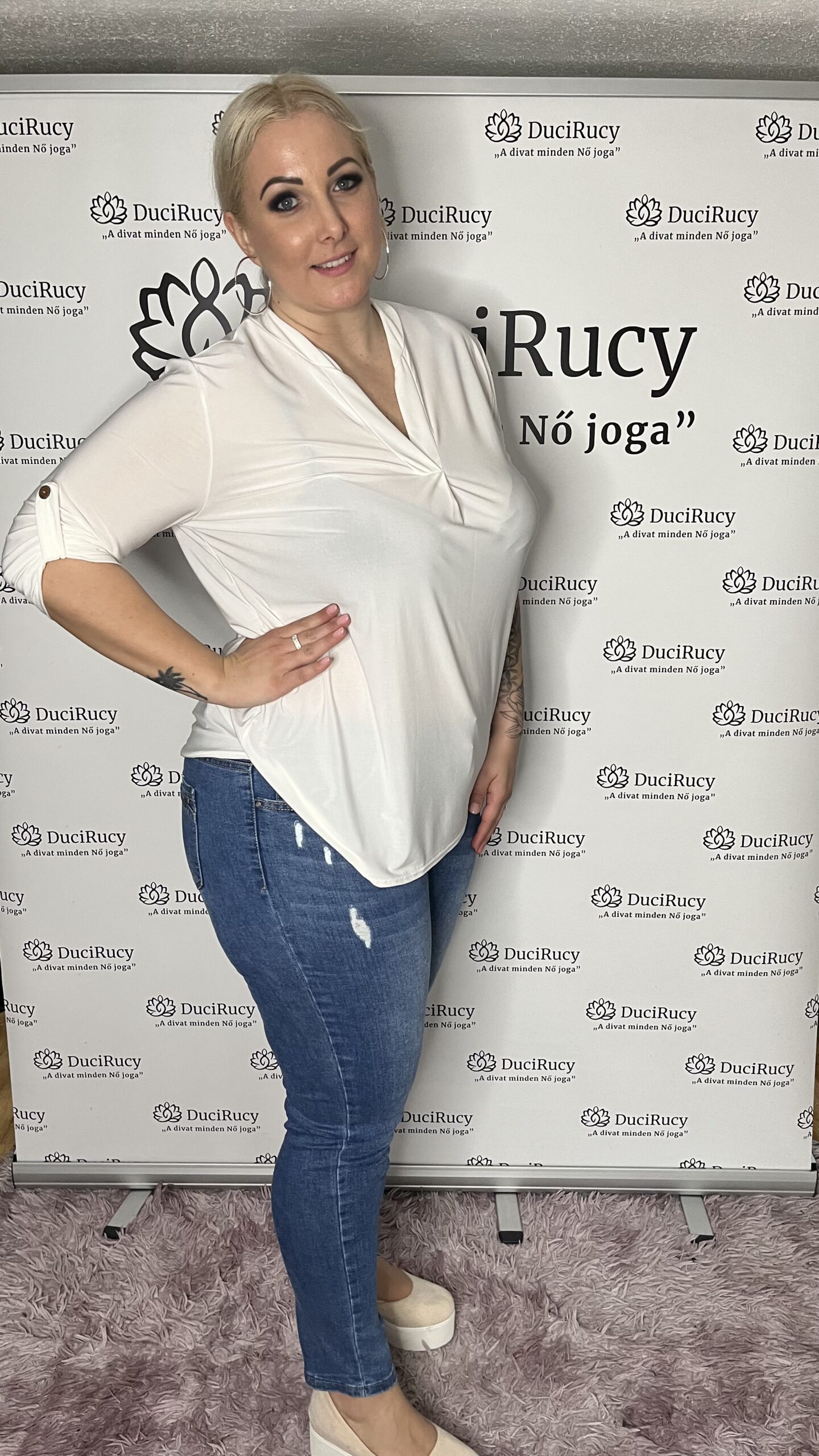 Olasz jégselyem anyagból készült szuper divatos ingblúz fehér színben