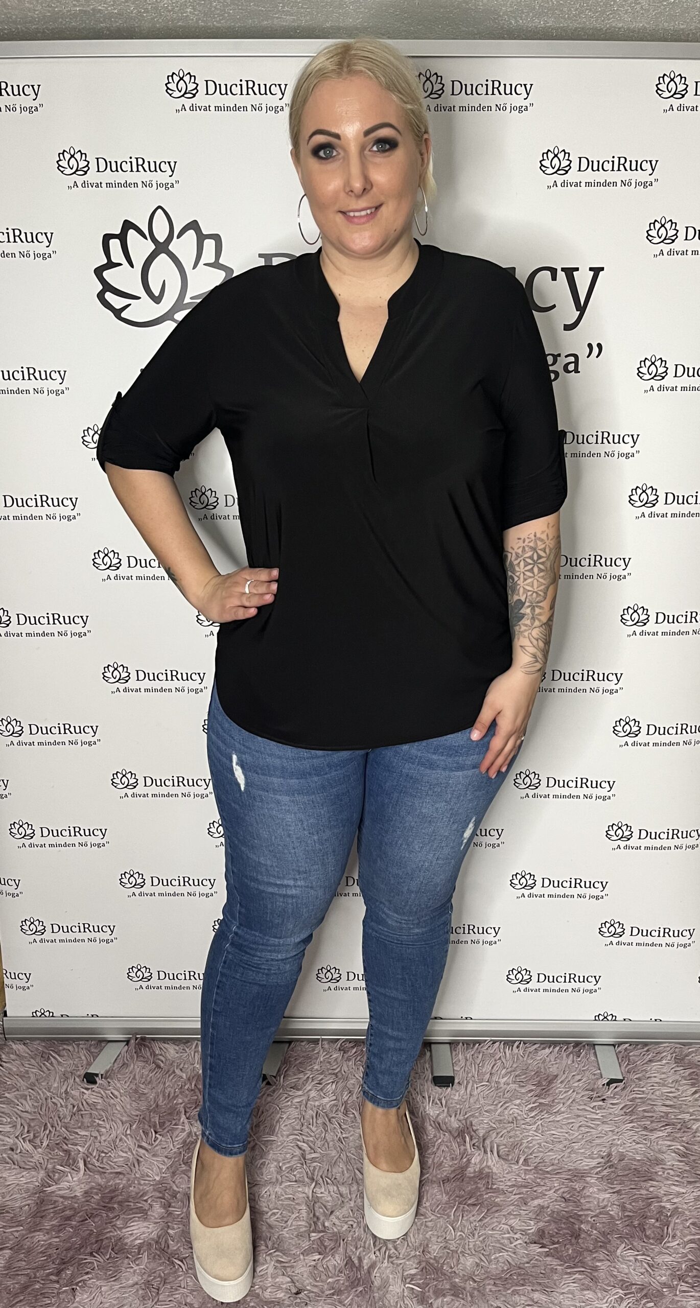 Olasz jégselyem anyagból készült rugalmas ingblúz kerekített fazonnal V kivágással. Ez a fazon nagyon jó választás molett hölgyeknek, hisz nagyon jól nyújtva az alakot. Évek óta áruljuk ezt a terméket, a vevőink nagy kedvence. Egy alkalmi nadrággal vagy akár farmerrel is nagyon csinos megjelenést biztosít.