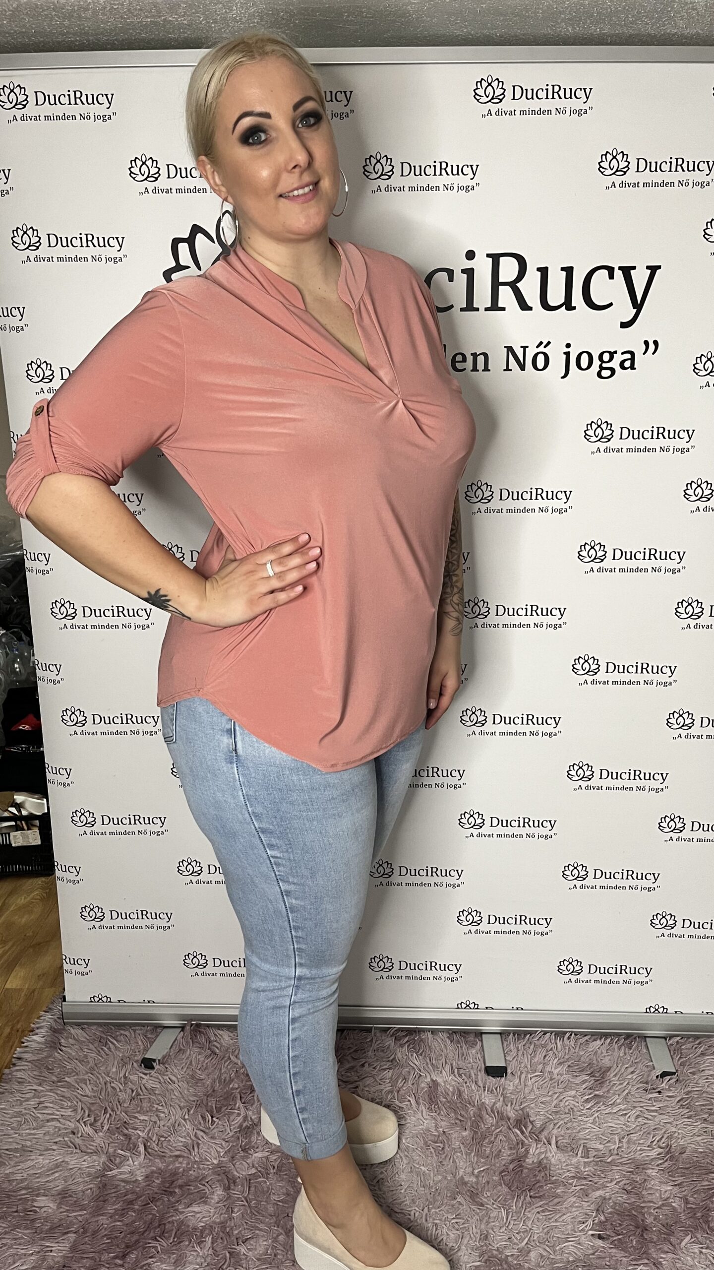 Olasz jégselyem anyagból készült rugalmas ingblúz kerekített fazonnal V kivágással. Ez a fazon nagyon jó választás molett hölgyeknek, hisz nagyon jól nyújtva az alakot. Évek óta áruljuk ezt a terméket, a vevőink nagy kedvence. Egy alkalmi nadrággal vagy akár farmerrel is nagyon csinos megjelenést biztosít.
