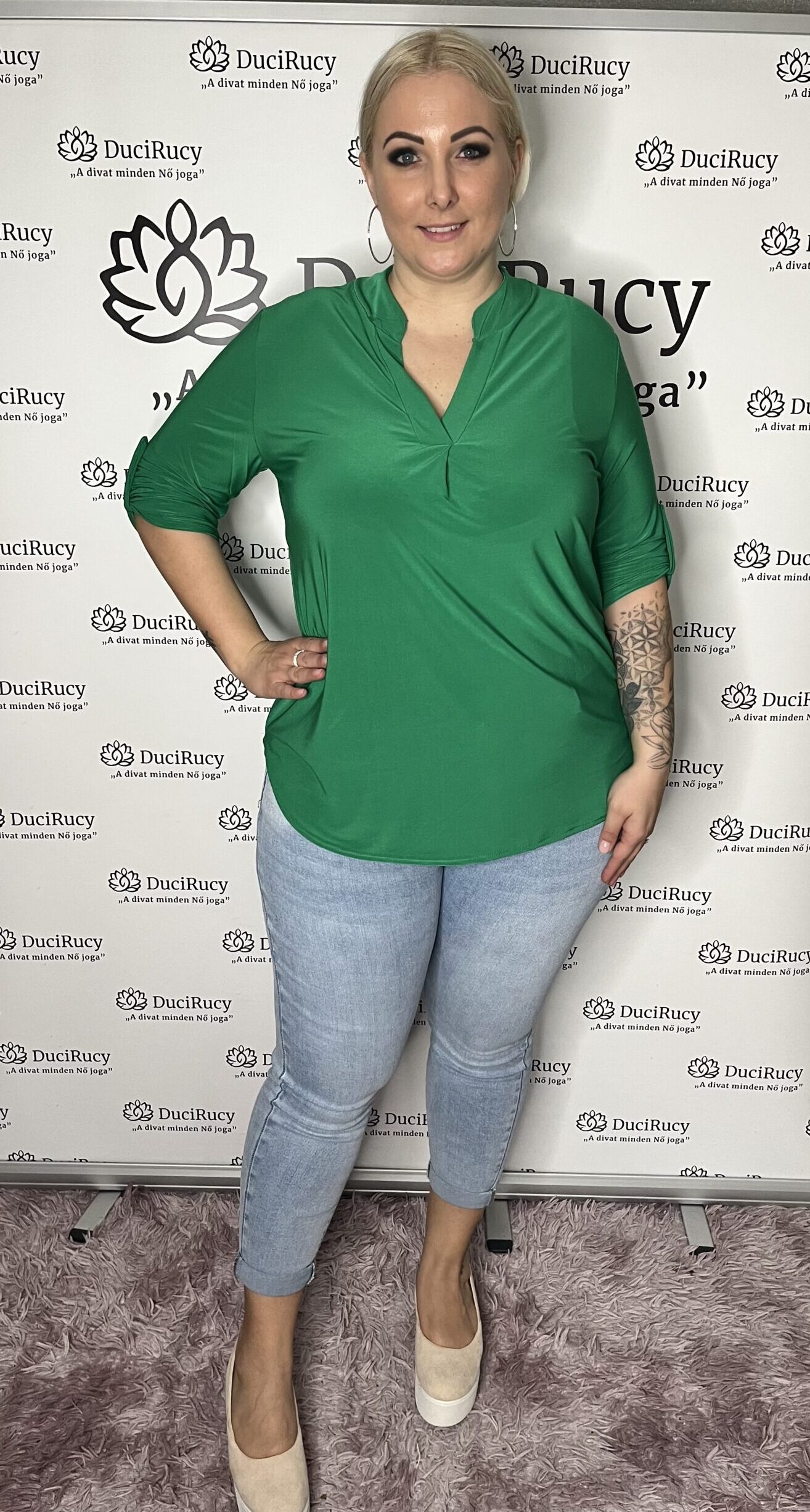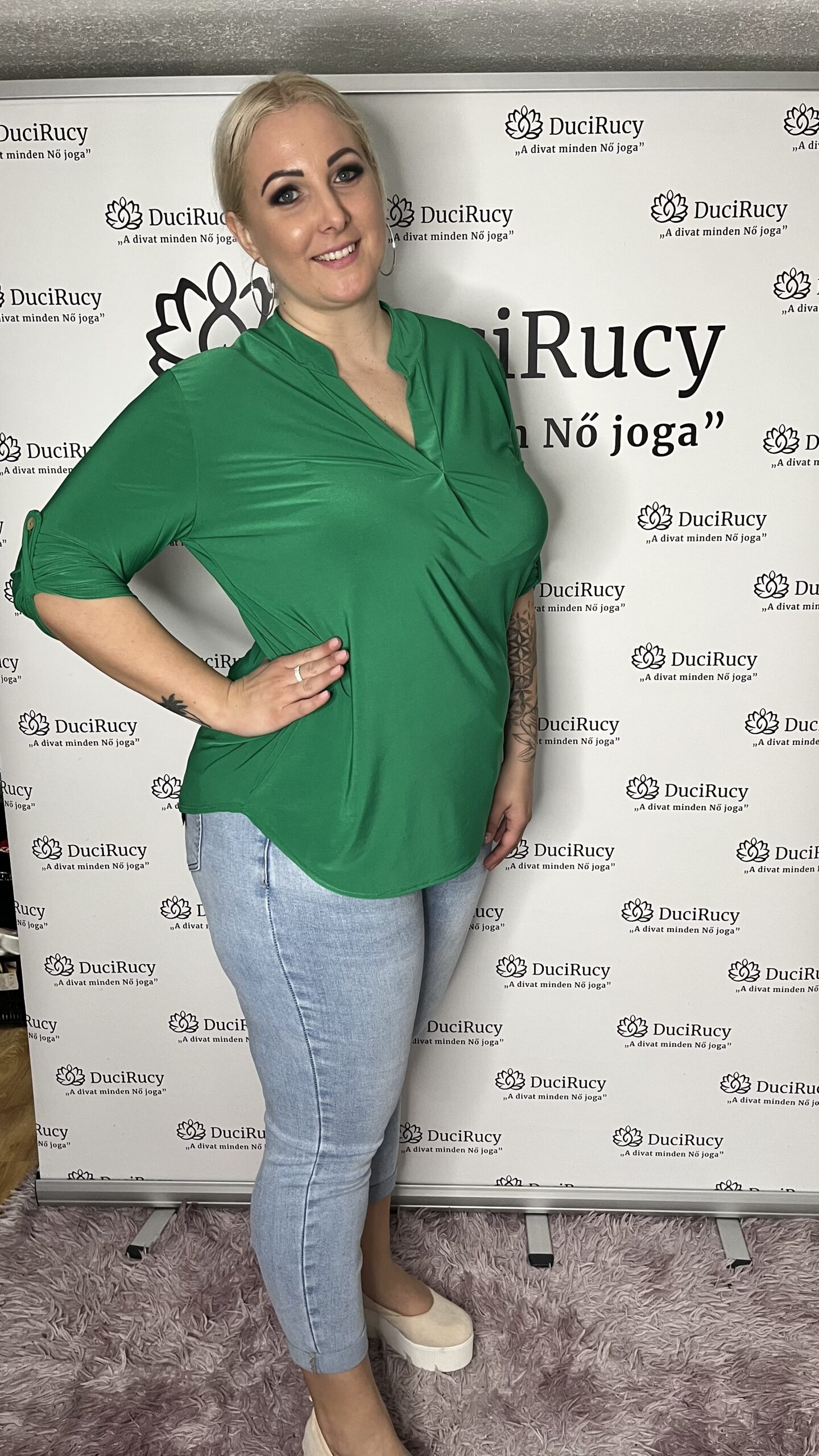 Olasz jégselyem anyagból készült rugalmas ingblúz kerekített fazonnal V kivágással. Ez a fazon nagyon jó választás molett hölgyeknek, hisz nagyon jól nyújtva az alakot. Évek óta áruljuk ezt a terméket, a vevőink nagy kedvence. Egy alkalmi nadrággal vagy akár farmerrel is nagyon csinos megjelenést biztosít.