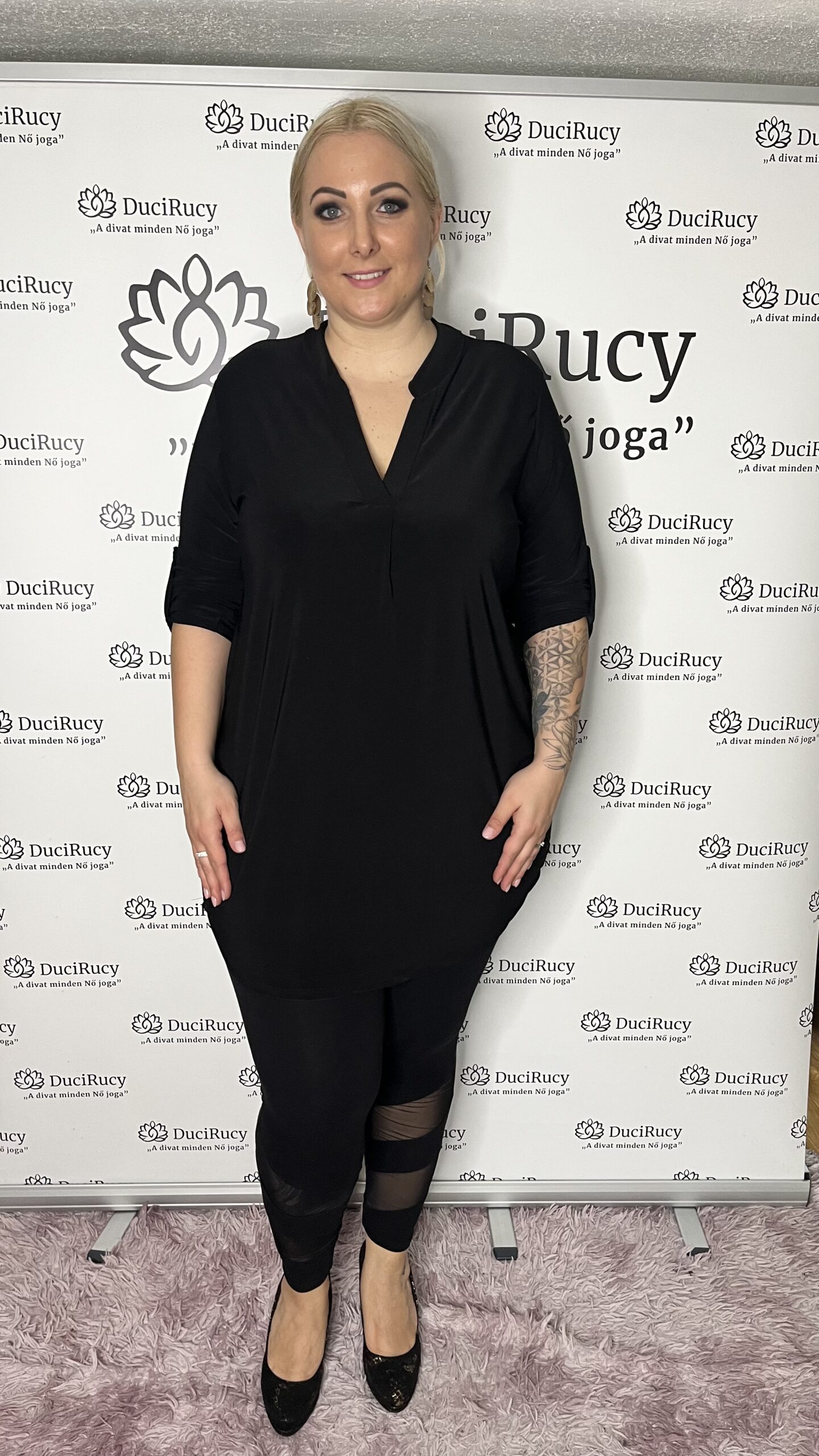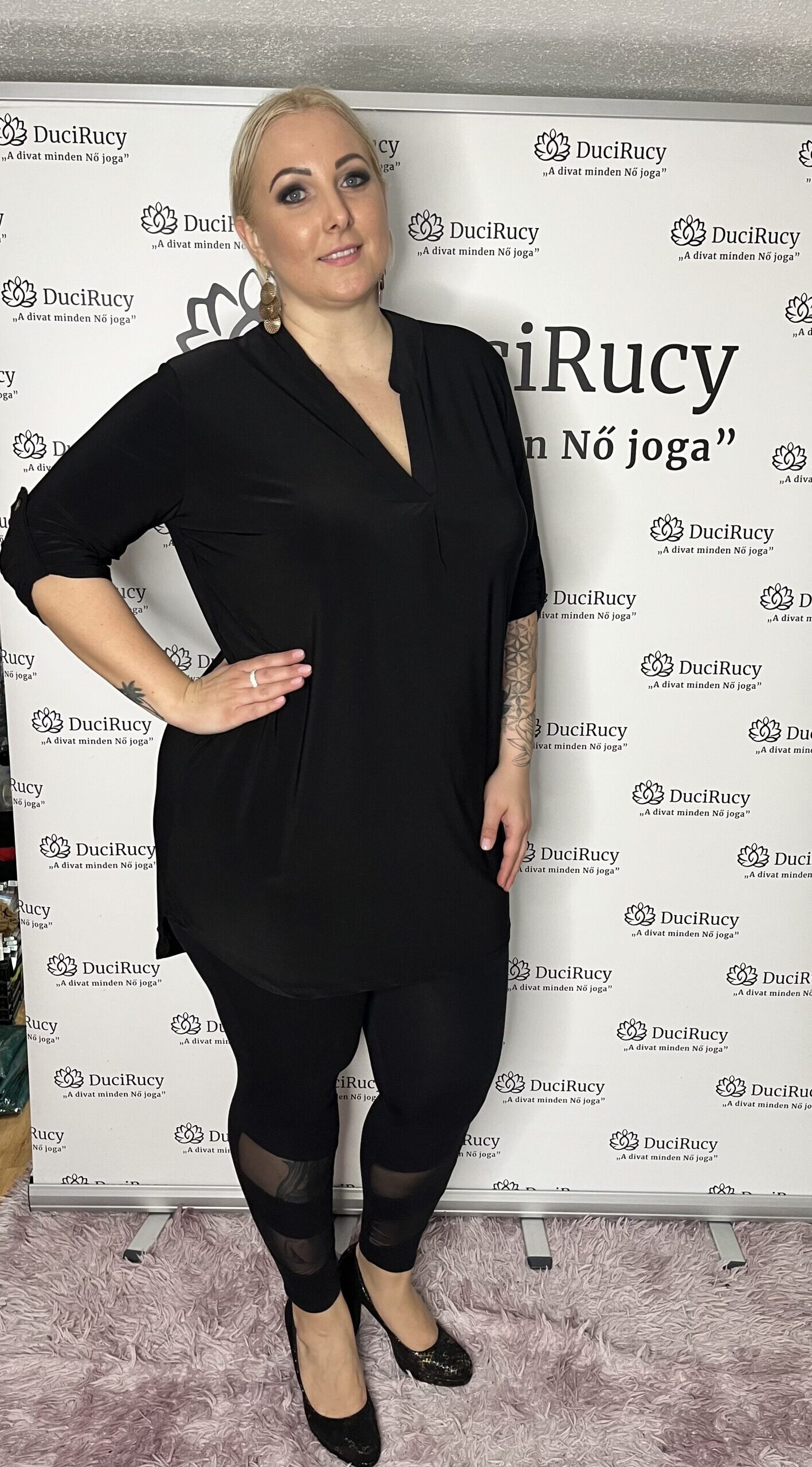 Olasz jégselyem anyagból készült szuper divatos ingtunika fekete színben