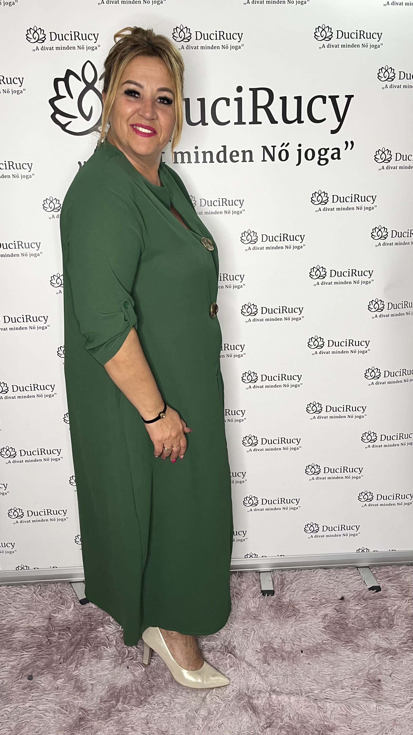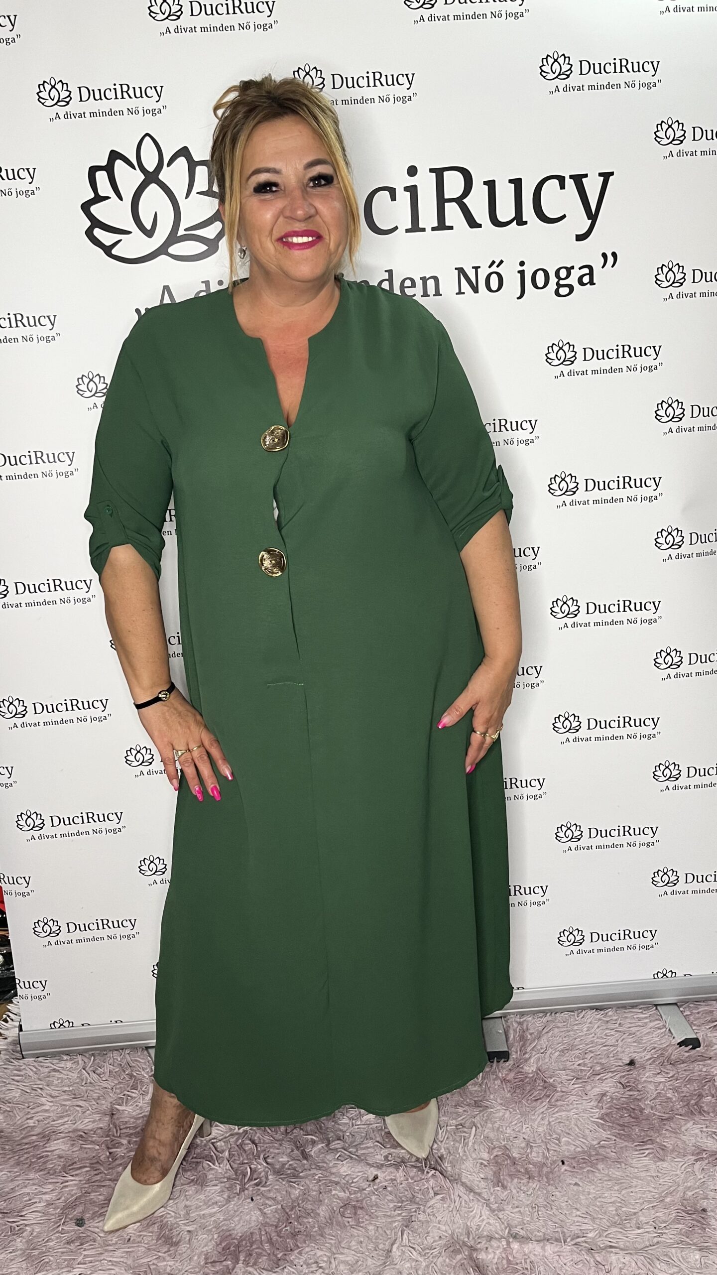 Olasz maxi ruha felgombolható ujjal arany gombokkal zöld színben