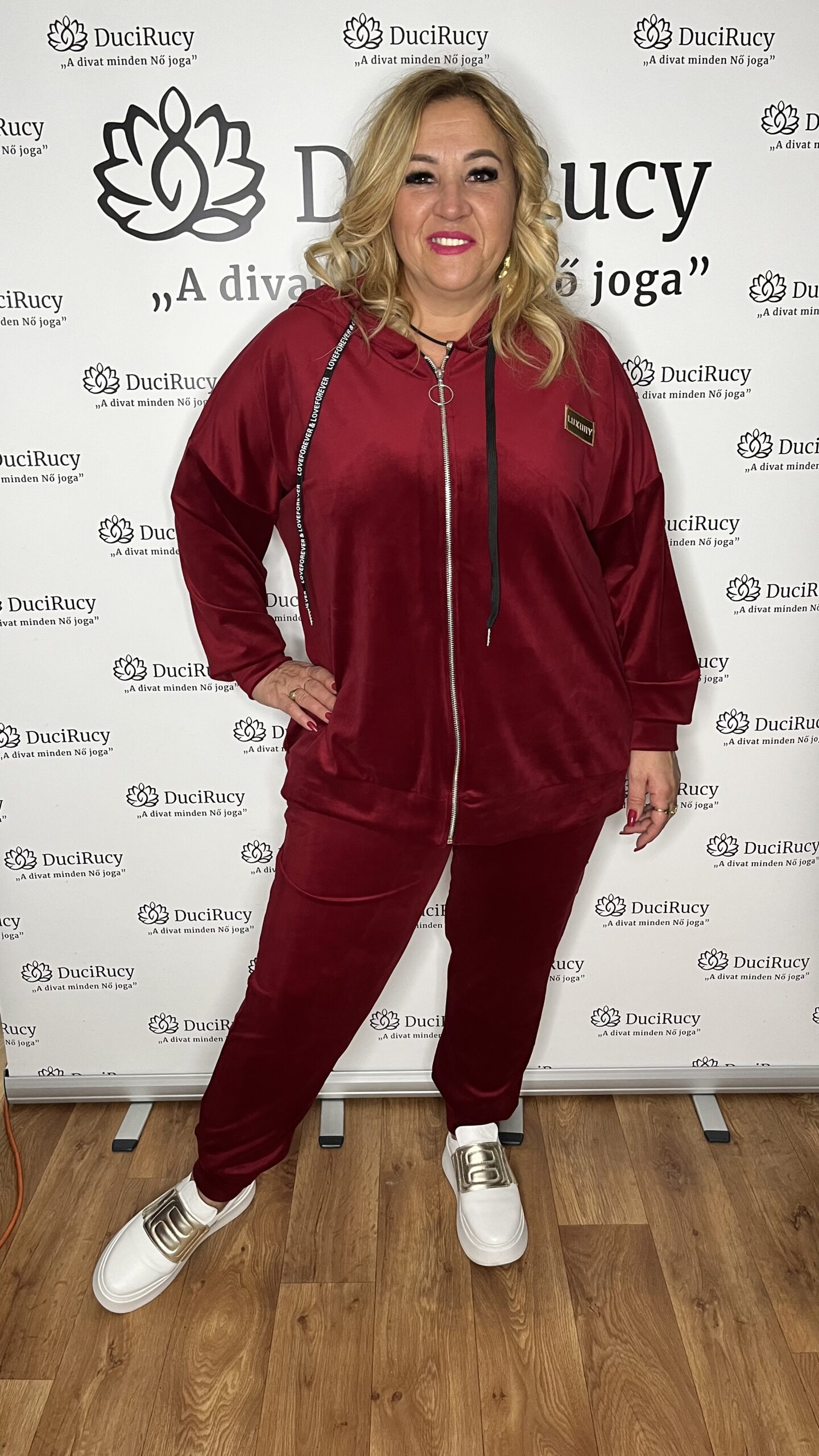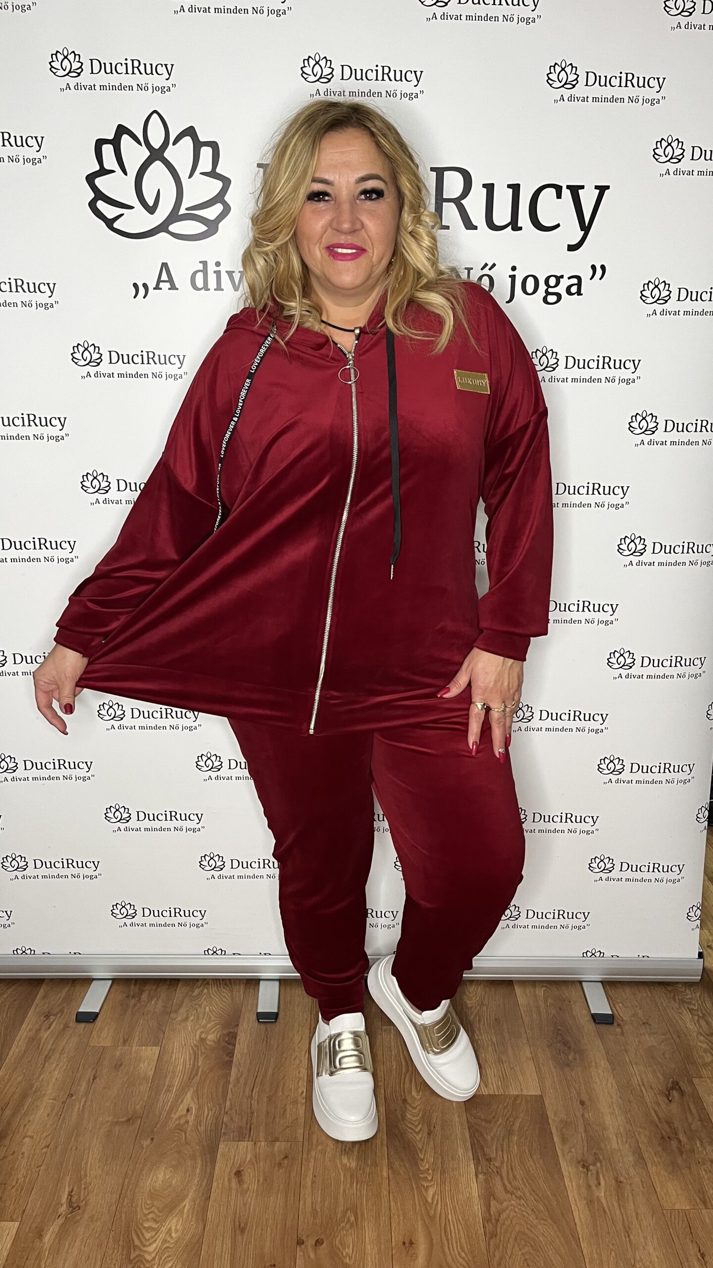 Olasz nagyméretű Luxury plüss kapucnis melegítő bordó színben