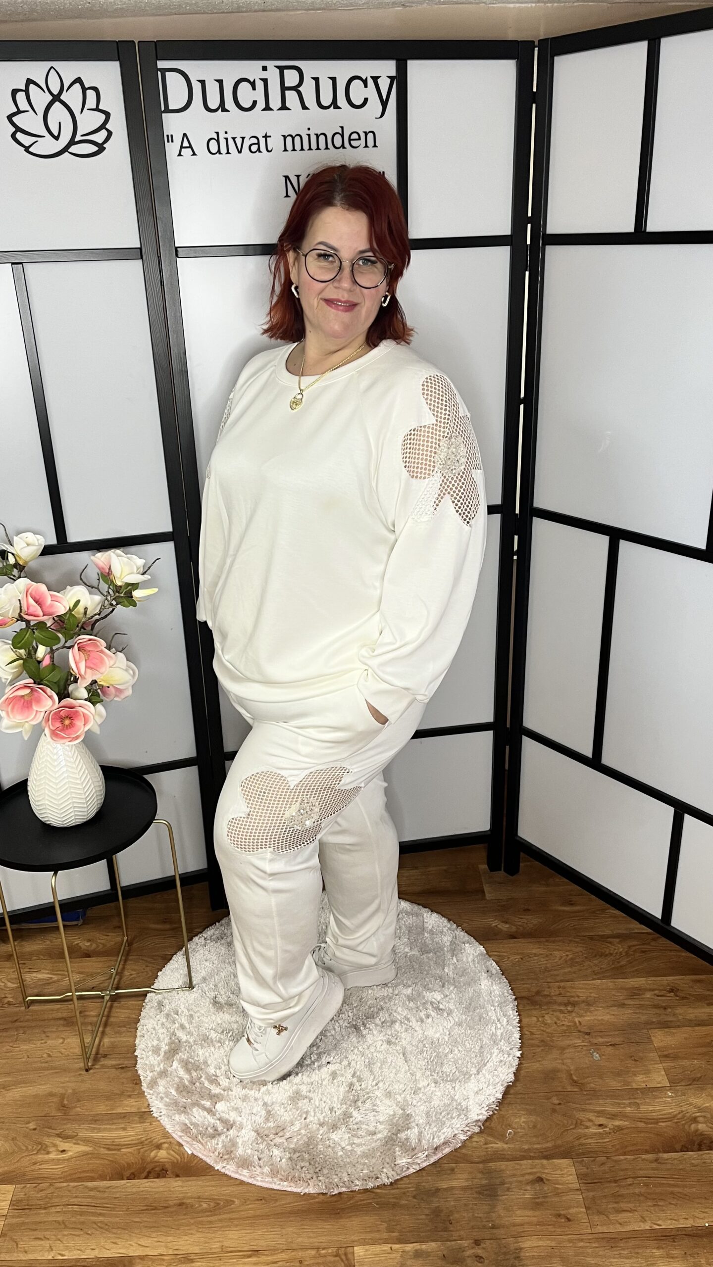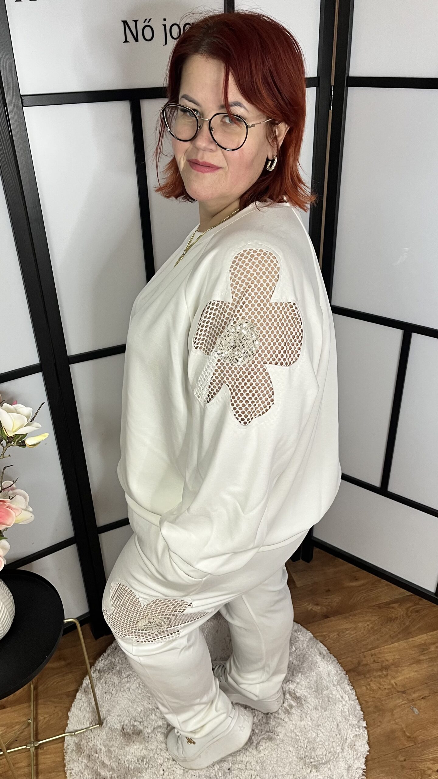 Prémium pamut anyagból készült, olasz necc betétes szabadidő együttes. Igazi csajos darab. A felső rész passzés aljú, a nadrág gumis derekú és zsebes.