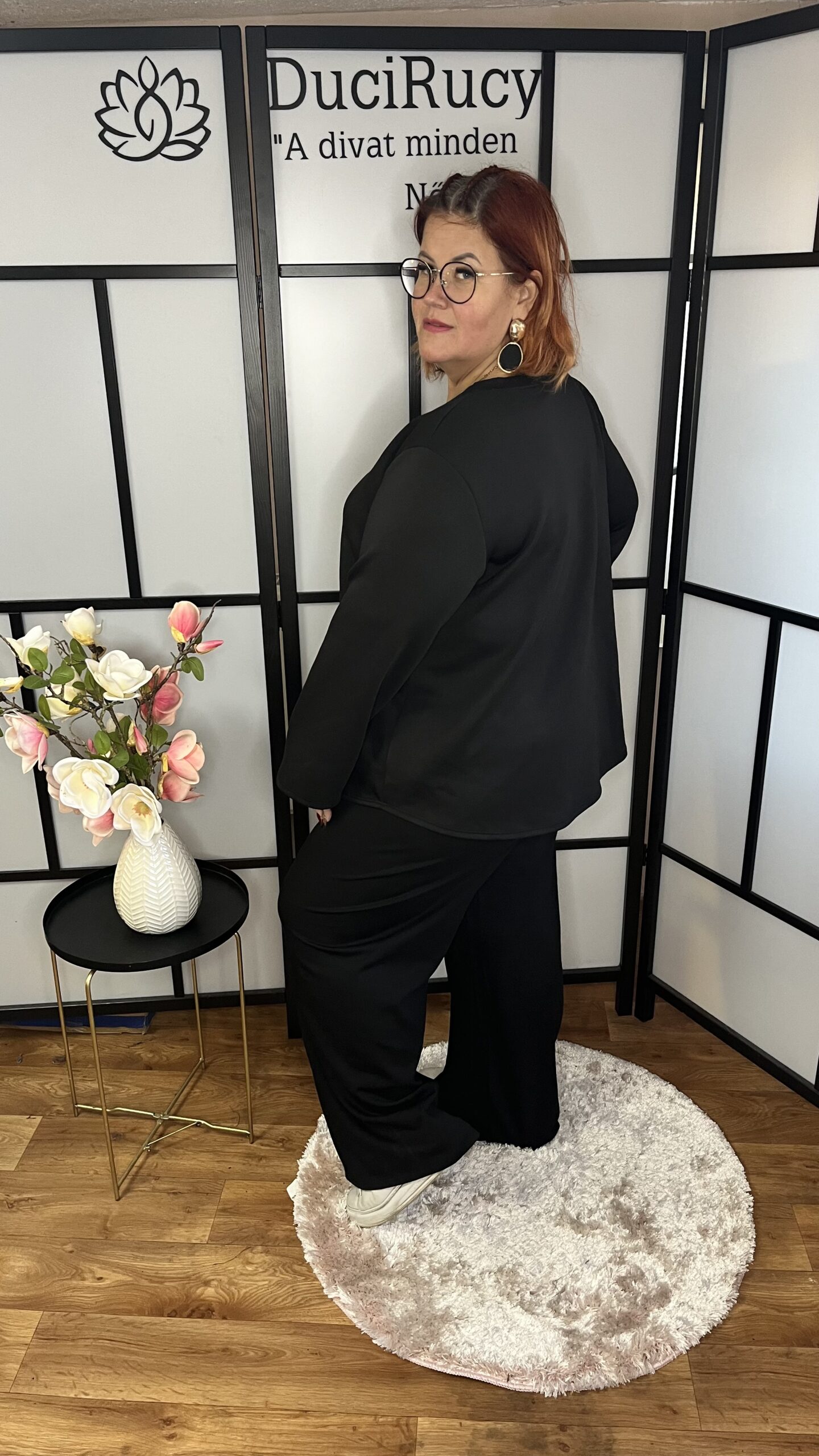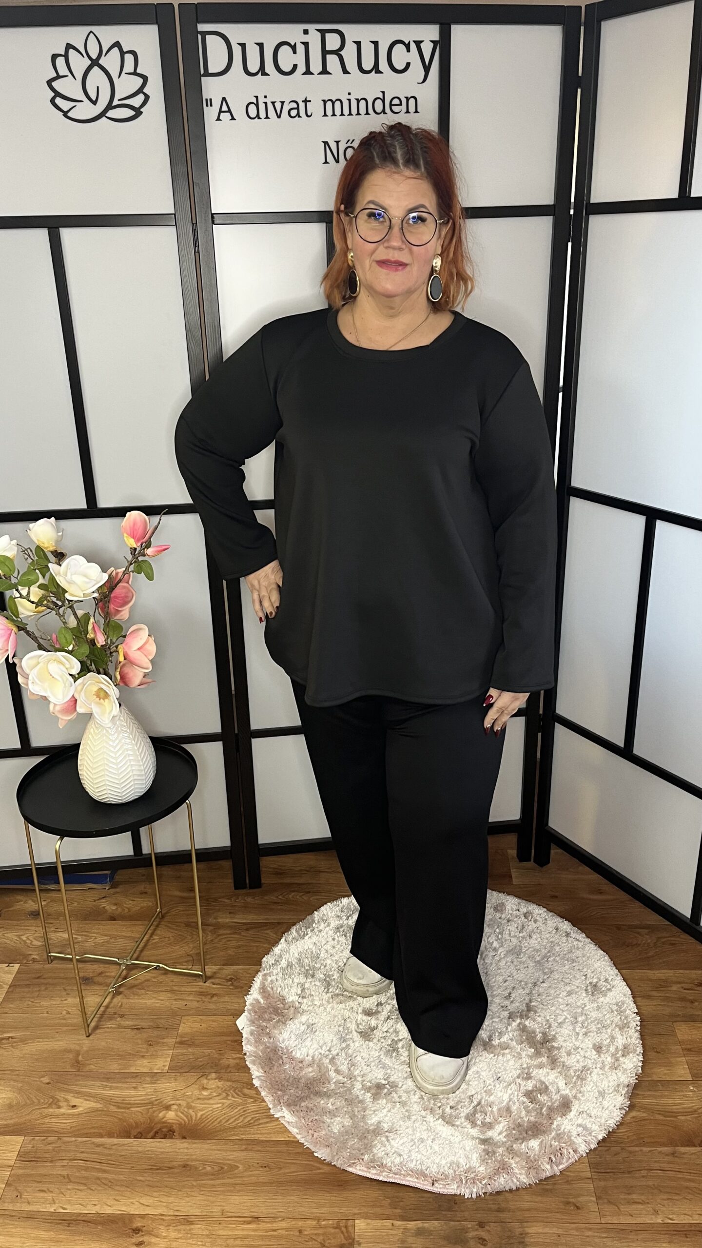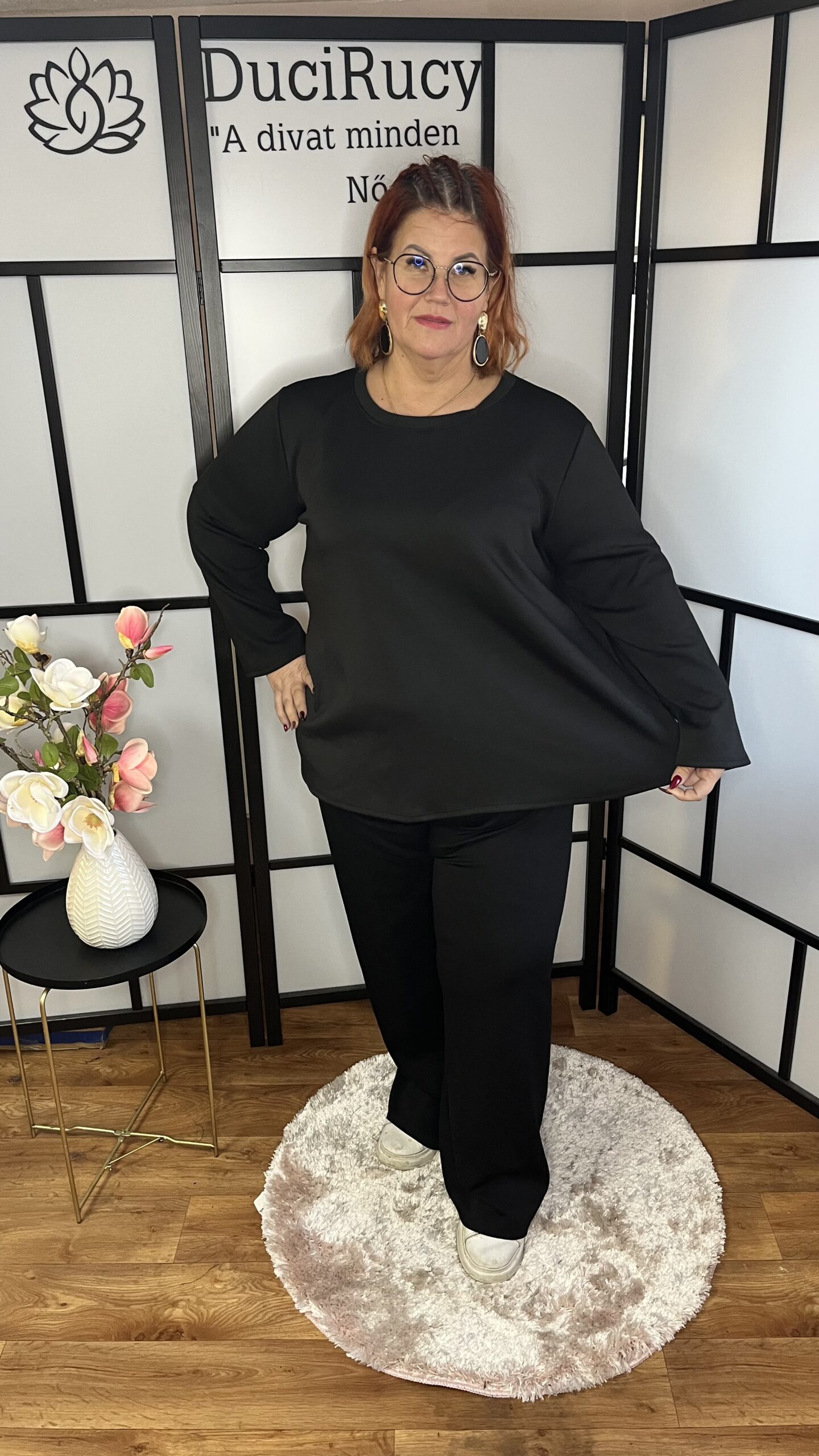 Olasz, pamut anyagból készült, egyenes fazonú, az alján kerekített, nadrágja gumis derekú együttes. Igazán egyedi, fiatalos, trendi szett. Divatos és dögös pamut együttes, melynek nadrágja egyenes fazonú. Nagyon kényelmes viselet! Díszítés nincs rajta, azonban bármilyen szuper kitűzővel feldobható.