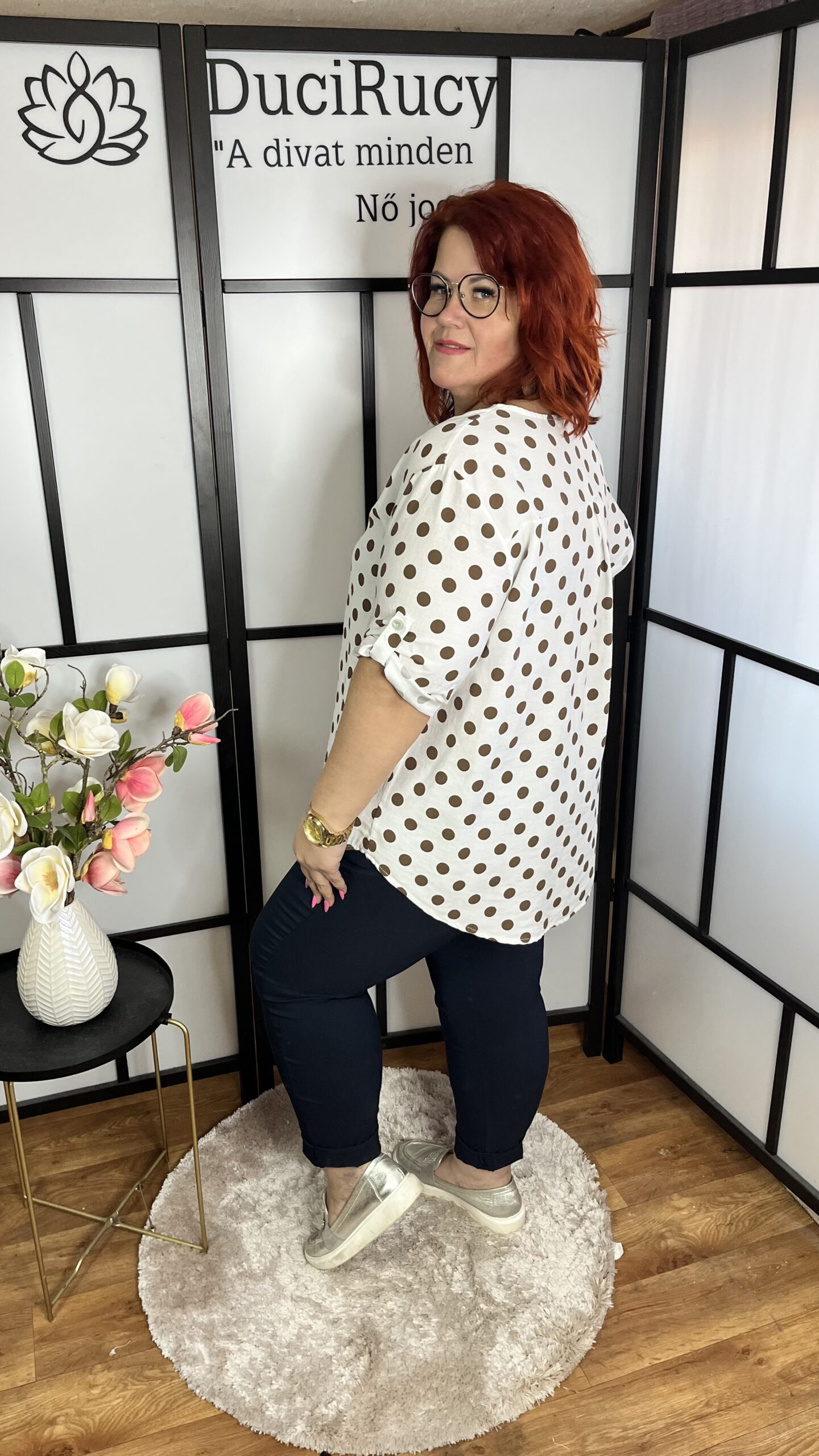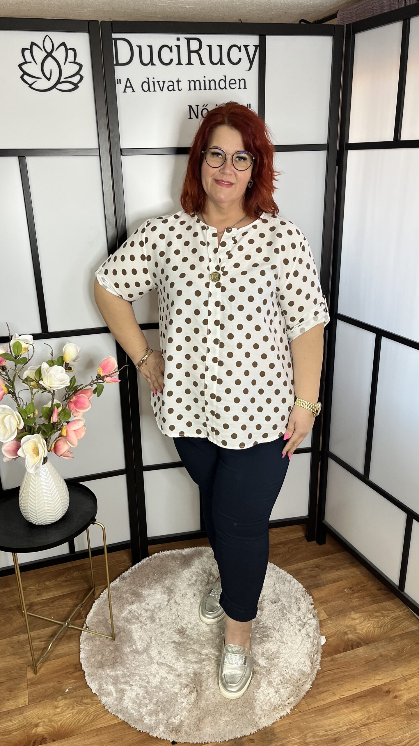 Extra kényelmes, szuper anyagból készült, olasz, kerekített fazonú, ingblúz 1 gombbal. Az ujja felgombolható. A blúz anyaga nem rugalmas.