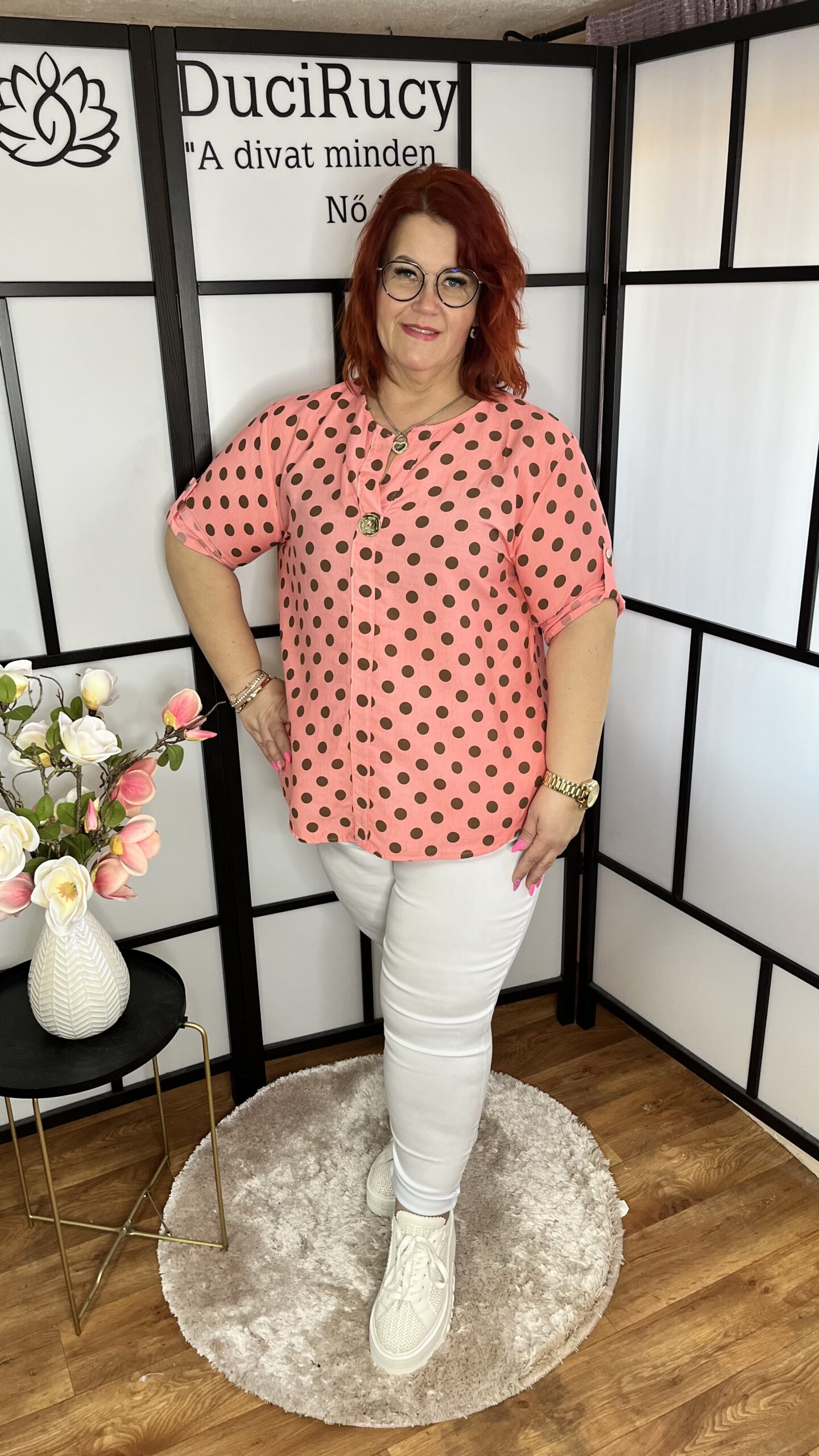 Olasz, pöttyös, 1 gombos, kerekített fazonú felső korall színben