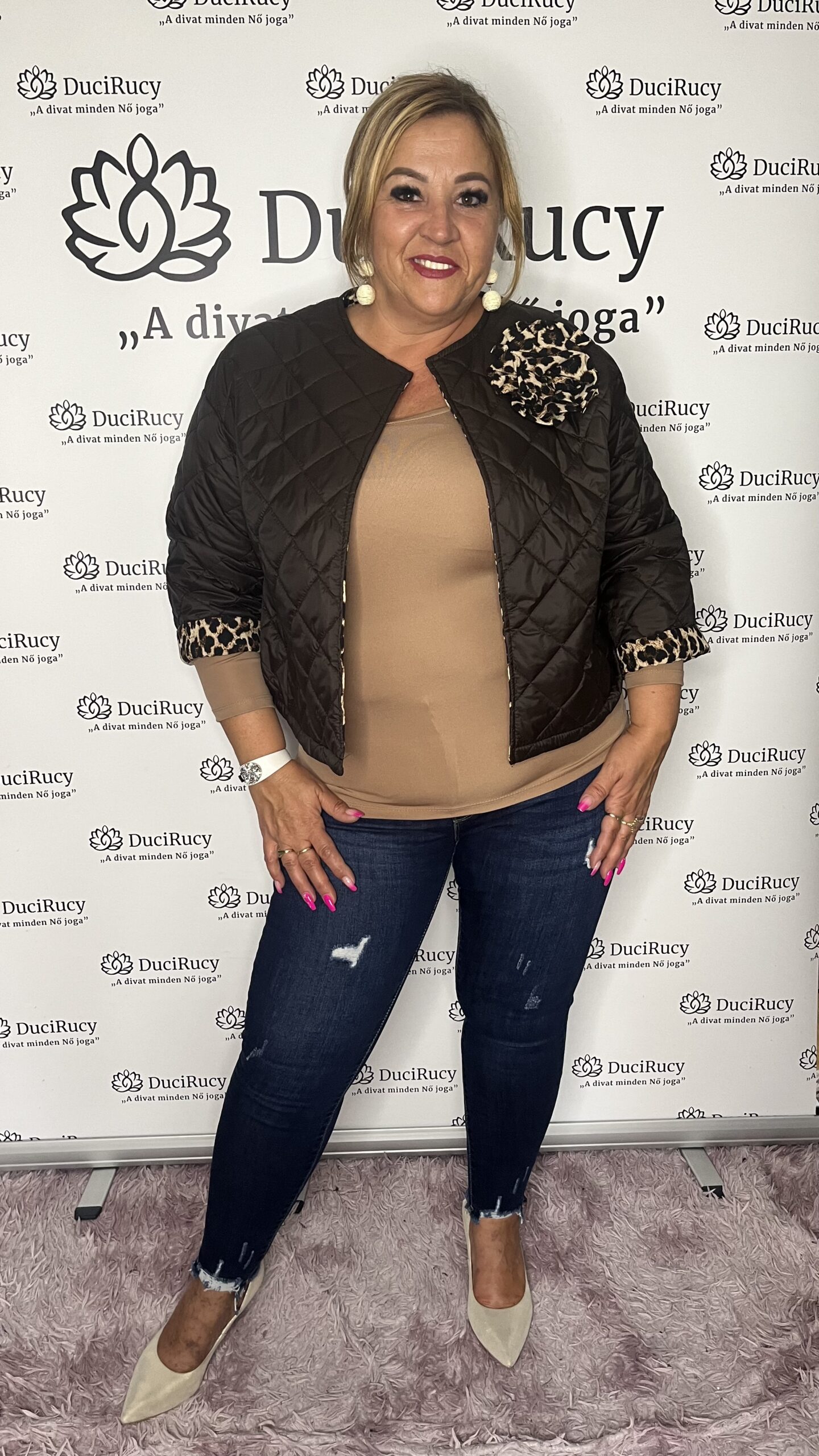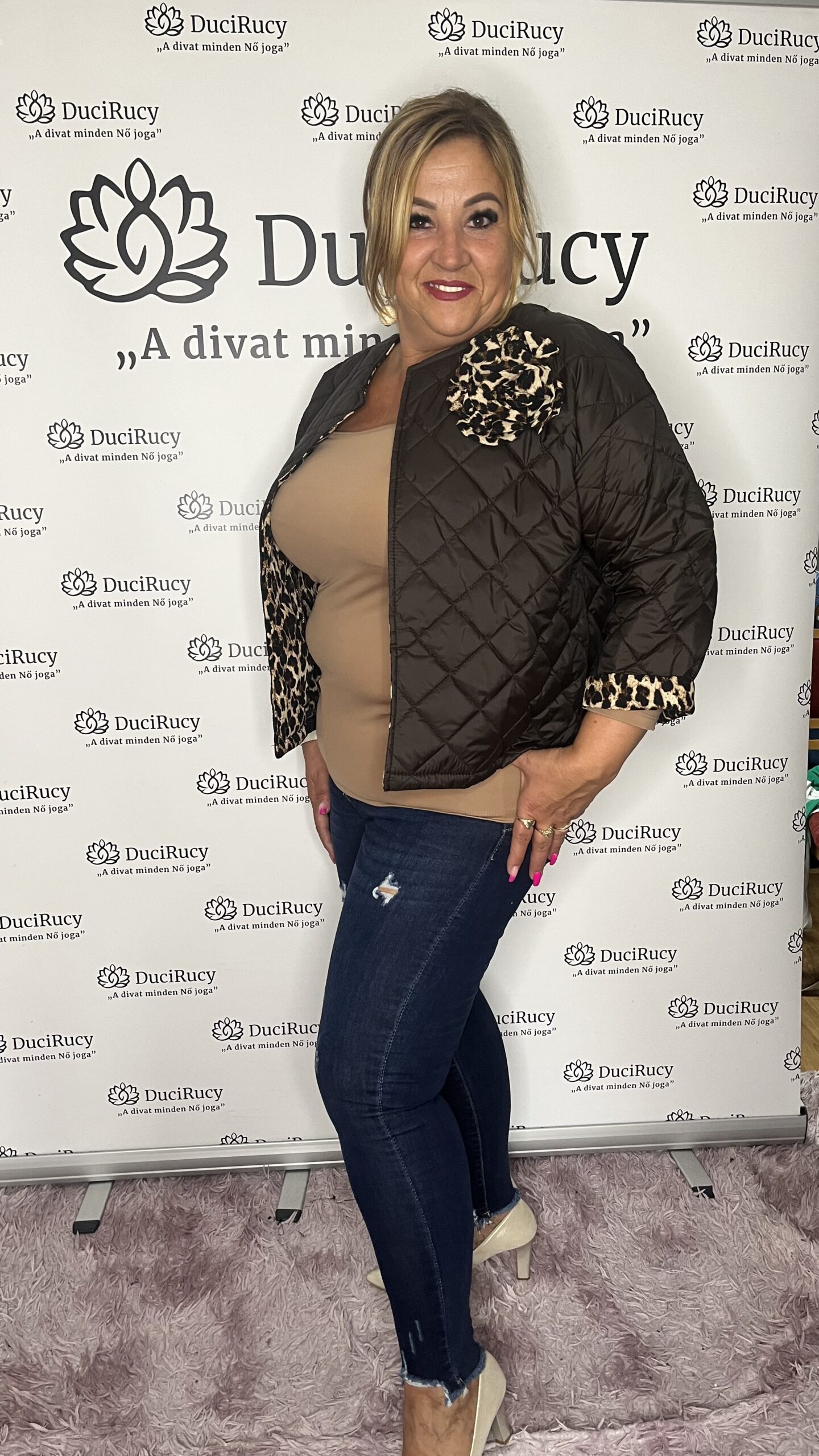 Csodaszép olasz egyméretű, vékony steppelt kabát/bolero párduc díszítéssel, levehető kitűzővel. Nincs rajta gomb, vagy cipzár, tipikus felkapom és megyek dzseki. Fiatalos, extra dögös kabát, amit a párduc díszítés különlegessé tesz! Hűvös reggelek elengedhetetlen kelléke ez a szuper ruhadarab.