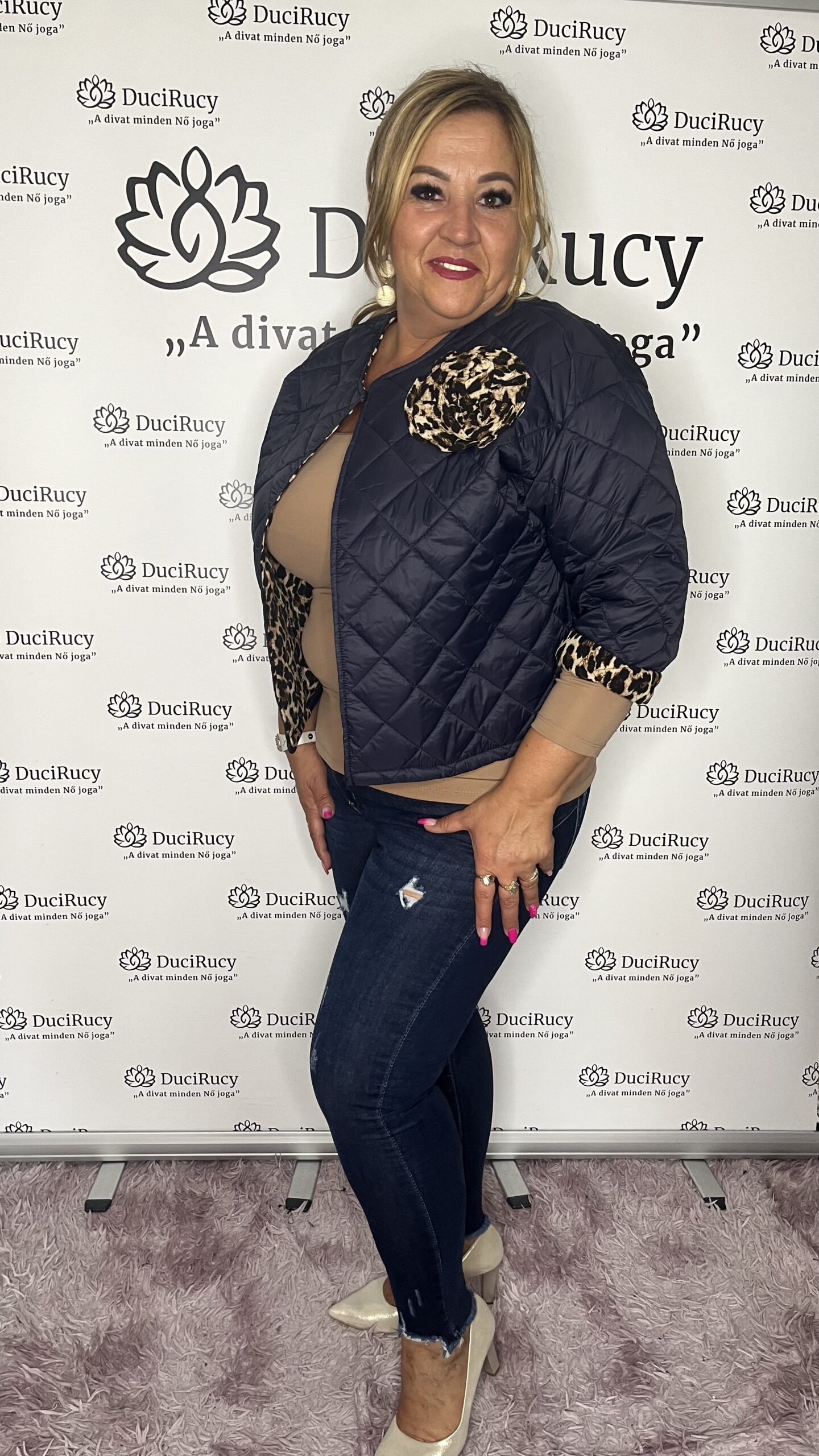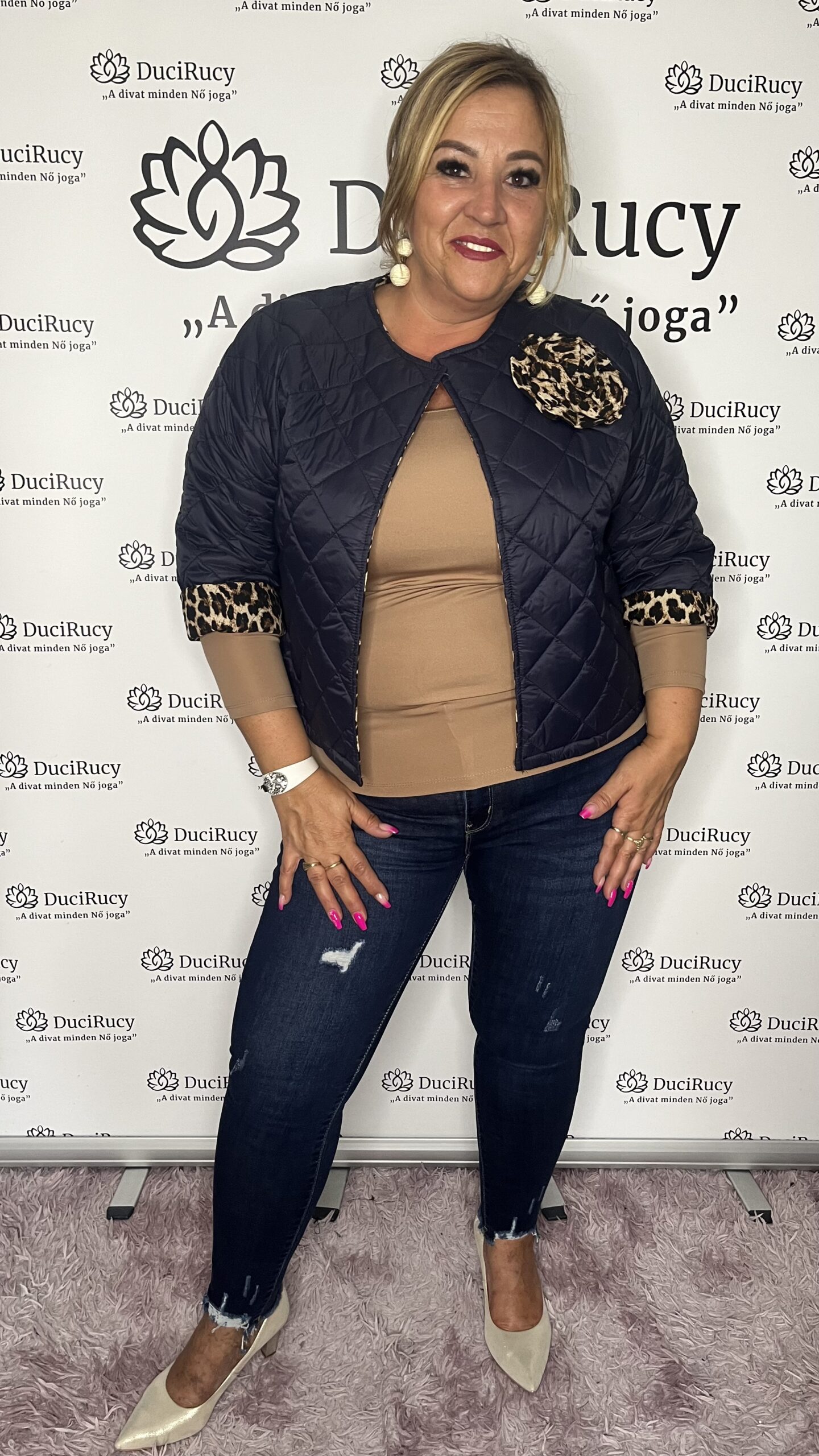 Csodaszép olasz egyméretű, vékony steppelt kabát/bolero párduc díszítéssel, levehető kitűzővel. Nincs rajta gomb, vagy cipzár, tipikus felkapom és megyek dzseki. Fiatalos, extra dögös kabát, amit a párduc díszítés különlegessé tesz! Hűvös reggelek elengedhetetlen kelléke ez a szuper ruhadarab.