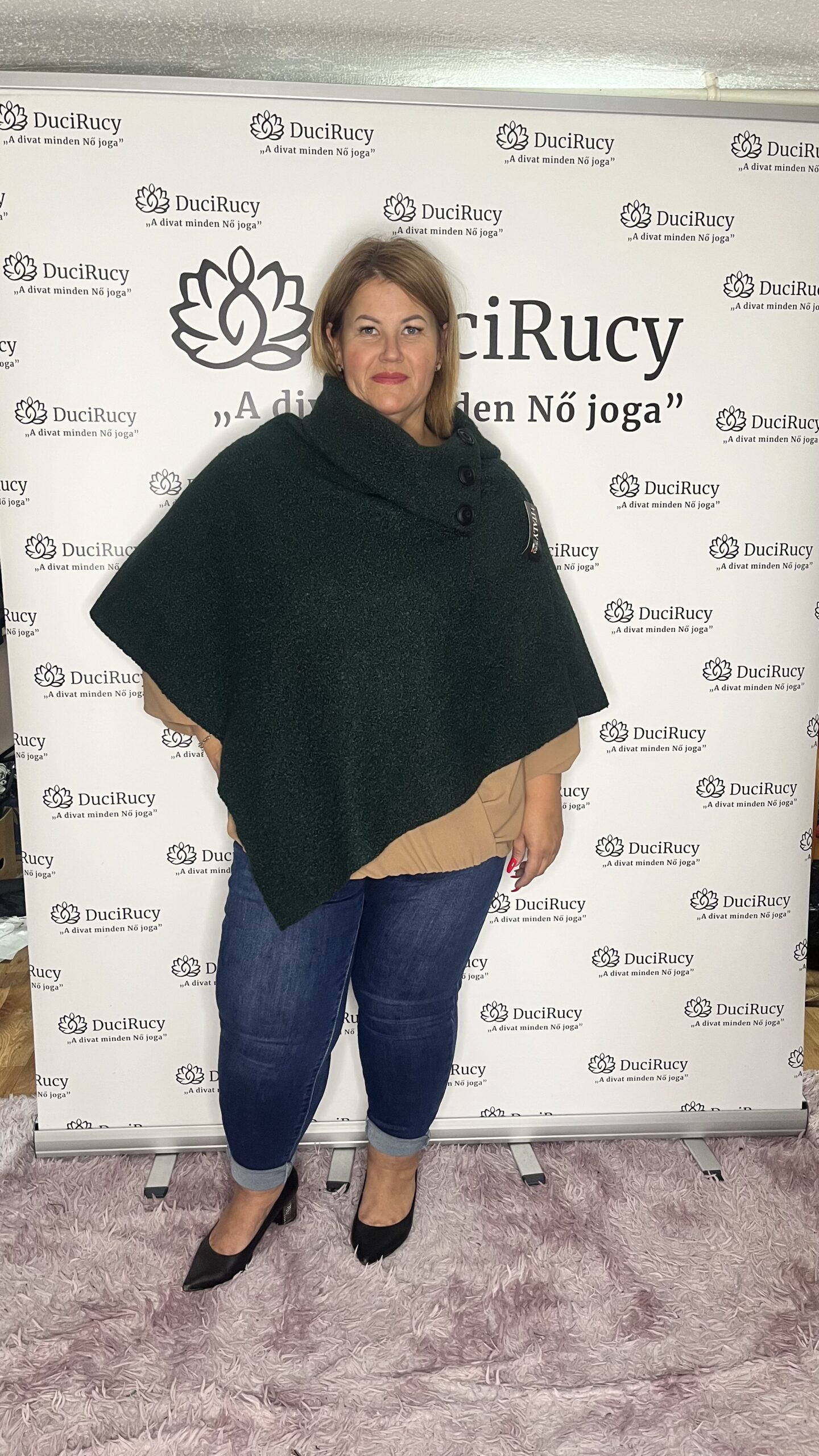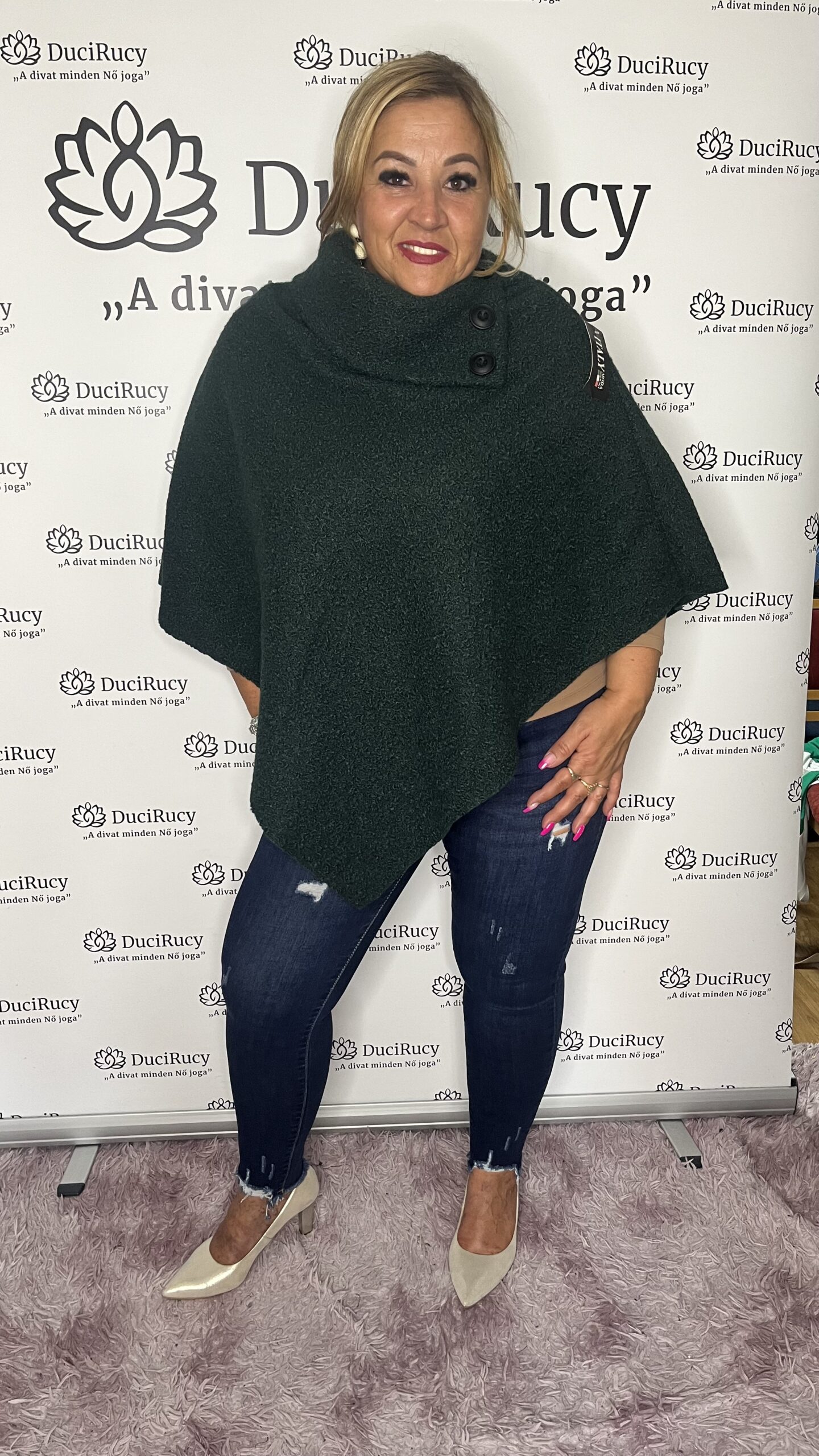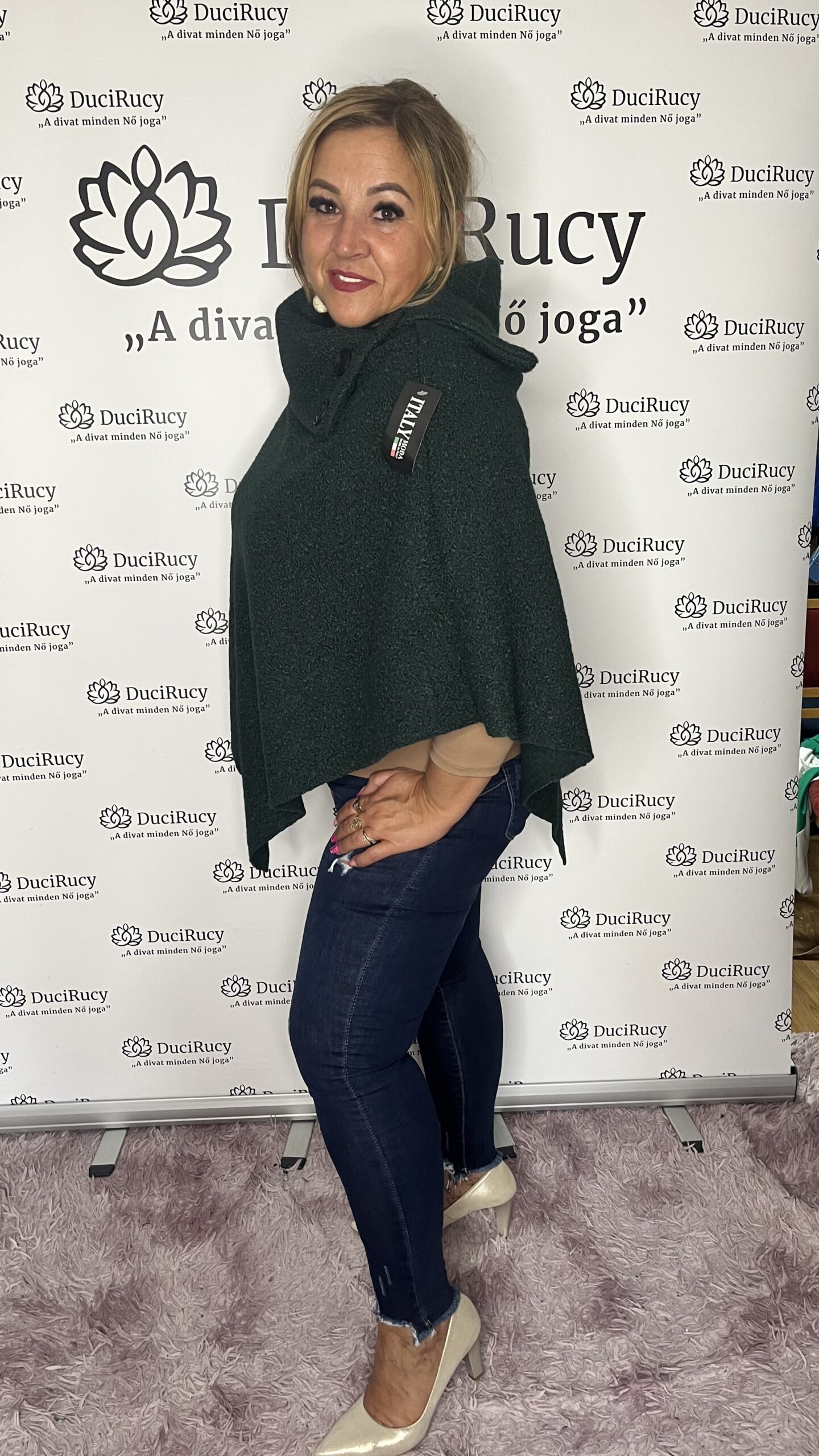 Olasz egyméretű, V szabású, garbós nyakú buklé poncsó. Bármilyen ruhához viselhető. Hűvös reggelek elengedhetetlen kelléke ez a szuper ruhadarab.