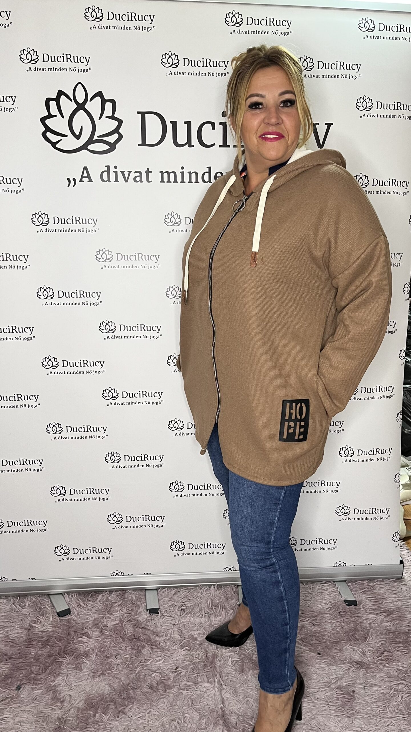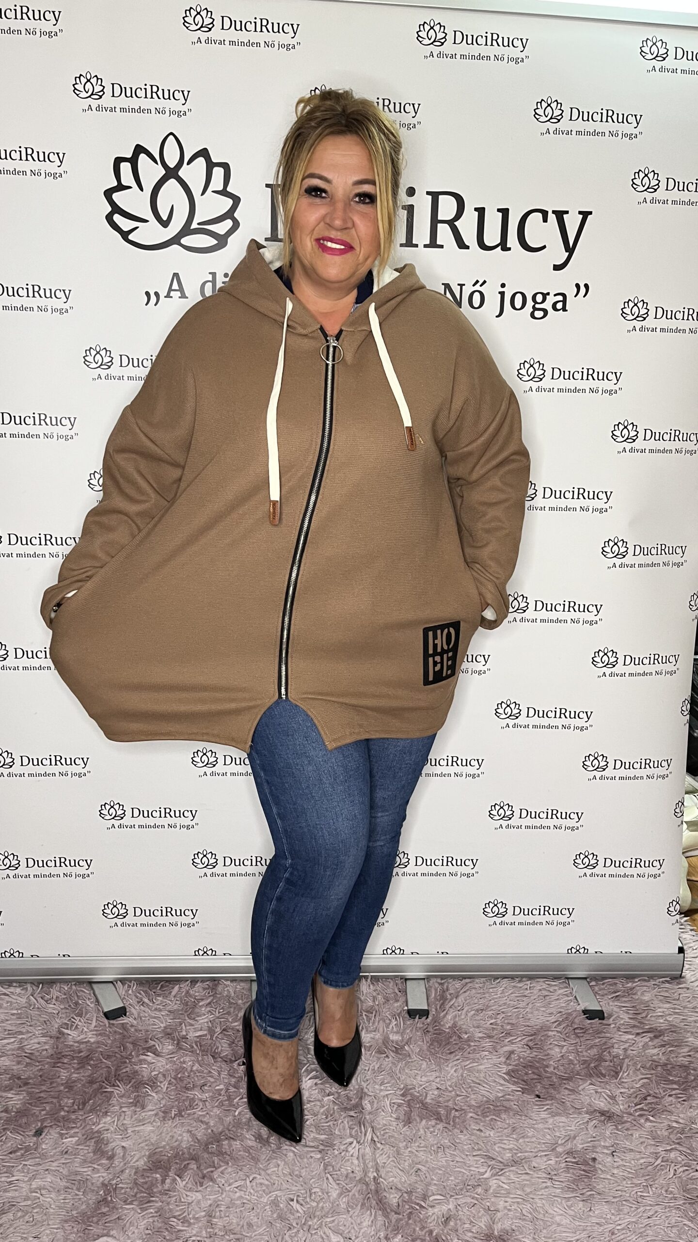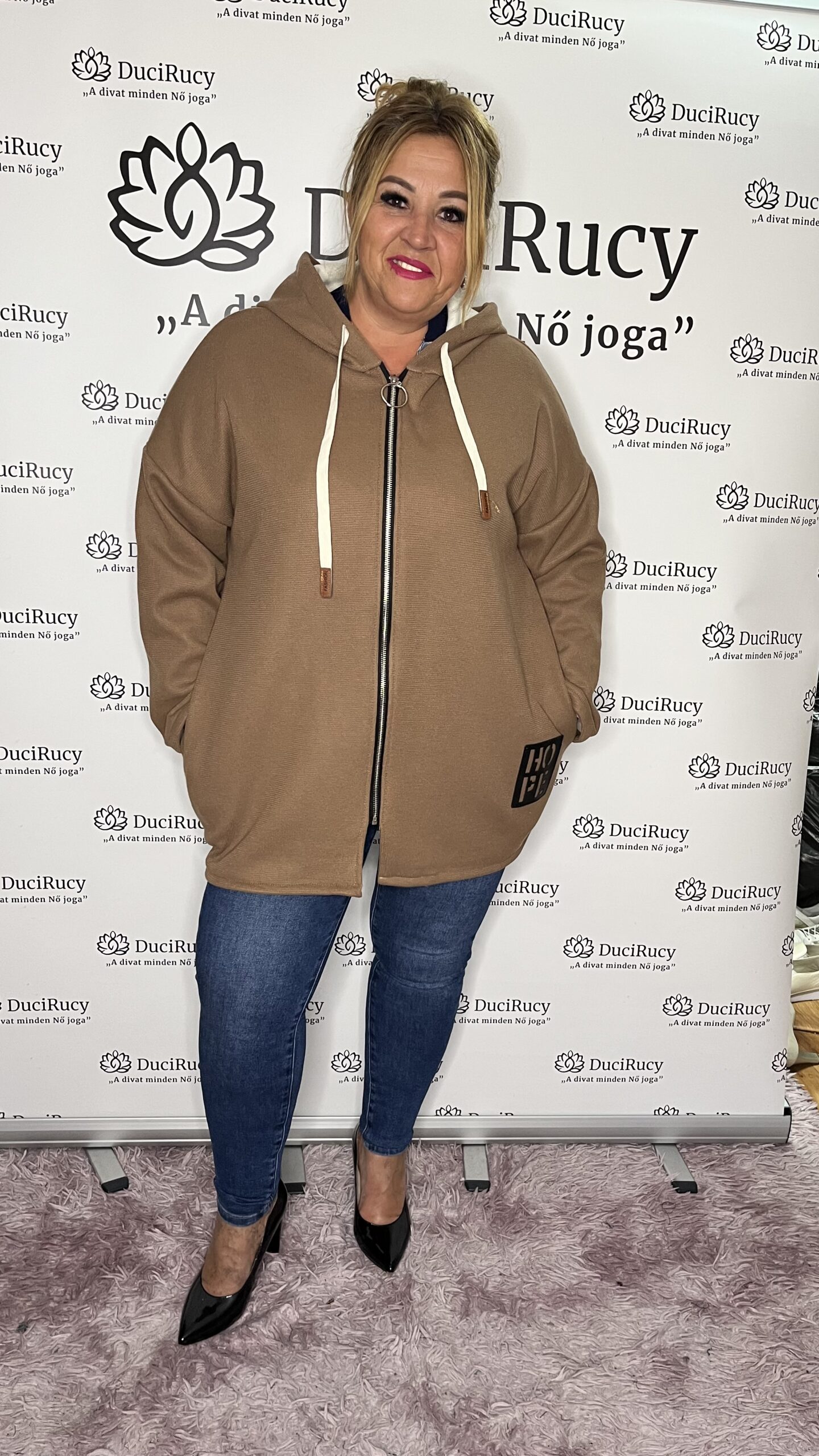 Őszi zipzáros kapucnis kardigán barna színben