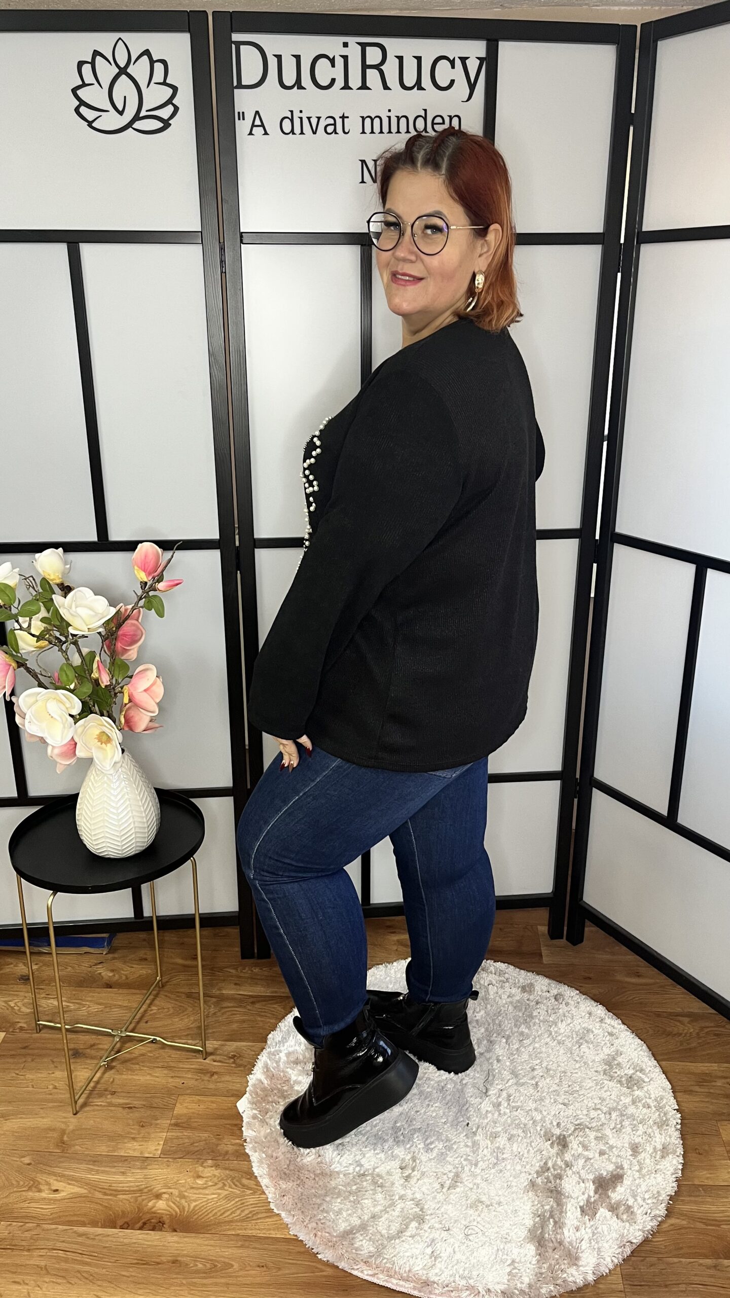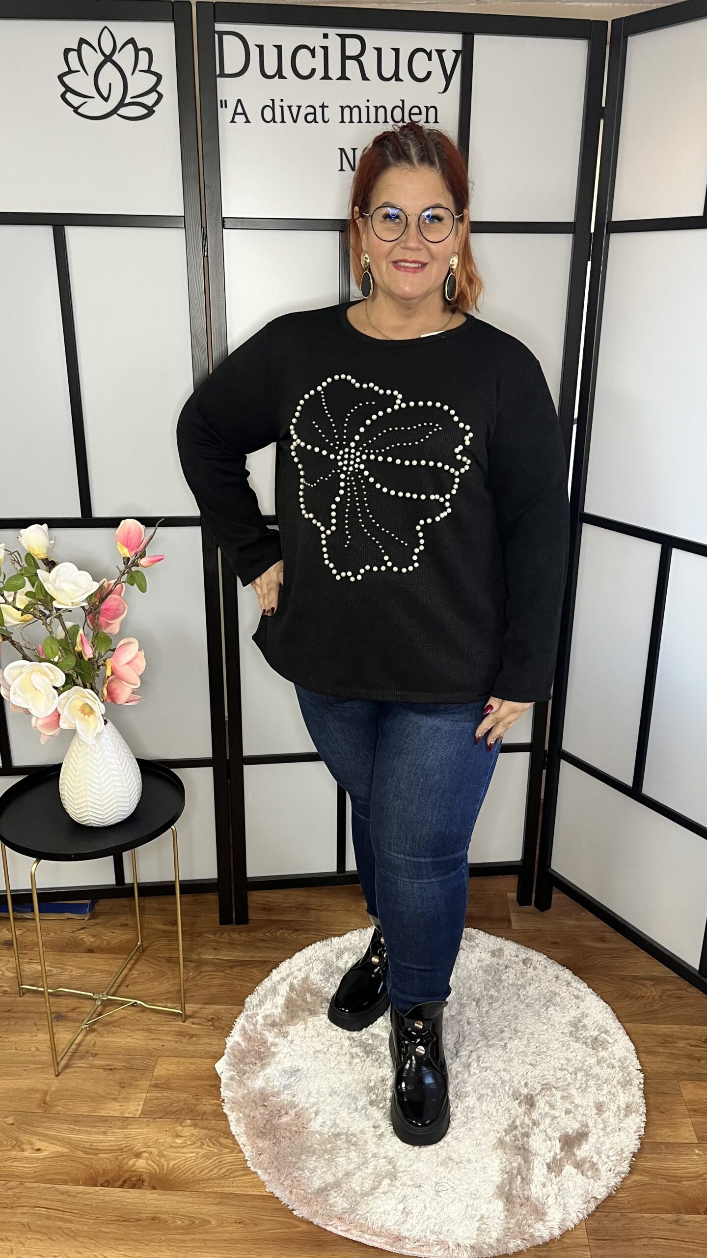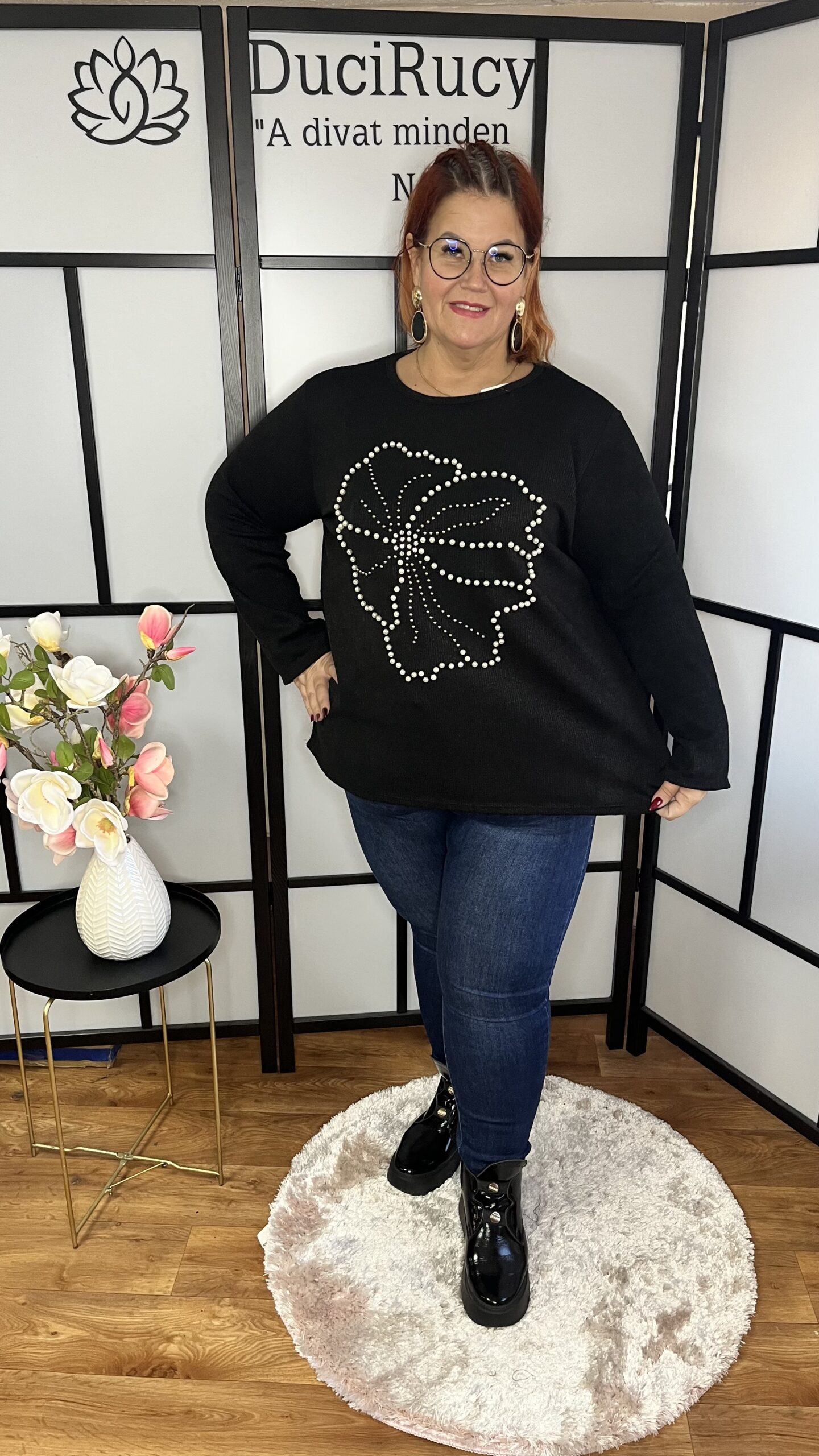 Fantasztikus, olasz pihe-puha anyagból készült kötött felső. A felső elejét egy kövekkel kirakott virág díszíti. A felső anyaga rugalmas.