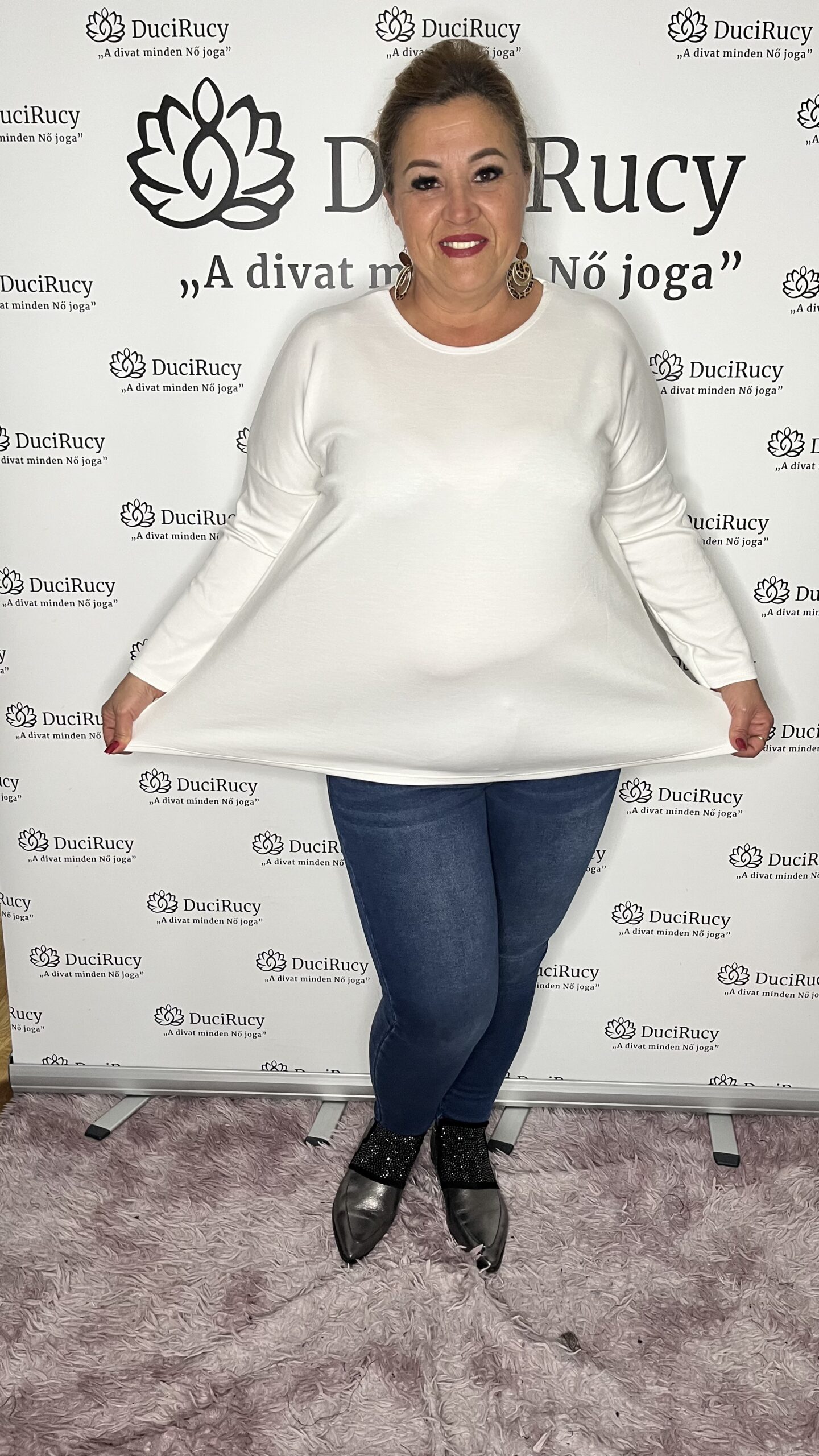 Pihe-puha anyagból készült, elején rövidebb, kerekített fazonú felső. Nagyon jól kombinálható darab.