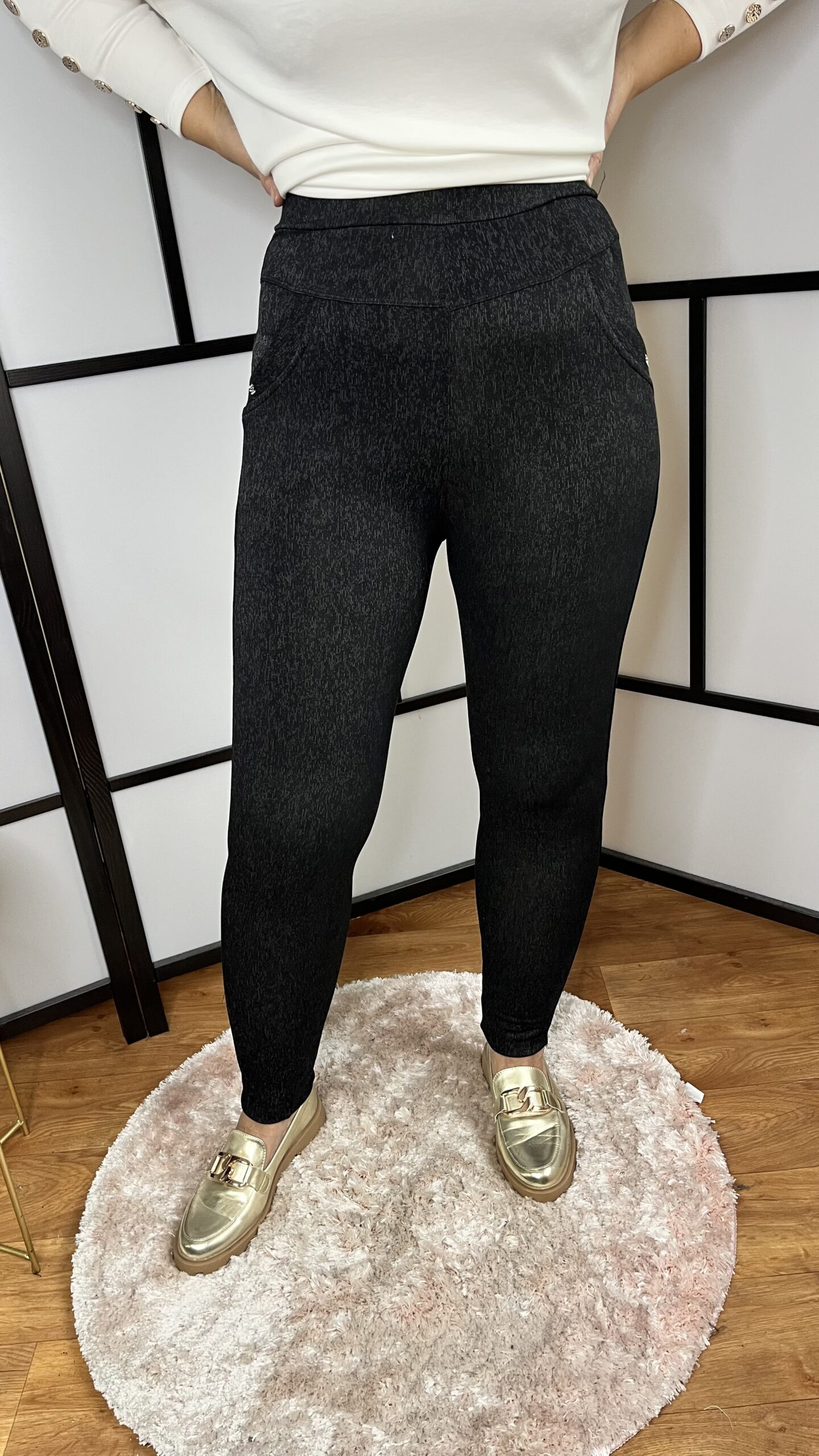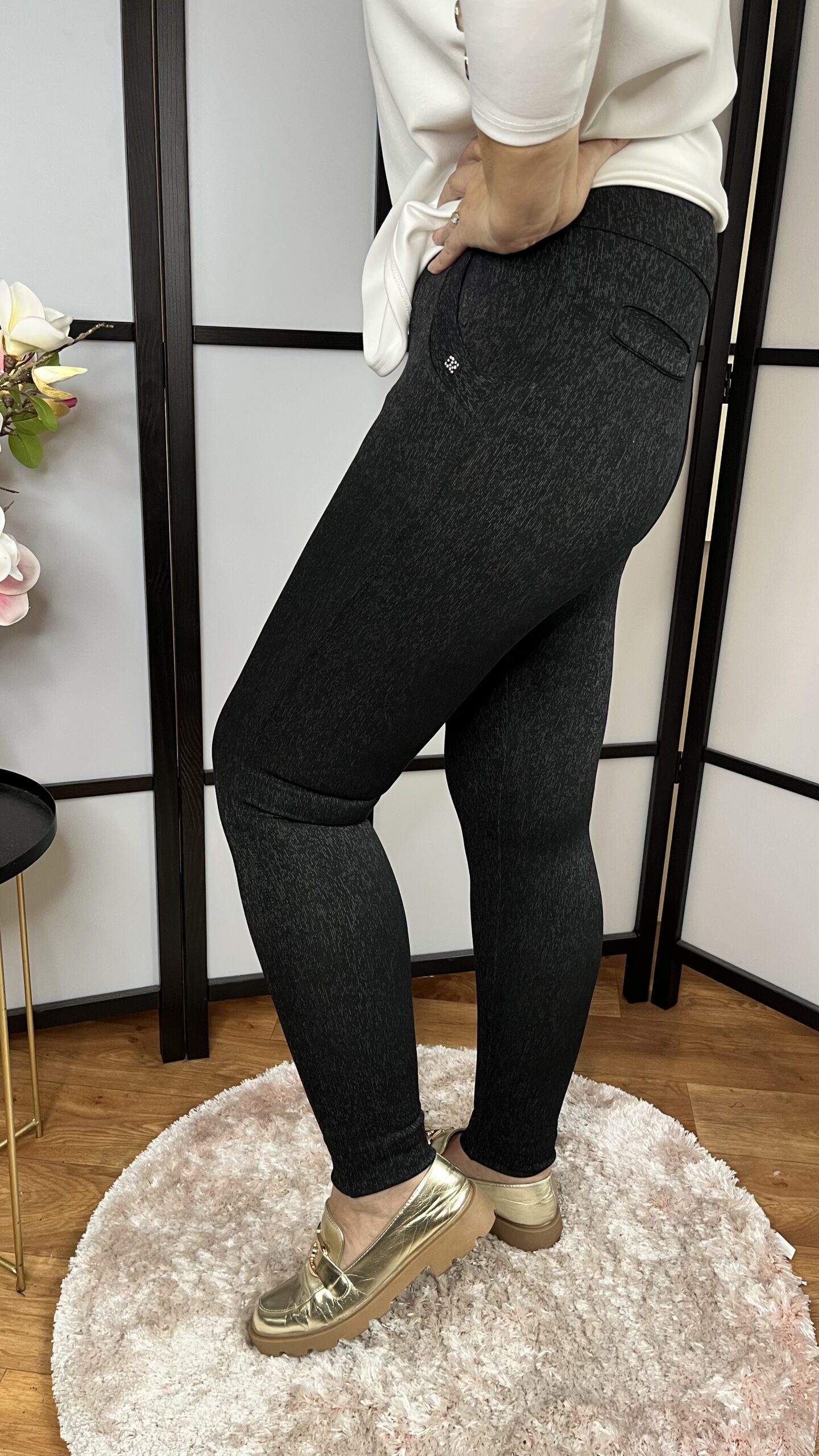 Pihe-puha anyagú, magas derekú, melírozott mintázatú csinos őszi/téli nadrág