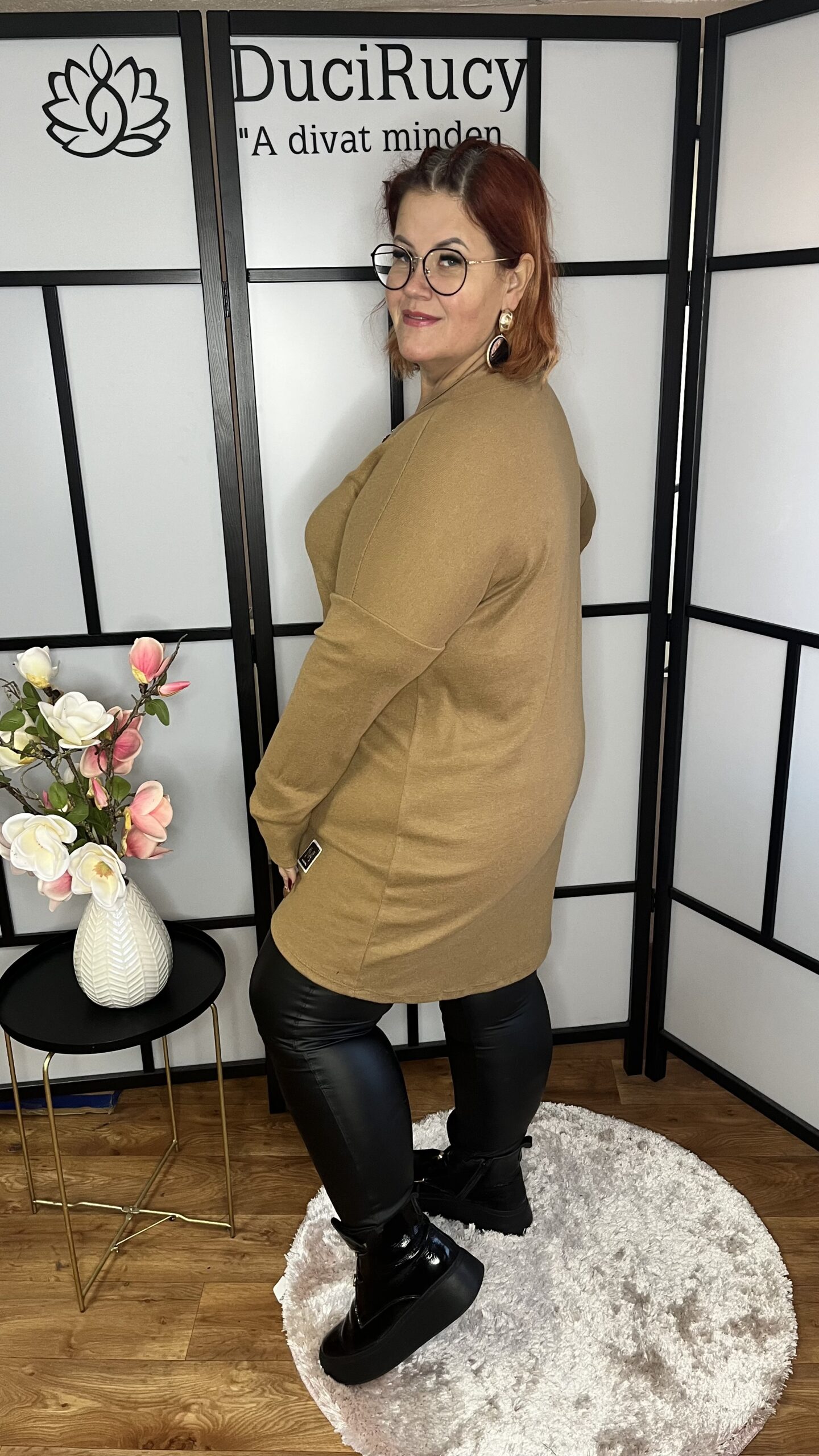 Pihe-puha akril anyagból készült elöl rövidebb fazonú tunika. A tunika anyaga rugalmas. Szuper választás akár egy bőrnadrághoz, farmerhoz, bőr leggingshez is.