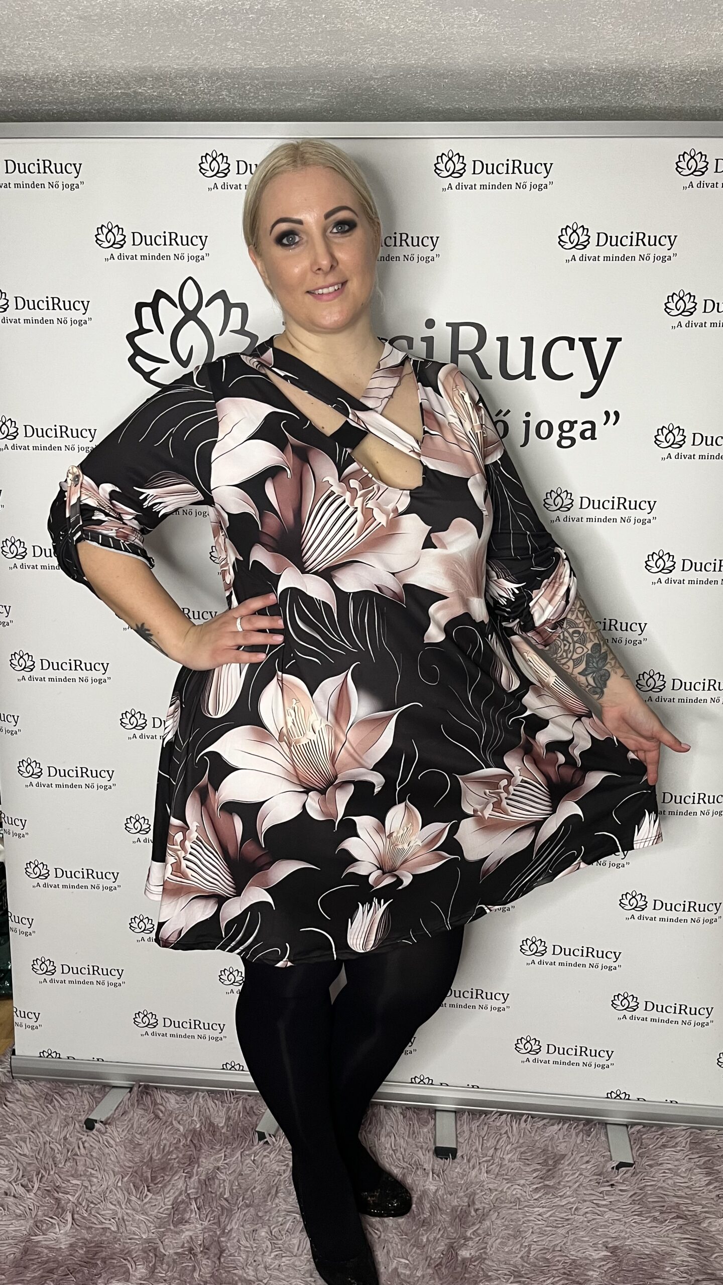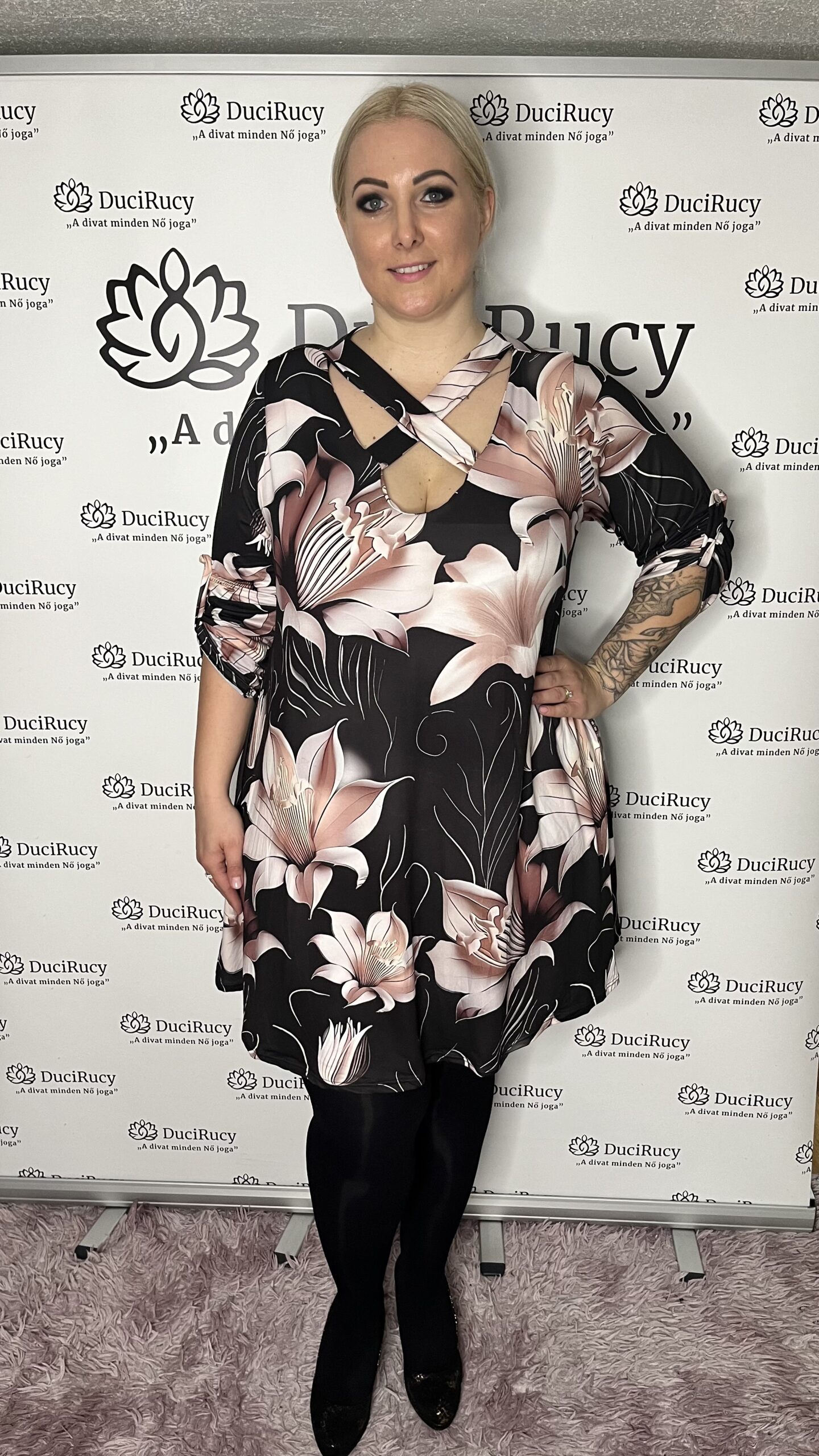 Olasz pihe-puha pamut anyagból készült, nyakrésznél keresztpántos, A vonalú szuper kis ruha. A ruha ujja felgombolható. Bármilyen alkalomra viselhető.