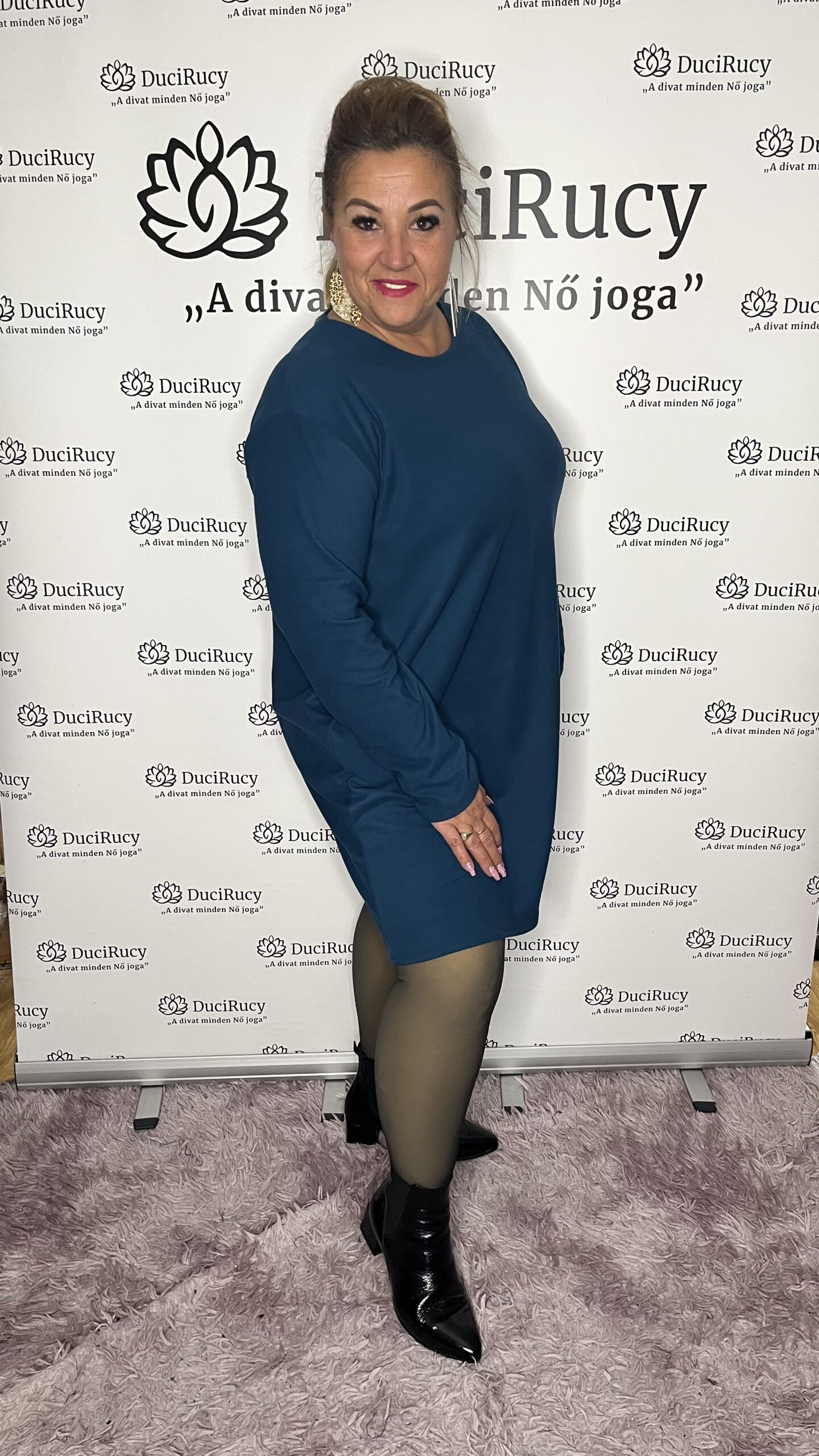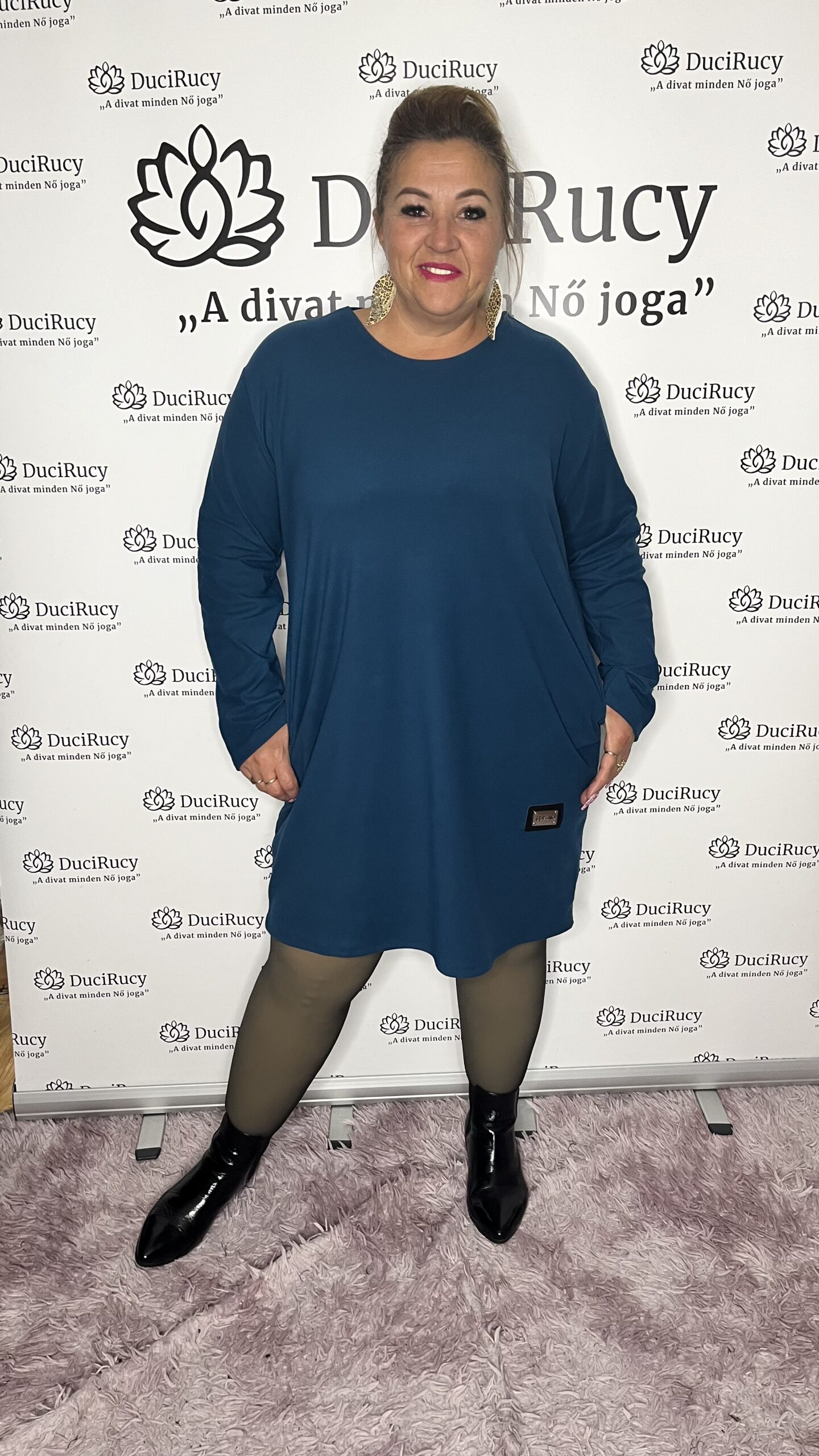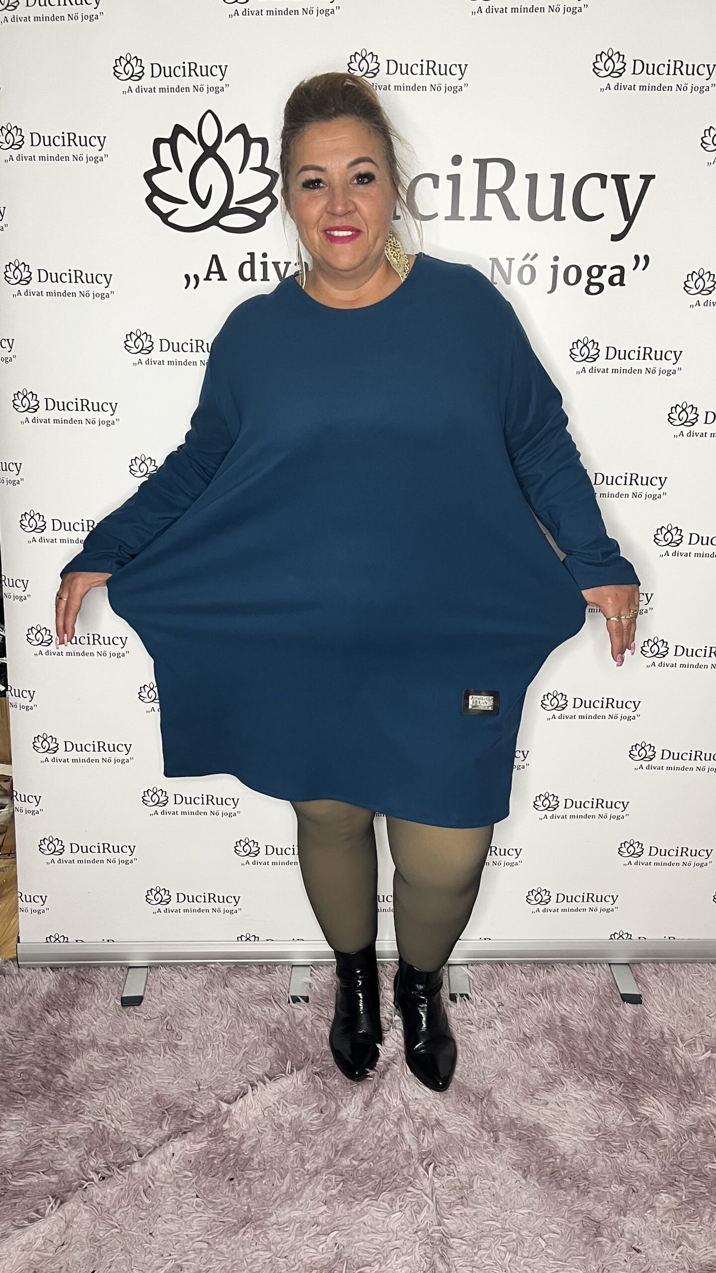Extra méretű, A vonalú, zsebes igazi kis pihe-puha plüss ruha. A ruha anyaga rugalmas.