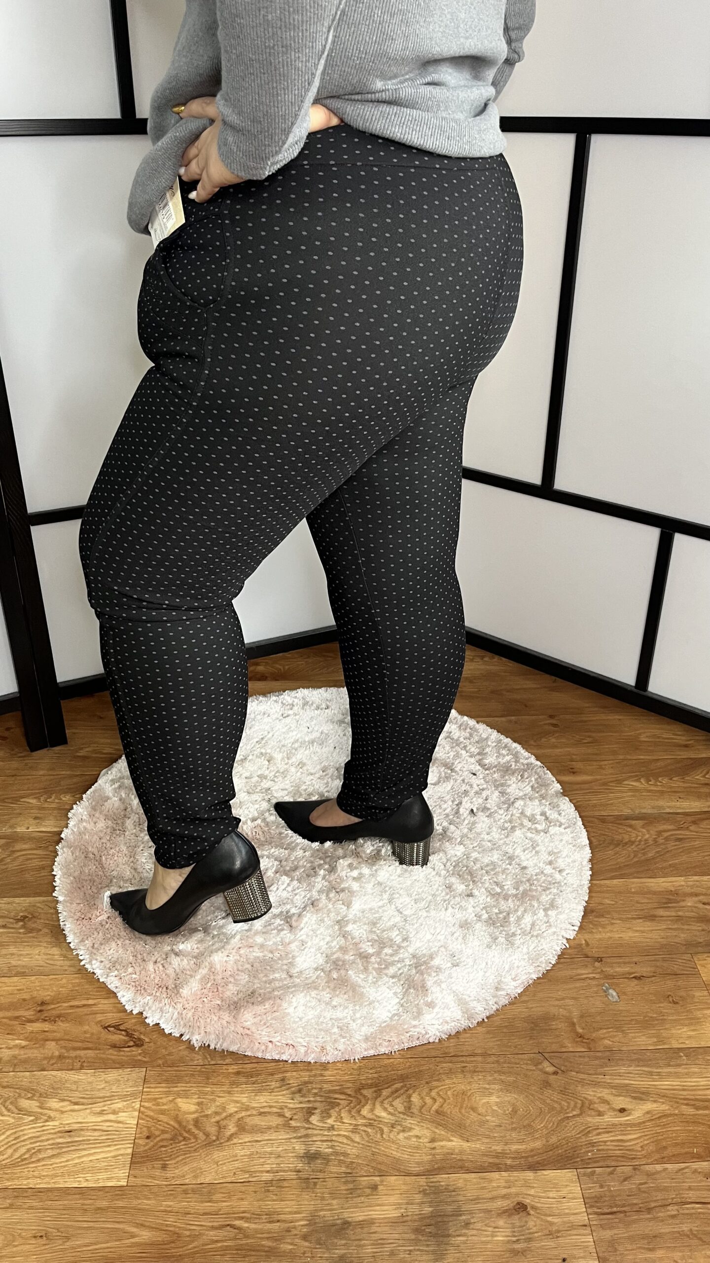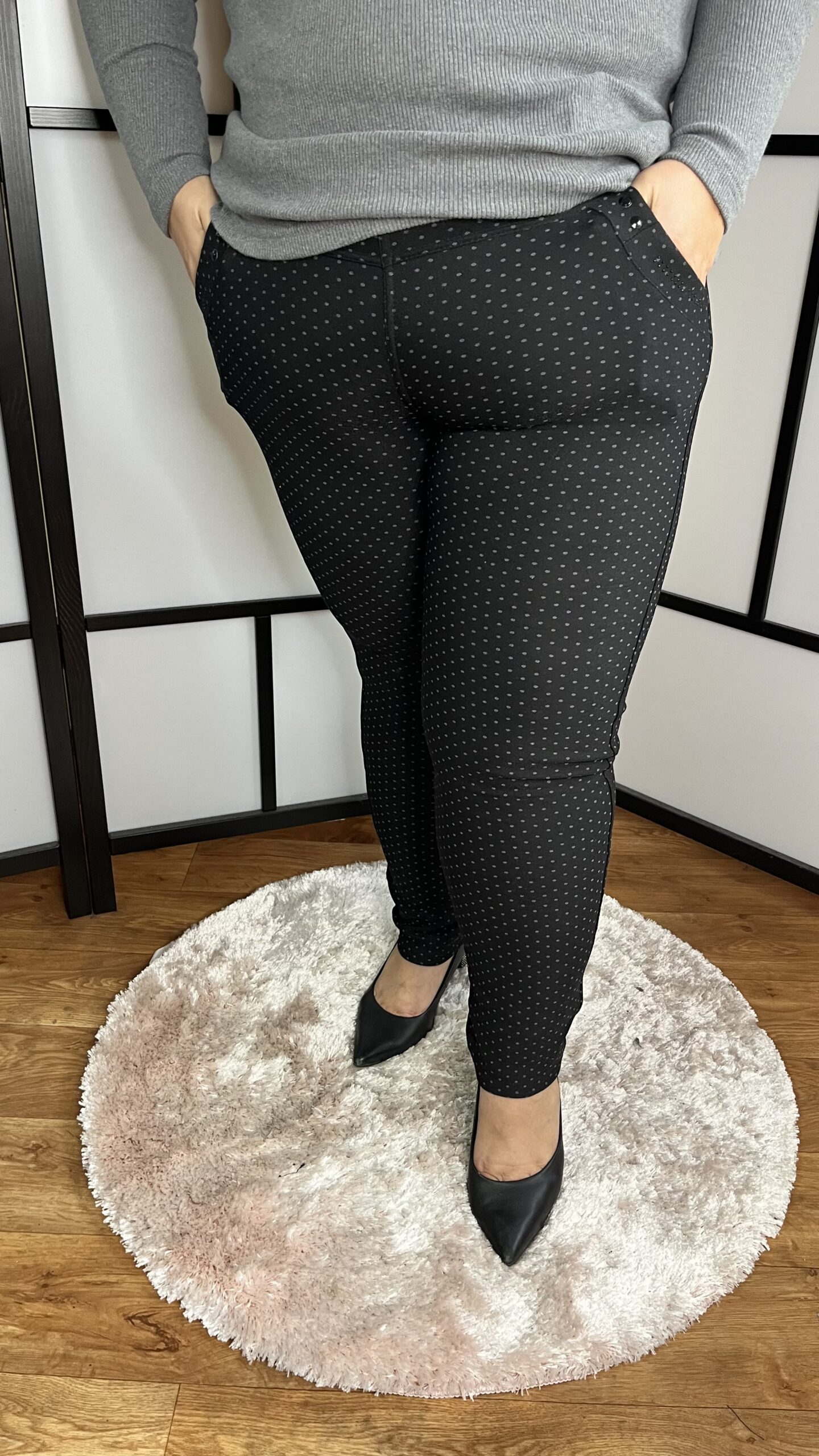 Polár belsejű vastagabb, gumis, jó magas derekú pöttyös nadrág. Nagyon kényelmes viselet egész napra, tökéletes a hétköznapokon, de akár egy alkalomra is felvehető.