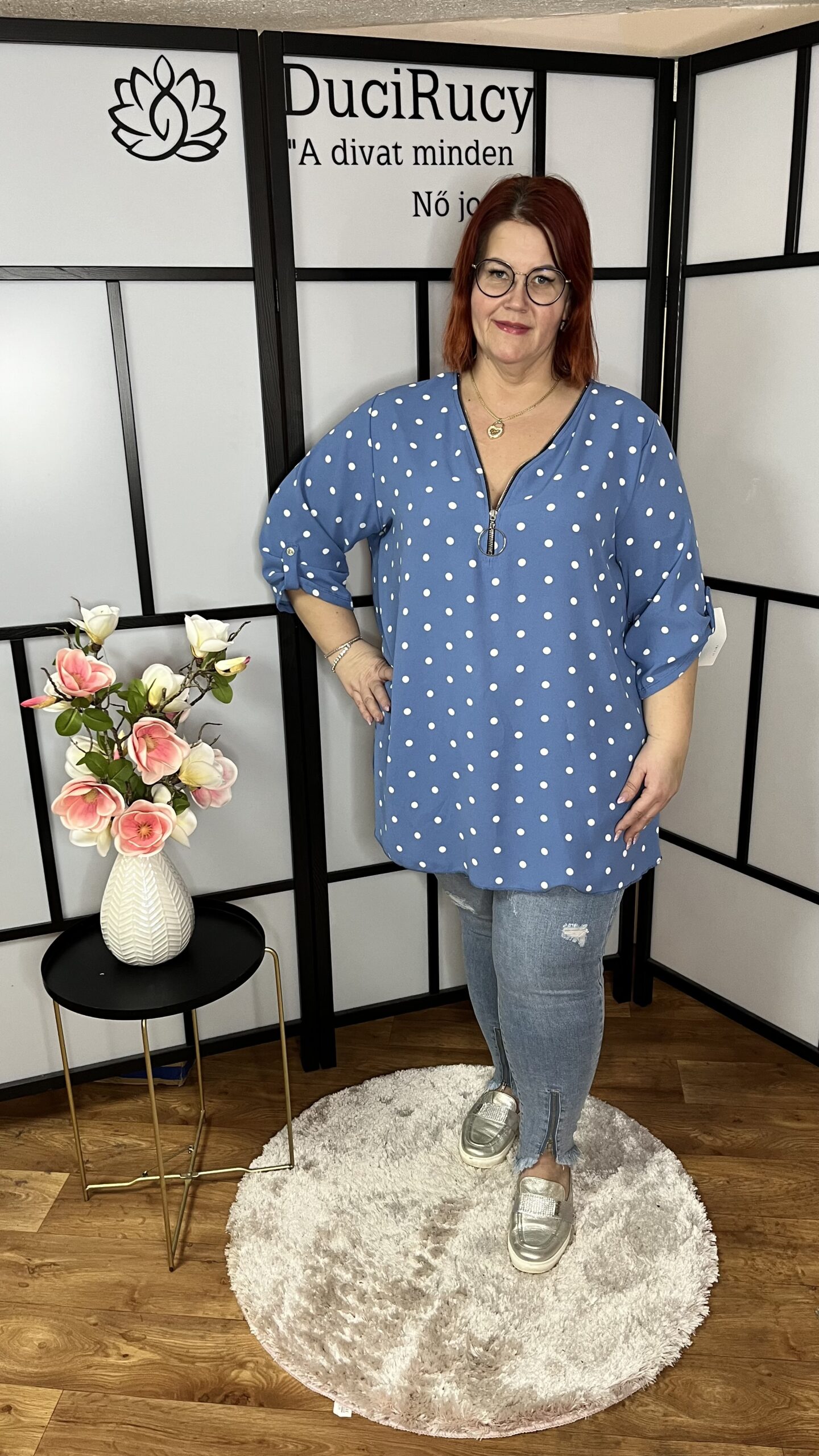 Szuper fazonú, gyönyörű és divatos, zipzárral ellátott, kerekített fazonú felső. Ez a felső egy álom. A felső anyaga nem rugalmas. A zipzárral tudod szabályozni a dekoltázsod. A felső ujja felgombolható.