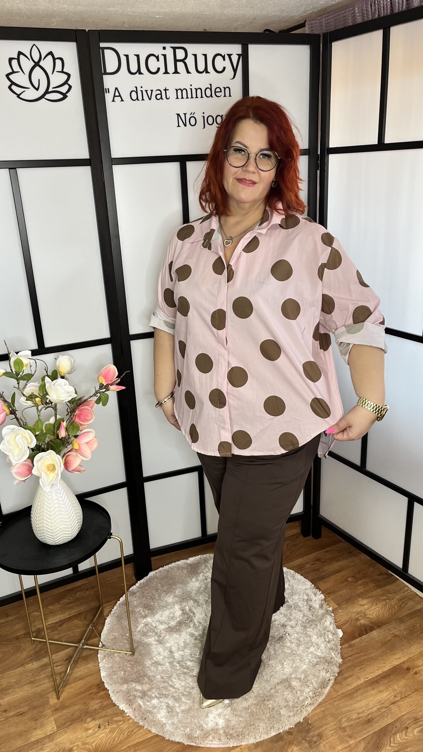 Púder-csokibarna nagy pöttyös, kerekített fazonú vászon ing