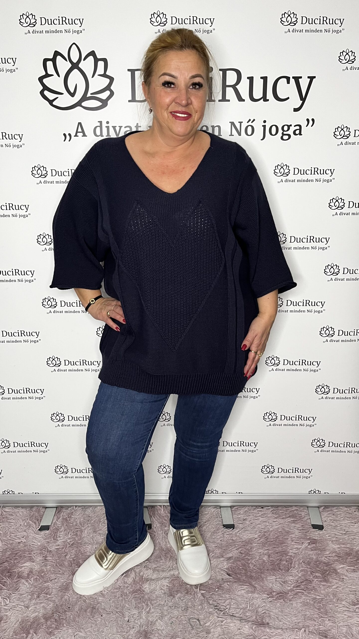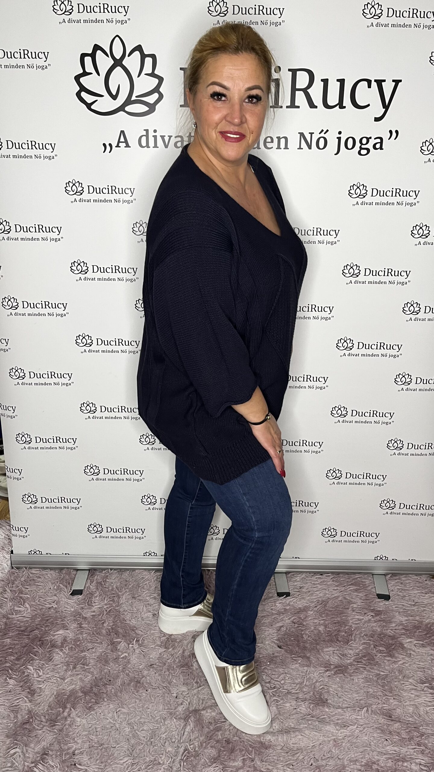 Olasz, 3/4-es denevér ujjú (T-ujjú), V nyakú egyenes fazonú, kötött pulóver Igazán jól kombinálható darab, akár egy farmerrel, akár egy bőrnadrággal szuperül mutat.