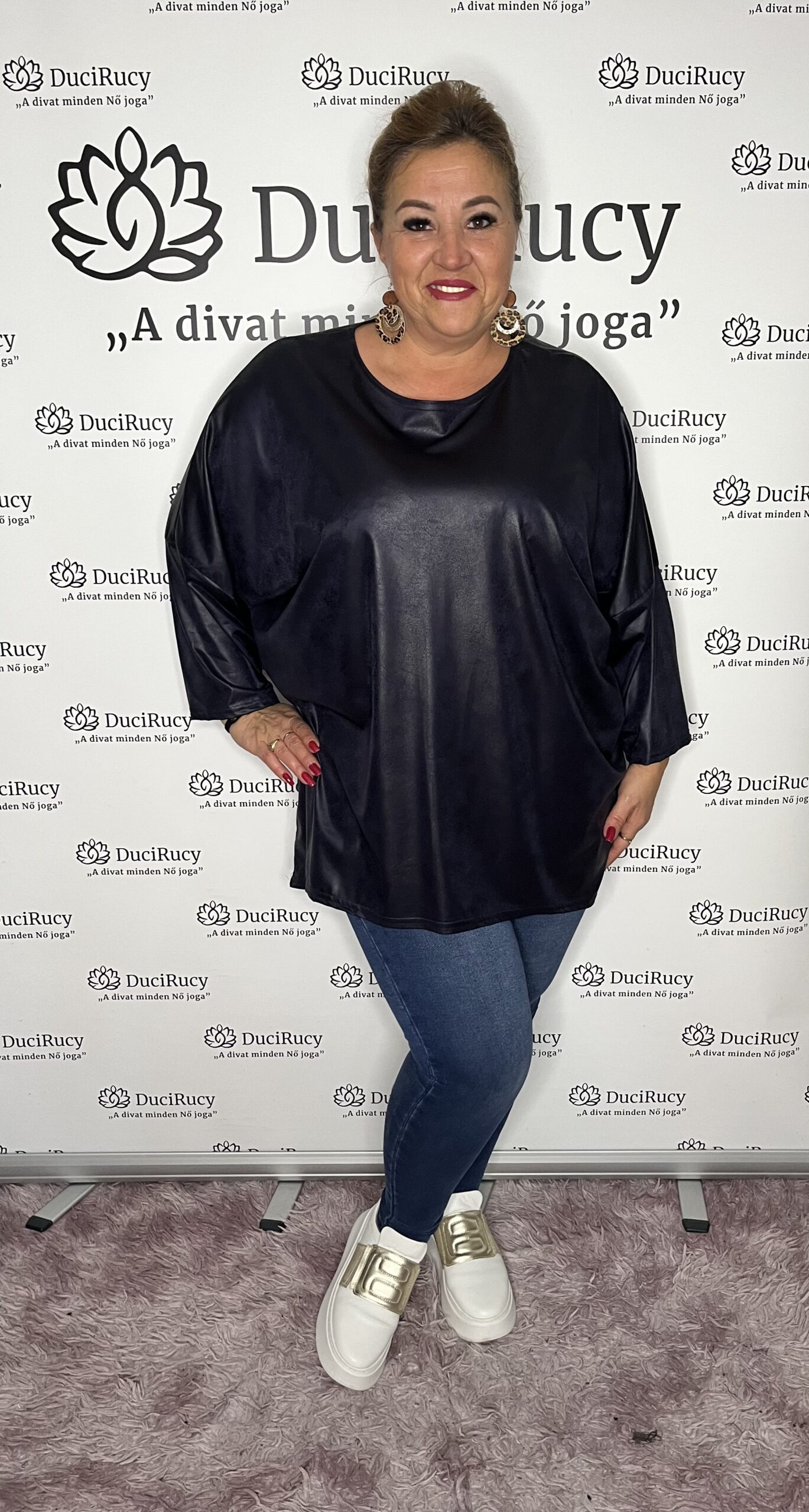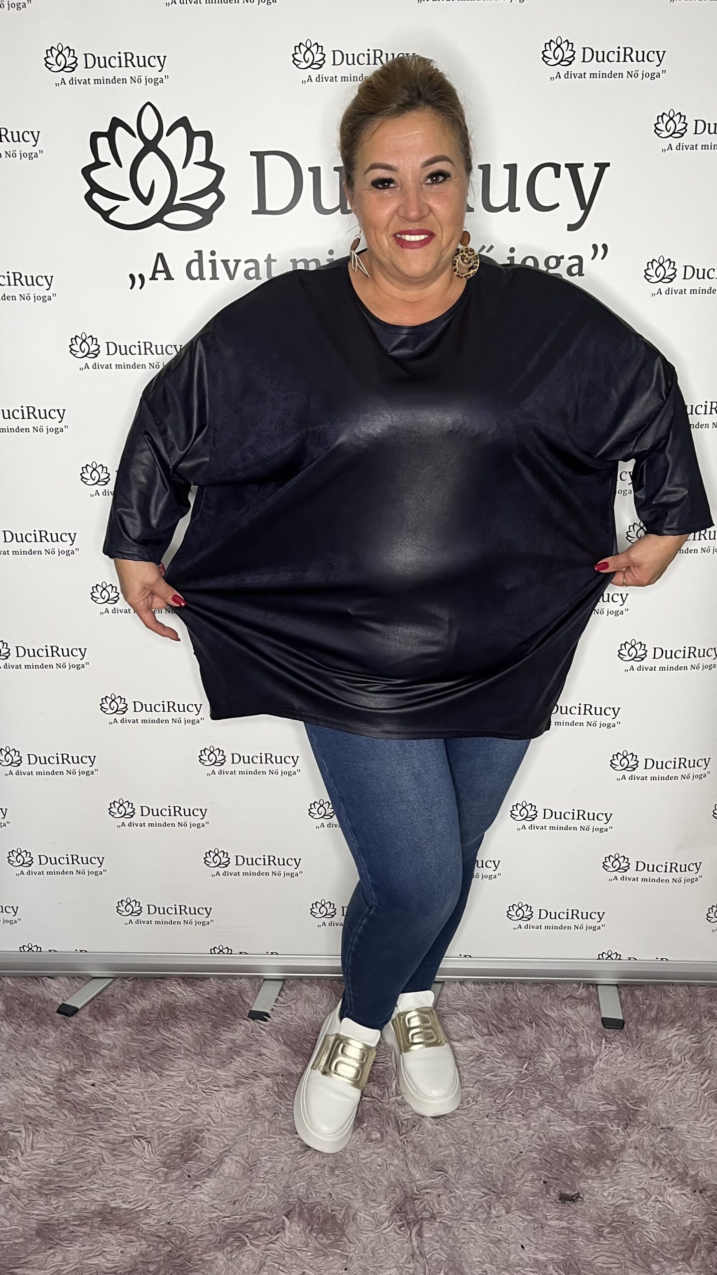 Extra méretű, bőrhatású anyagból készült, bubble fazonú tunika. Igazán dögös darab, bármilyen alkalomra viselhető. A tunika elöl pár centiméterrel rövidebb fazonú, mint hátul.