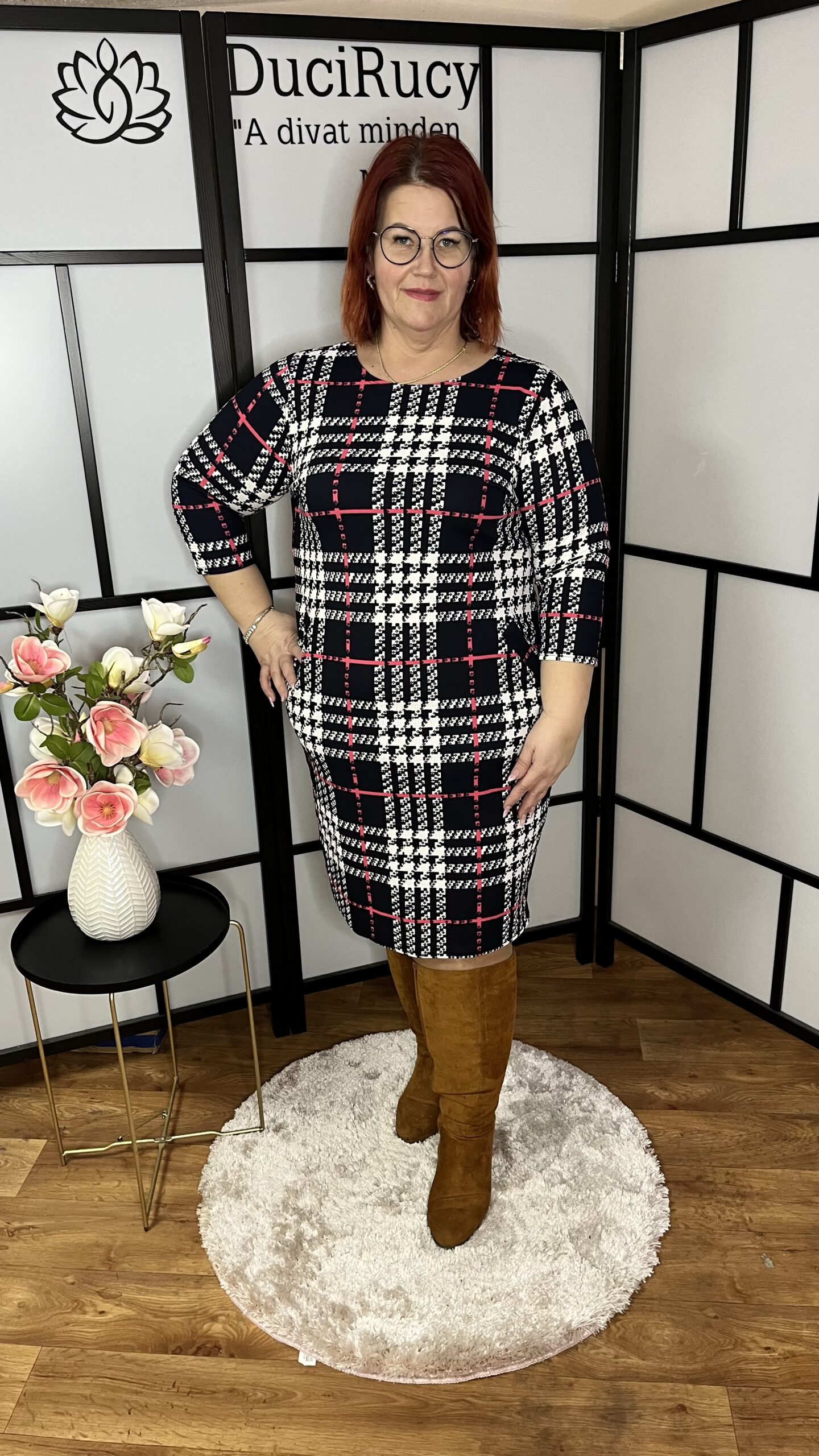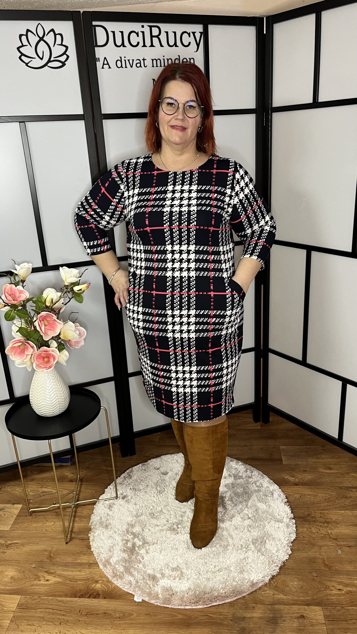 Lengyel karcsúsító betétvarrással készült, zsebes klasszikus fazonú ceruzaruha. Szuper kis viselet, anyaga rugalmas.