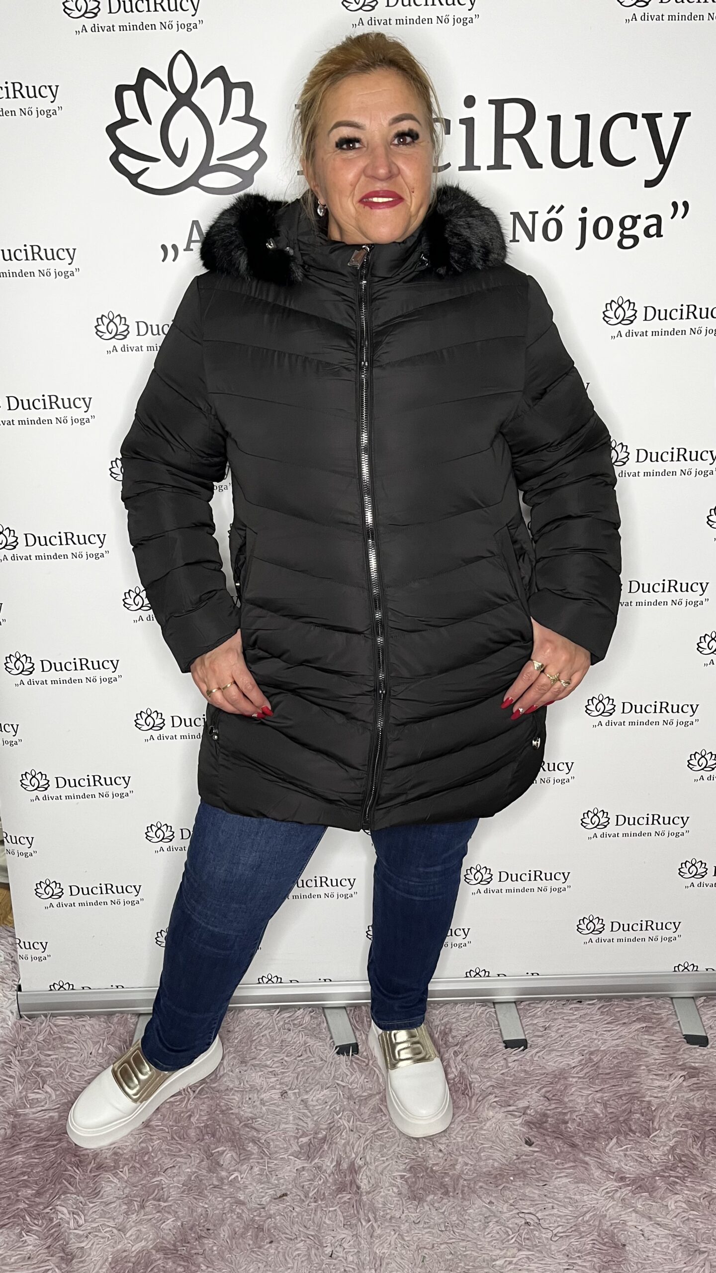 Steppelt fekete színű nagyon meleg téli kabát