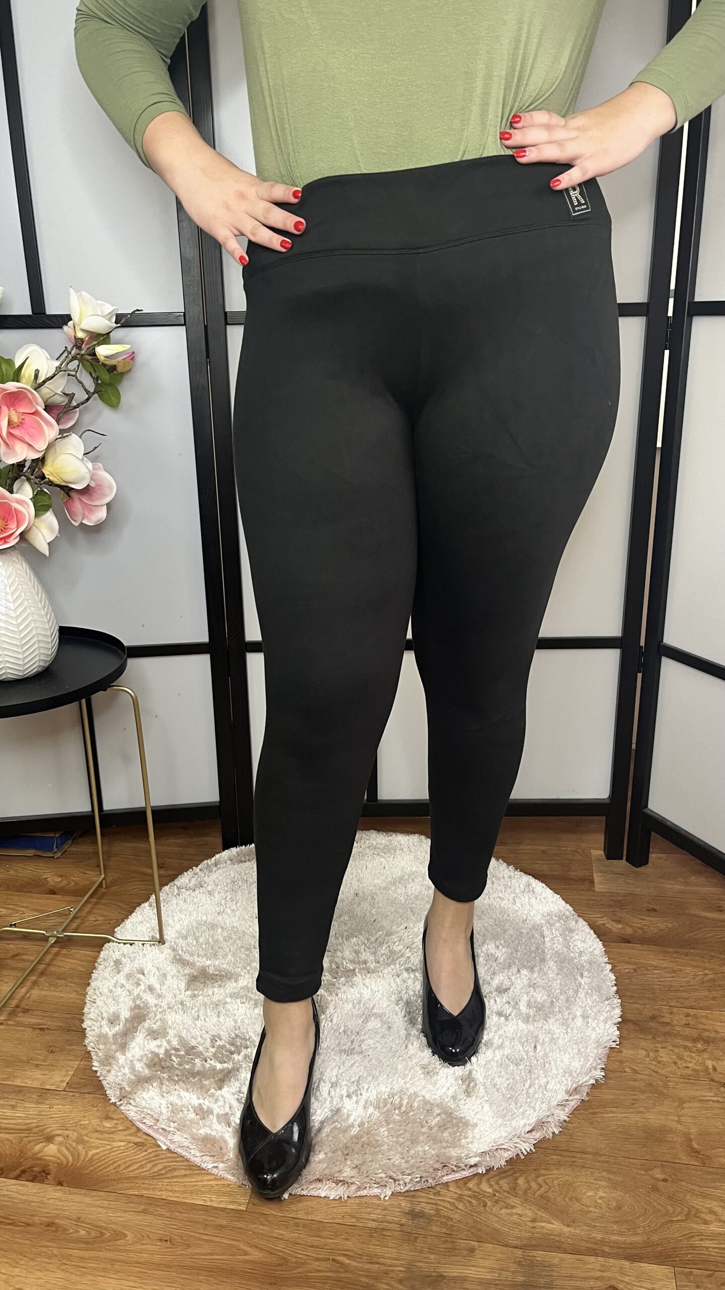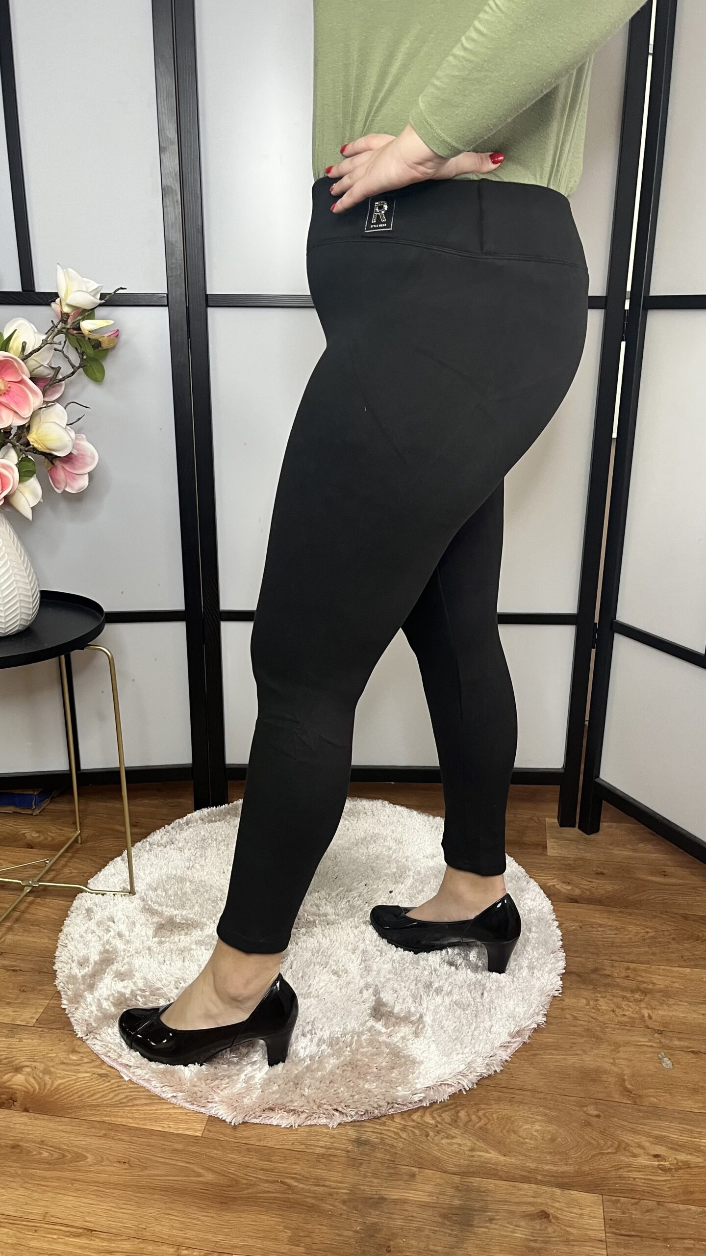 Szuper rugalmas anyagból készült, szélesebb gumis derekú, vastagabb poláros anyagú leggings. A derék részén apró kövekkel R feliratú díszítés található. Szuper méretezés, extra kényelem.
