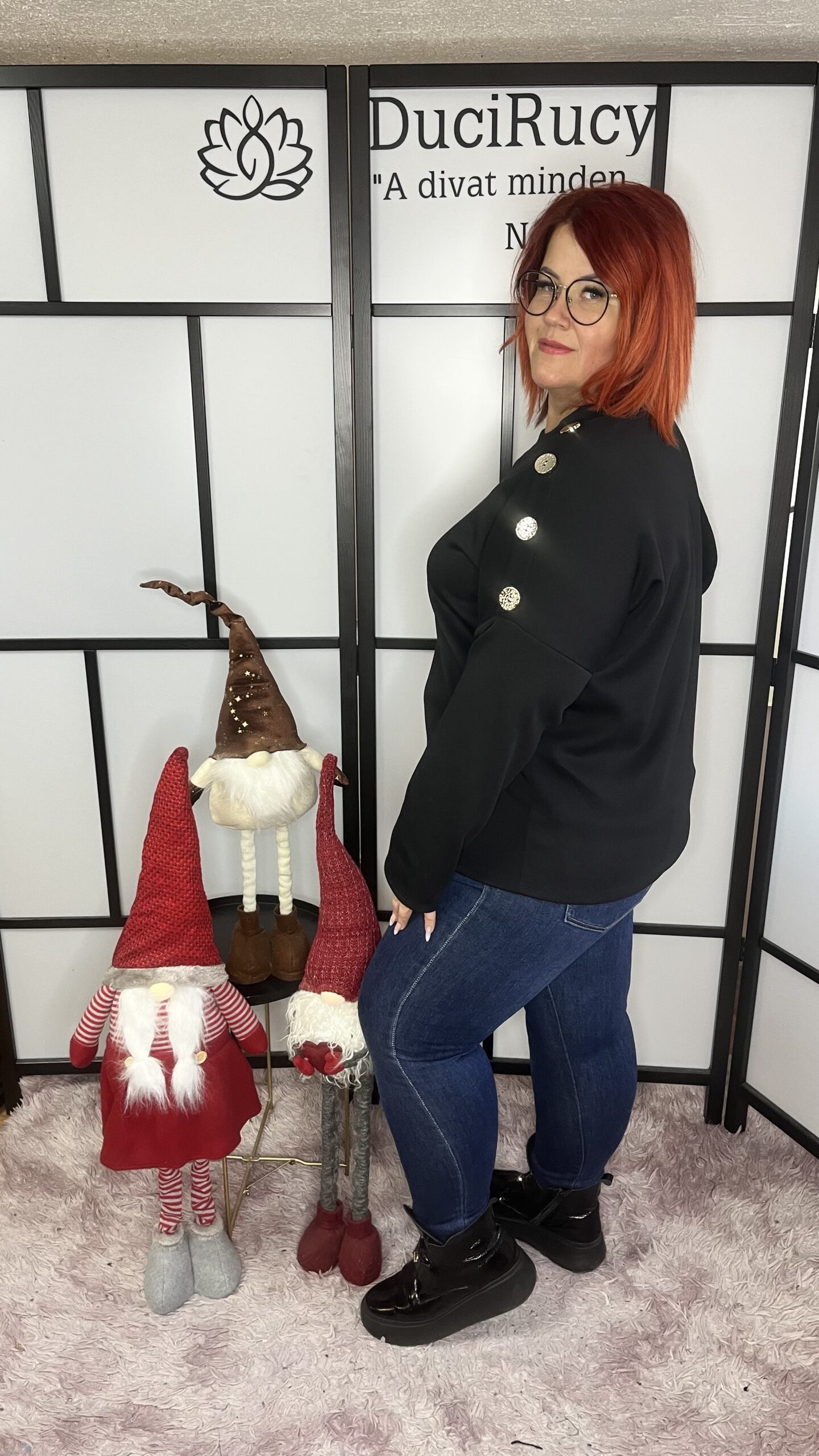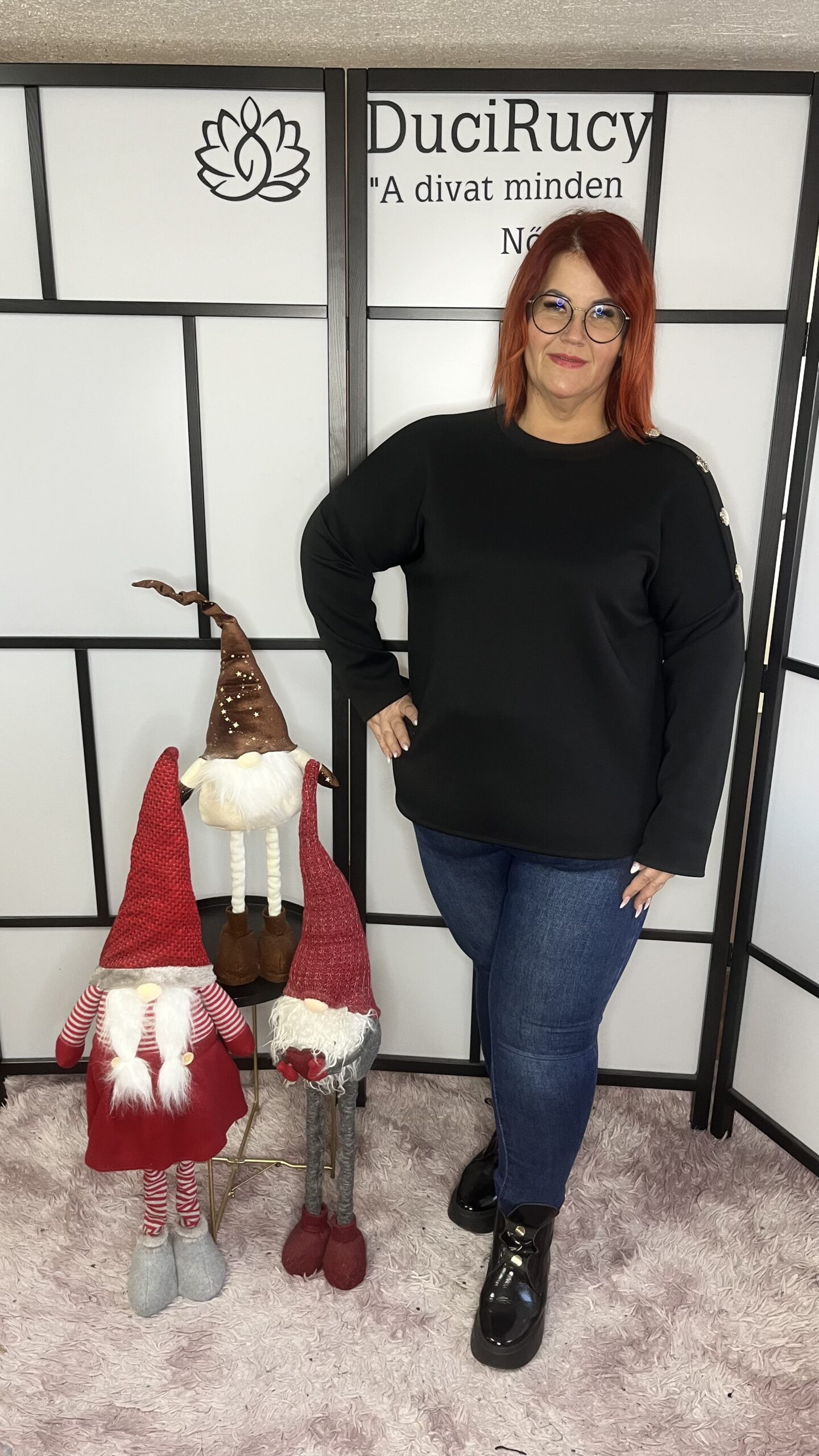 Szuper pamut anyagból készült, egyenes fazonú felső, vállán ezüst gombokkal díszítve. A felső anyaga rugalmas. Kiváló választás akár egy farmerhoz, puntó nadrághoz, pamut nadrághoz.