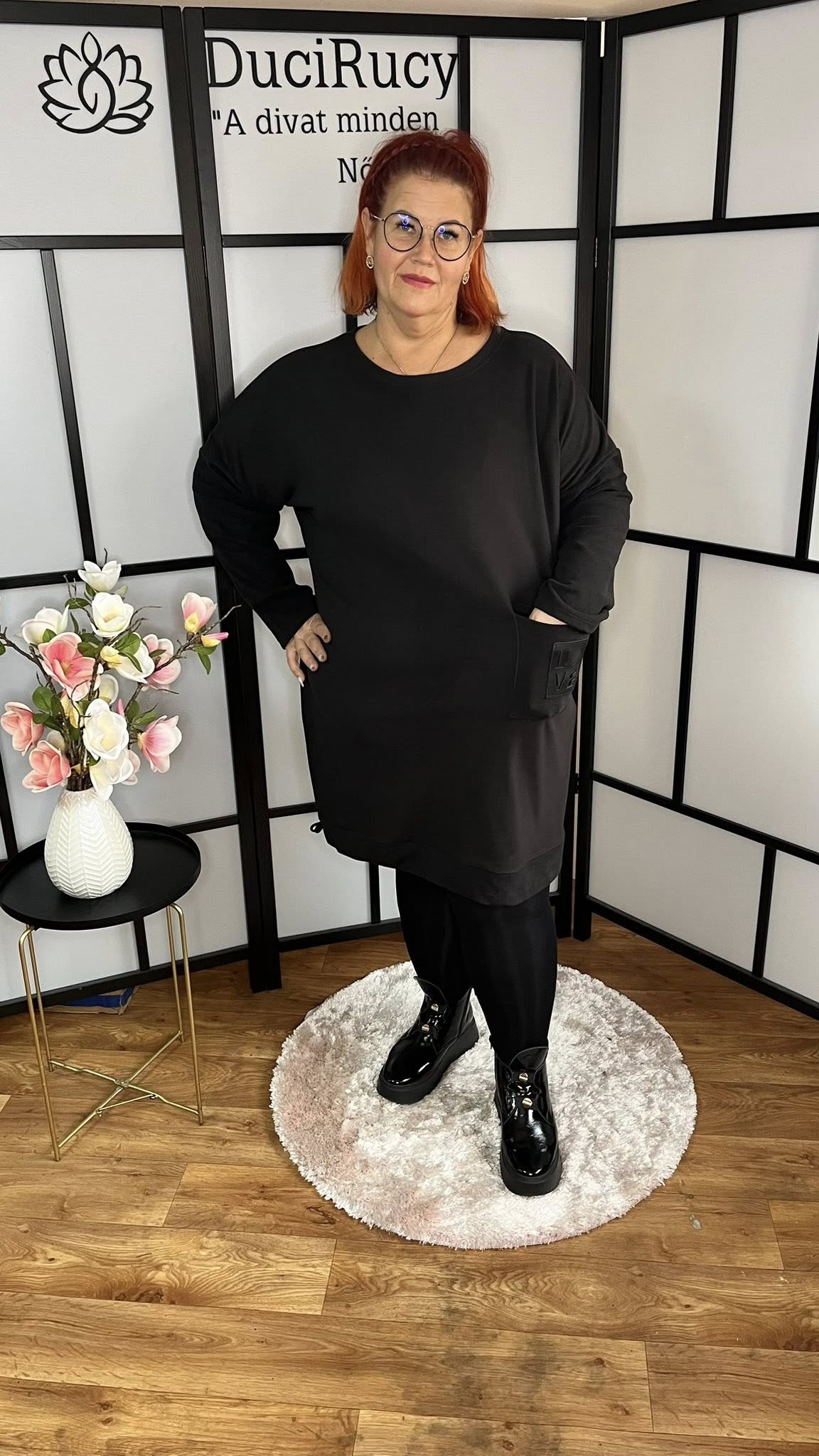 Szuper polár anyagból készült, kerek nyakú, hosszított fazonú tunika elején egy zsebbel és "HOPE" felirattal. A tunika anyaga rugalmas. A tunika alul összehúzható fazon. Szuper választás akár egy bőrnadrághoz, farmerhoz, bőr leggingshez is.