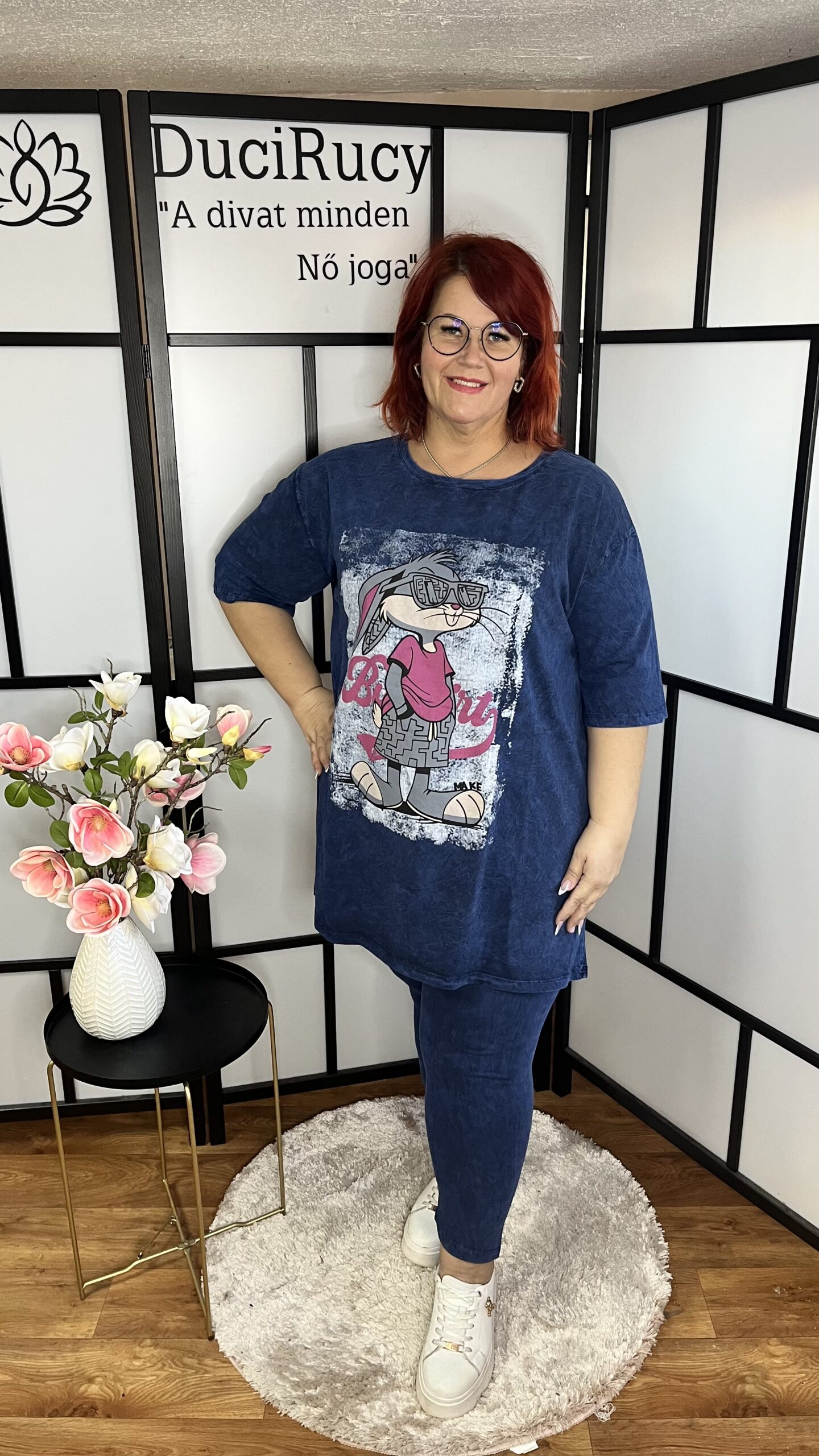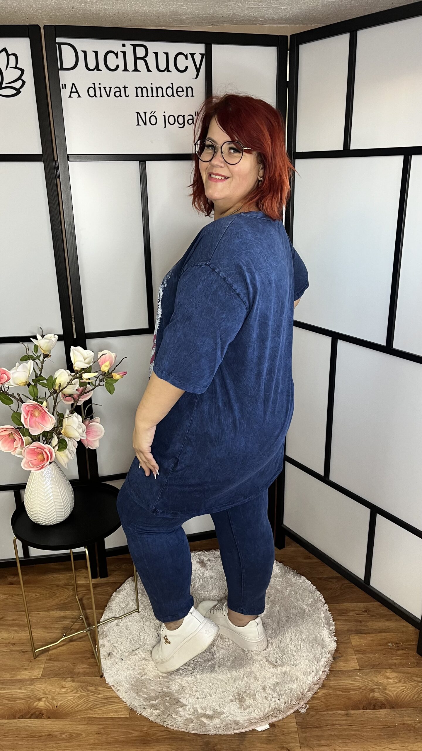Szuper pamut anyagból készült két részes együttes. Az együttes áll egy egyenes fazonú TAPSI HAPSI mintával díszített pólóból/tunikából, valamint egy gumis derekú, nagyon rugalmas leggingsből. A szett anyaga rugalmas pamut anyag.
