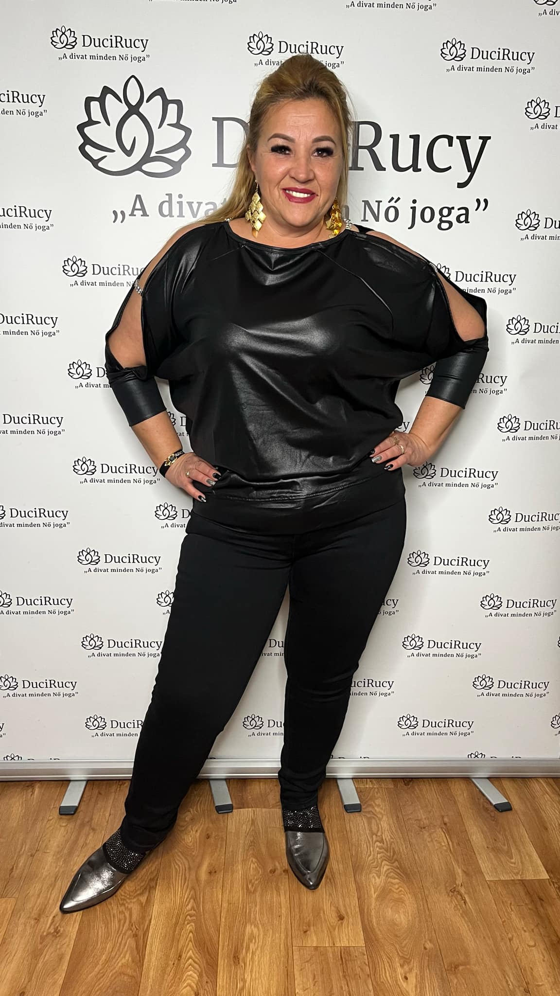 Gyönyörű, egyszerű, de nagyszerű, bőrhatású, rugalmas anyagból készült, török, nagyméretű, passzés aljú, denevér ujjú,  nyitott vállú felső,  melyeket strasszokkal díszítettek. Egyszerű, de nagyon mutatós, csinos viselet. Bármilyen alkalomra tökéletes választás lehet.