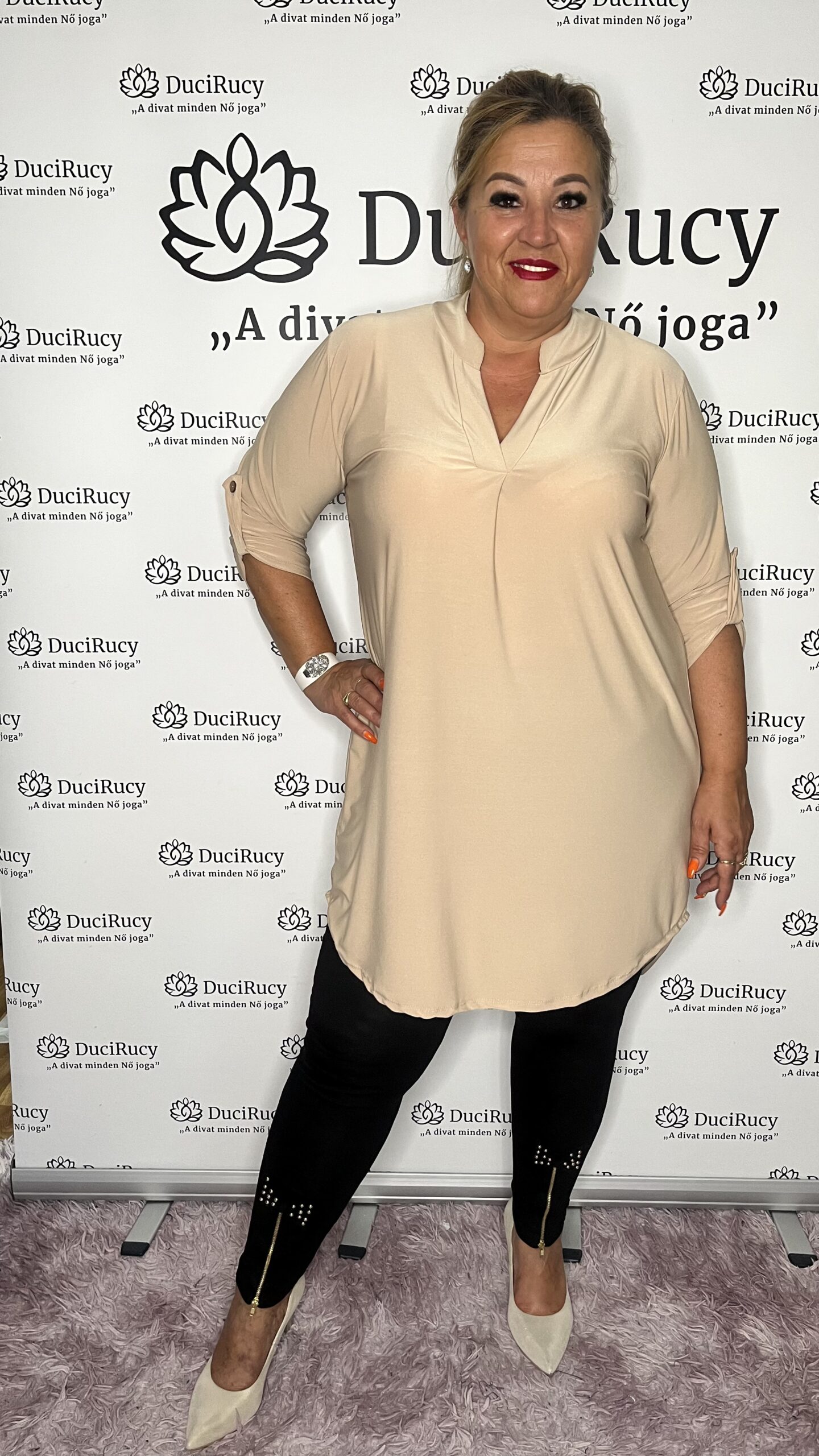 A képeken a modell az XL méretet viseli. A modell méretei: derékbőség 100 cm, csípőbőség 120 cm, magassága 167 cm.