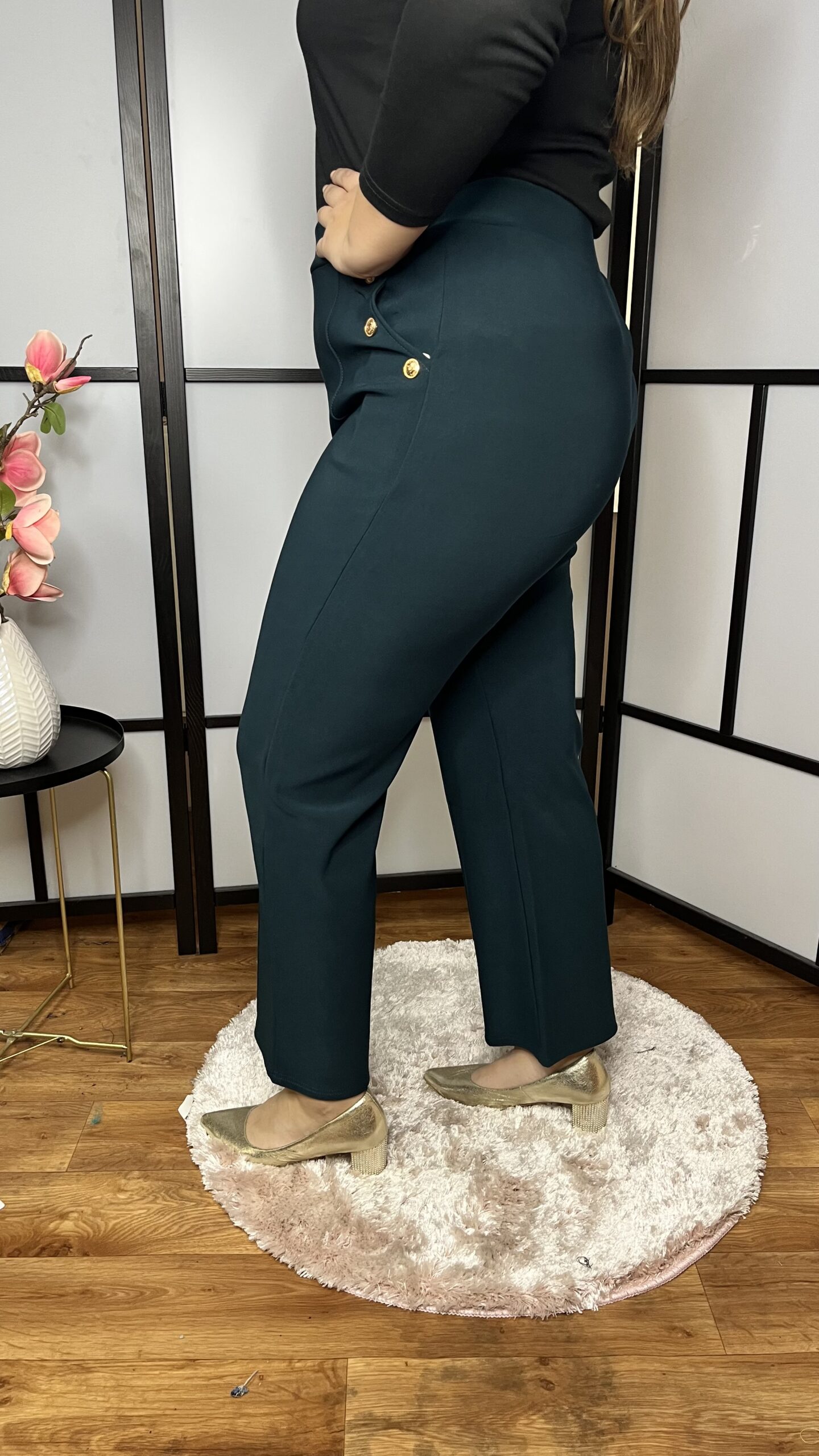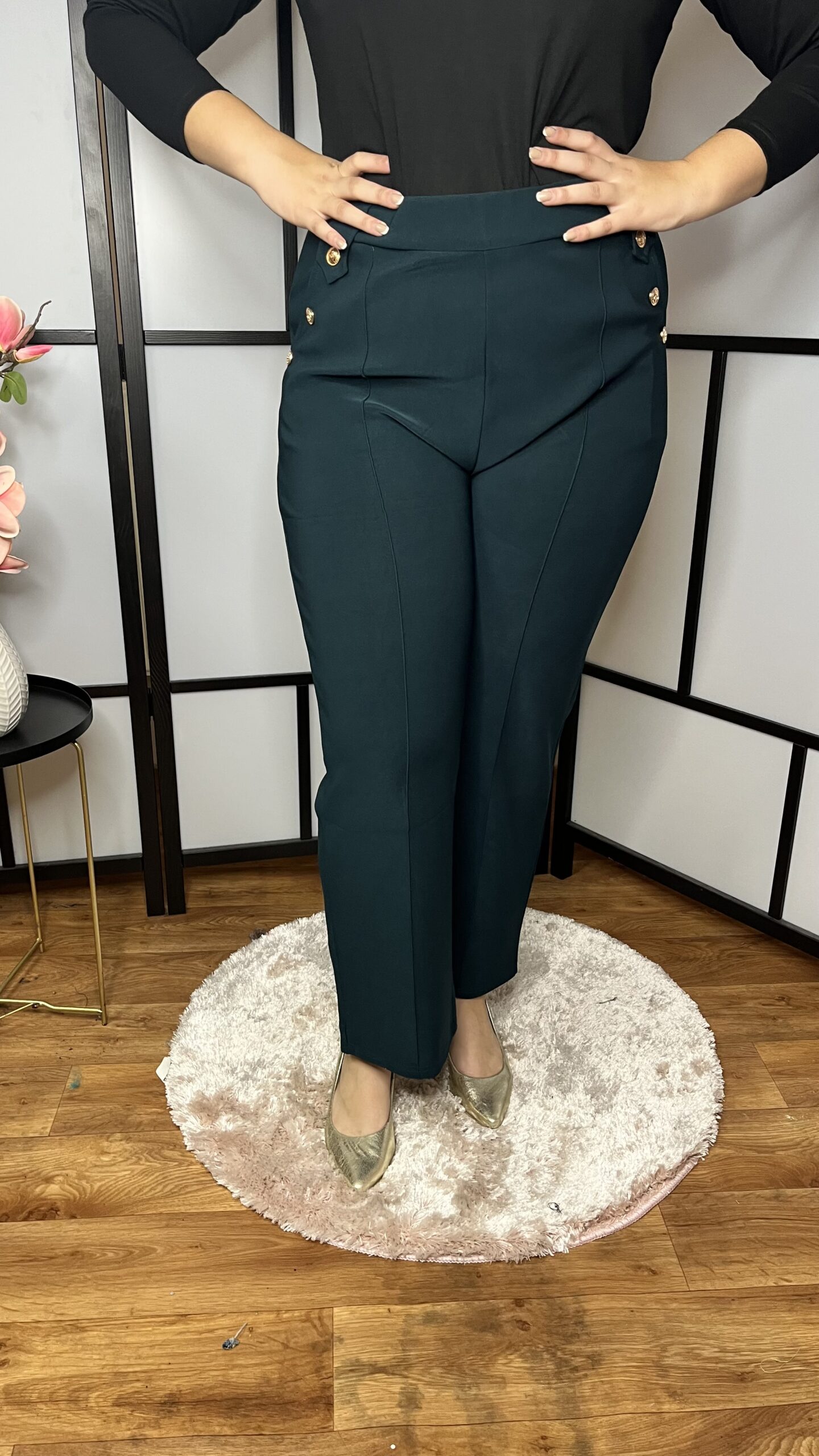 Fantasztikus, gyönyörű, trendi nadrág. Törökországban készült egyenes szárú, elől tűzött fazonú gumis derekú nadrág. A nadrág derékrésze arany színű gombokkal díszített. Bármilyen alkalomra felvehető és nagyon divatos leszel benne.